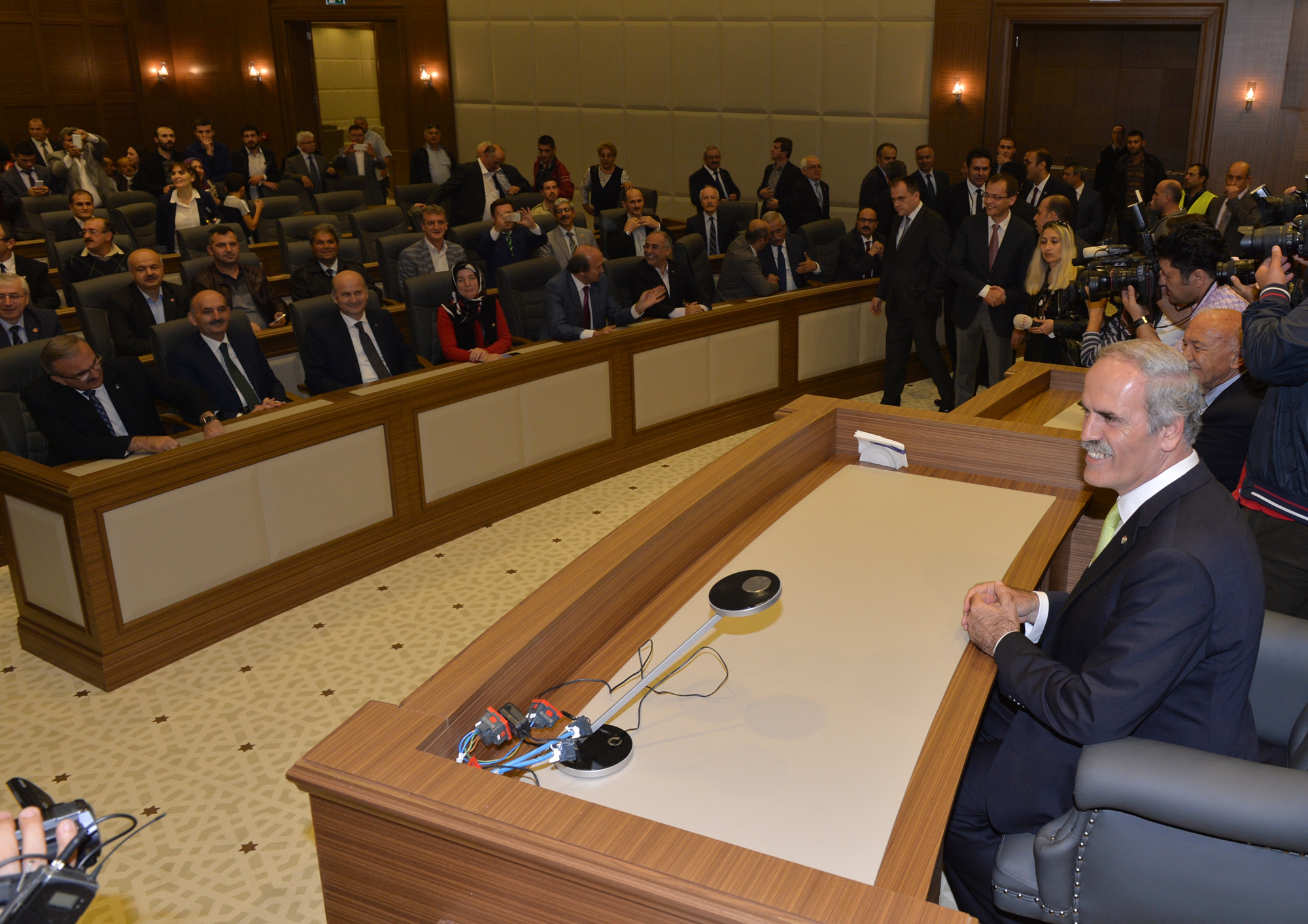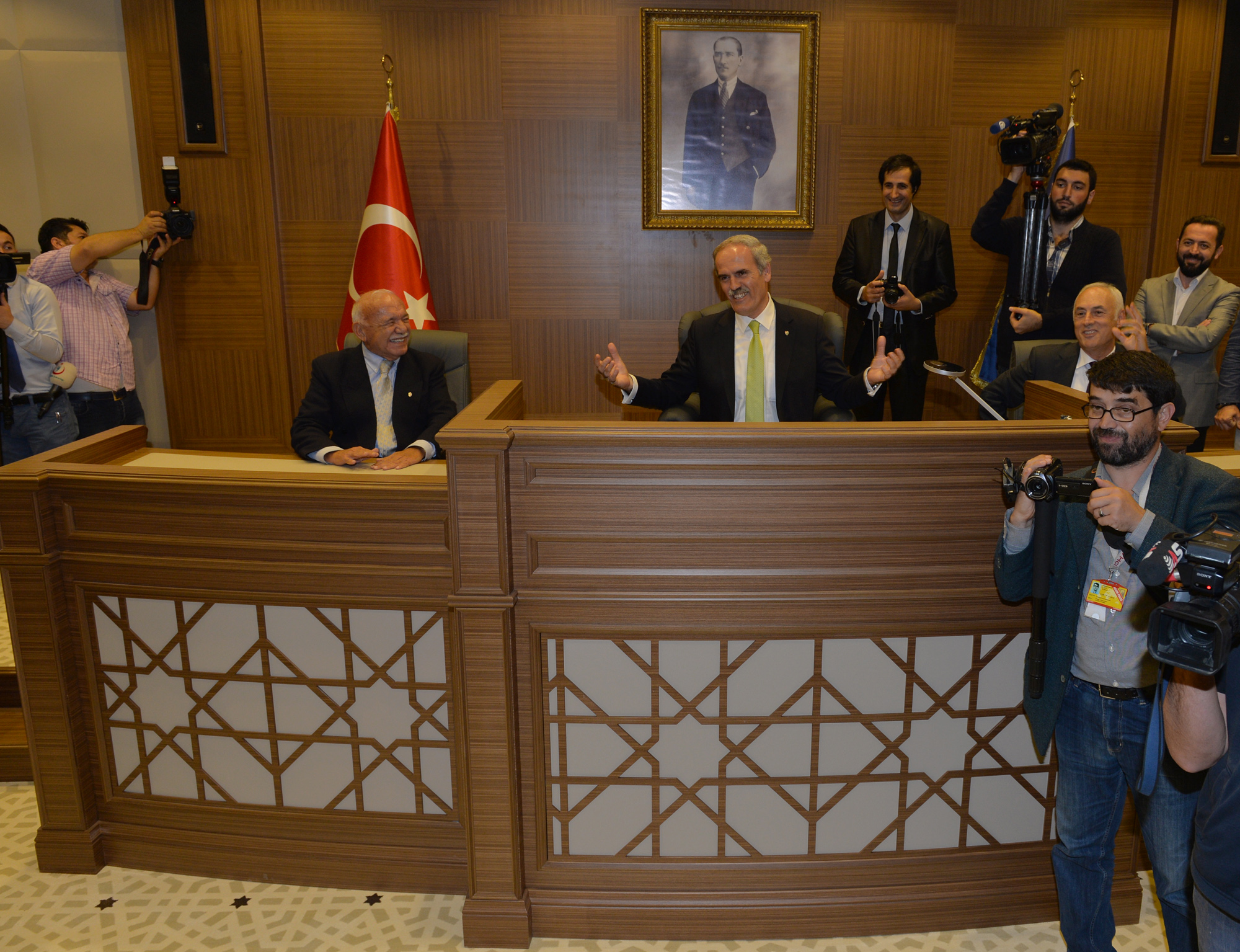 Protokol üyeleri daha sonra yeni meclis salonuna geçerken, Başkan Altepe başkanlık koltuğuna, eski başkanlar Saker ve Bilenser de katip üye koltuklarına oturdu. Bakan Müezzinoğlu ve davetliler de meclis üyelerinin bulunduğu koltuklara oturup, bir süre sohbet etti.