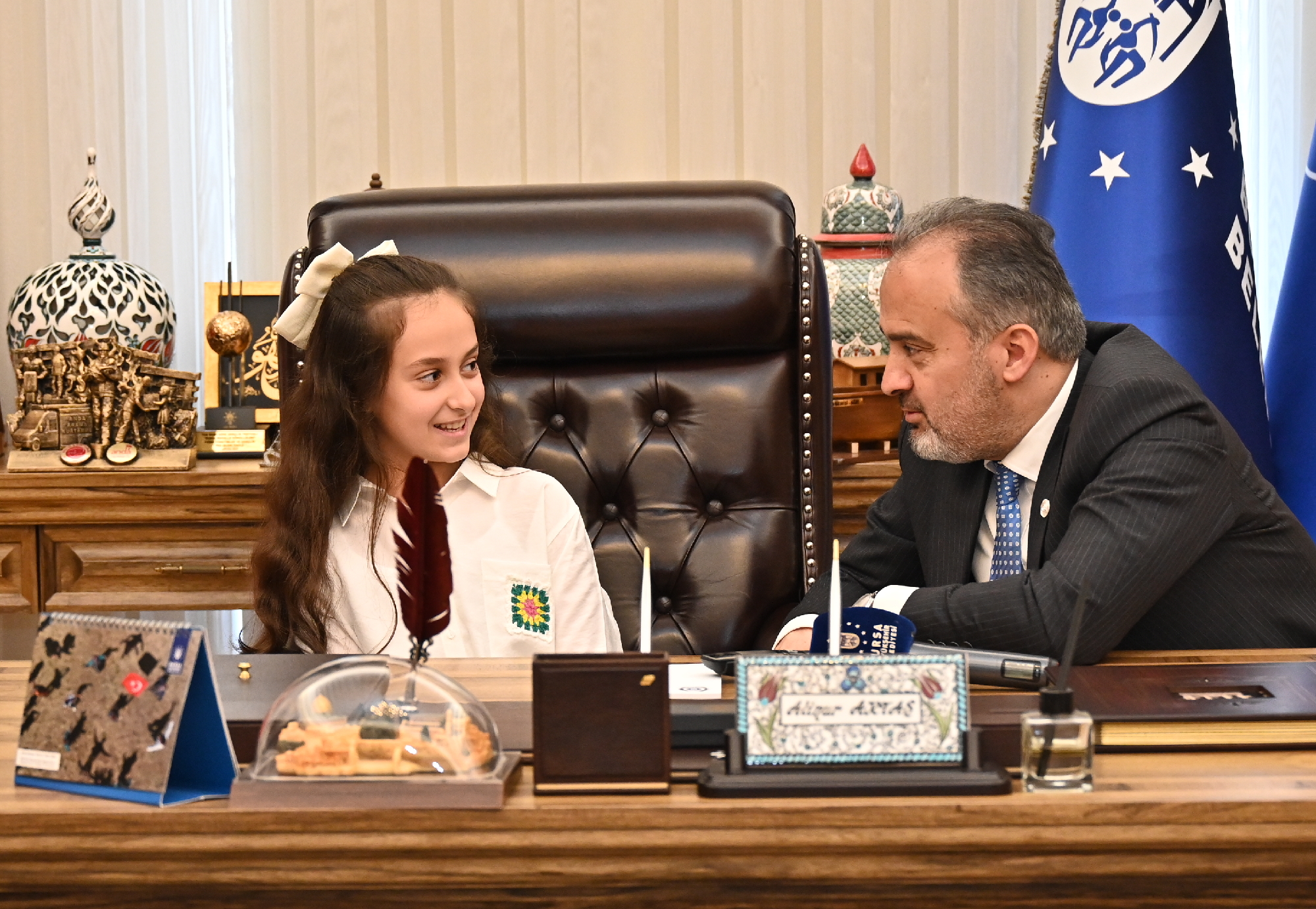 BURSA – Ulusal Egemenlik ve Çocuk Bayramı nedeniyle tüm makamlar çocuklara kalırken, Bursa Büyükşehir Belediye Başkanlığı makamına da 3 yeni başkan oturdu. Makamını geleceğin başkanlarına devreden Bursa Büyükşehir Belediye Başkanı Alinur Aktaş, tüm çocukların bayramını kutladı.