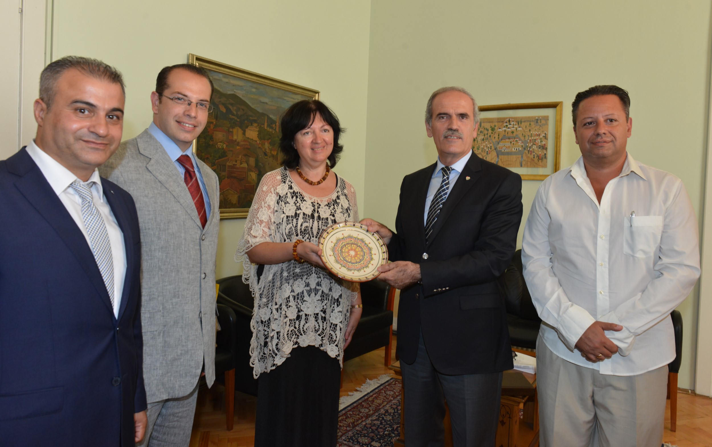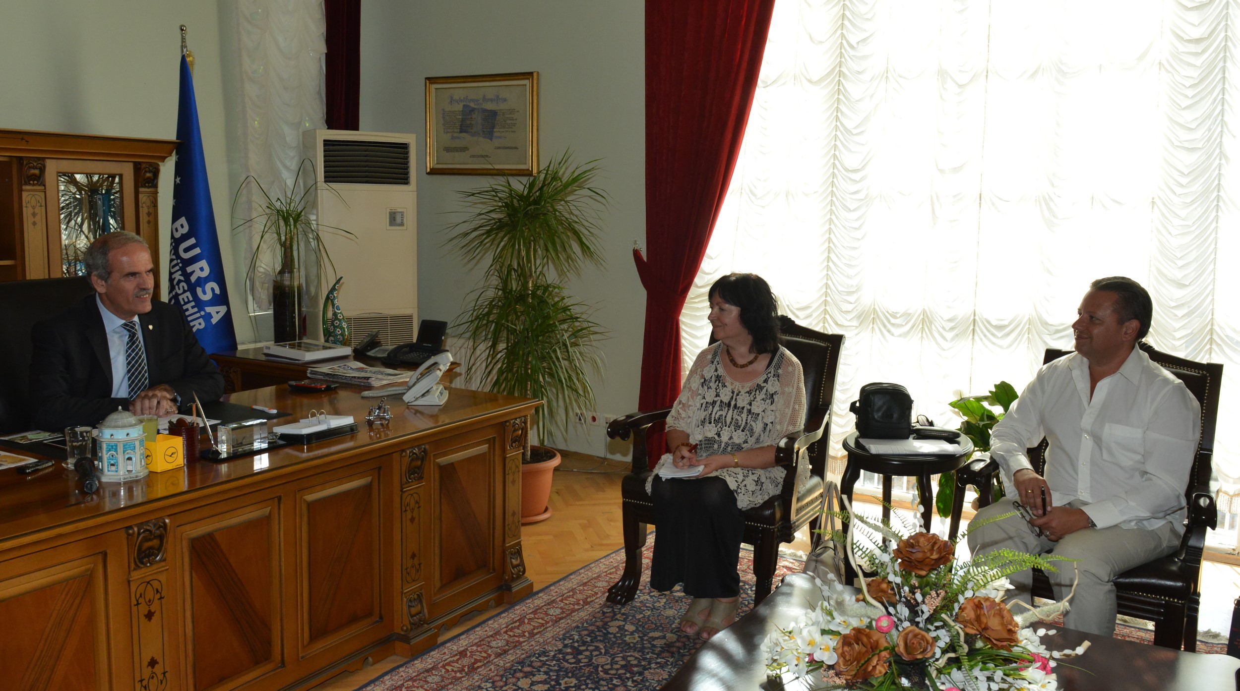 Mudanya Gazeteciler Derneği tarafından yürütülen AB Projesi kapsamında Bulgaristan’dan Bursa’ya gelen gazeteciler de Başkan Altepe’yi ziyaret etti. Mudanya Gazeteciler Derneği Yönetim Kurulu Başkanı Yavuz Gerçekçi, projenin detaylarını Başkan Altepe ile paylaşırken; Bulgar Gazeteciler Birliği Başkanı Snezhana Todorova da kendilerini Bursa’da ağırlayan Mudanyalı gazetecilere ve Bursa Büyükşehir Belediye Başkanı Recep Altepe’ye teşekkür etti. Bursa’yı çok beğendiklerini anlatan Bulgar gazeteciler, Başkan Altepe’den Bursa ve Türkiye hakkında merak ettikleri konularda bilgiler de aldı. Bulgaristan Ulusal Radyosu temsilcileri ve Mudanyalı gazeteciler de ziyarette hazır bulundu. Başkan Altepe, anlamlı projeden dolayı Dernek Başkanı Yavuz Gerçekçi ile projeye emek veren Mudanyalı gazetecileri tebrik etti.