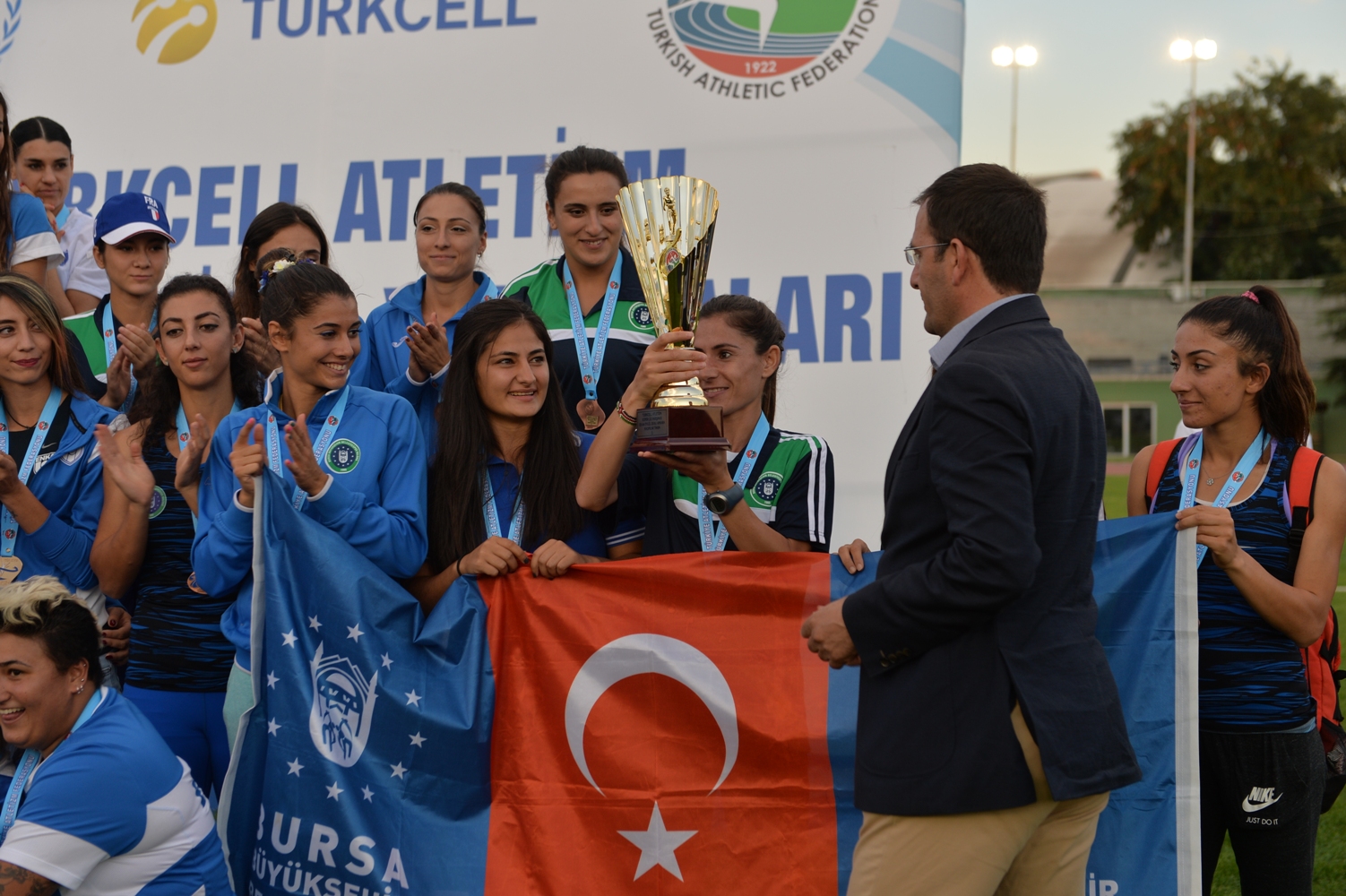 Ankara Naili Moran Atletizm Pisti’nde hafta sonu yapılan final yarışlarının ilk gününde Bursa Büyükşehir Belediyespor Kulübü 100 metre, 400 metre, 800 metre, 3000 metre, 400 metre engel, 3000 metre engel, cirit atma, disk atma, üç adım atlama, sırıkla atlama ve 4*100 Bayrak yarışlarının ardından 52.5 puan toplayarak günü üçüncü sırada tamamladı. Turnuvanın ikinci gününde ise 100 metre engel, 5000 metre, 1500 metre, 200 metre, Çekiç Atma, Gülle Atma ve 4*400 yarışlarında 47.0 puan topladı. Genel toplamda 210 puanla en yakın rakibi Beşiktaş JK’a 30 puan fark atarak Enka ve Fenerbahçe SK ardından Atletizm Süper Lig’i 3. sırada bitiren Bursa Büyükşehir Belediyespor Kulübü Atletizm Kadın Takımı, kupasını Türkiye Atletizm Federasyonu Başkanı Fatih Çintimar’ın elinden aldı.