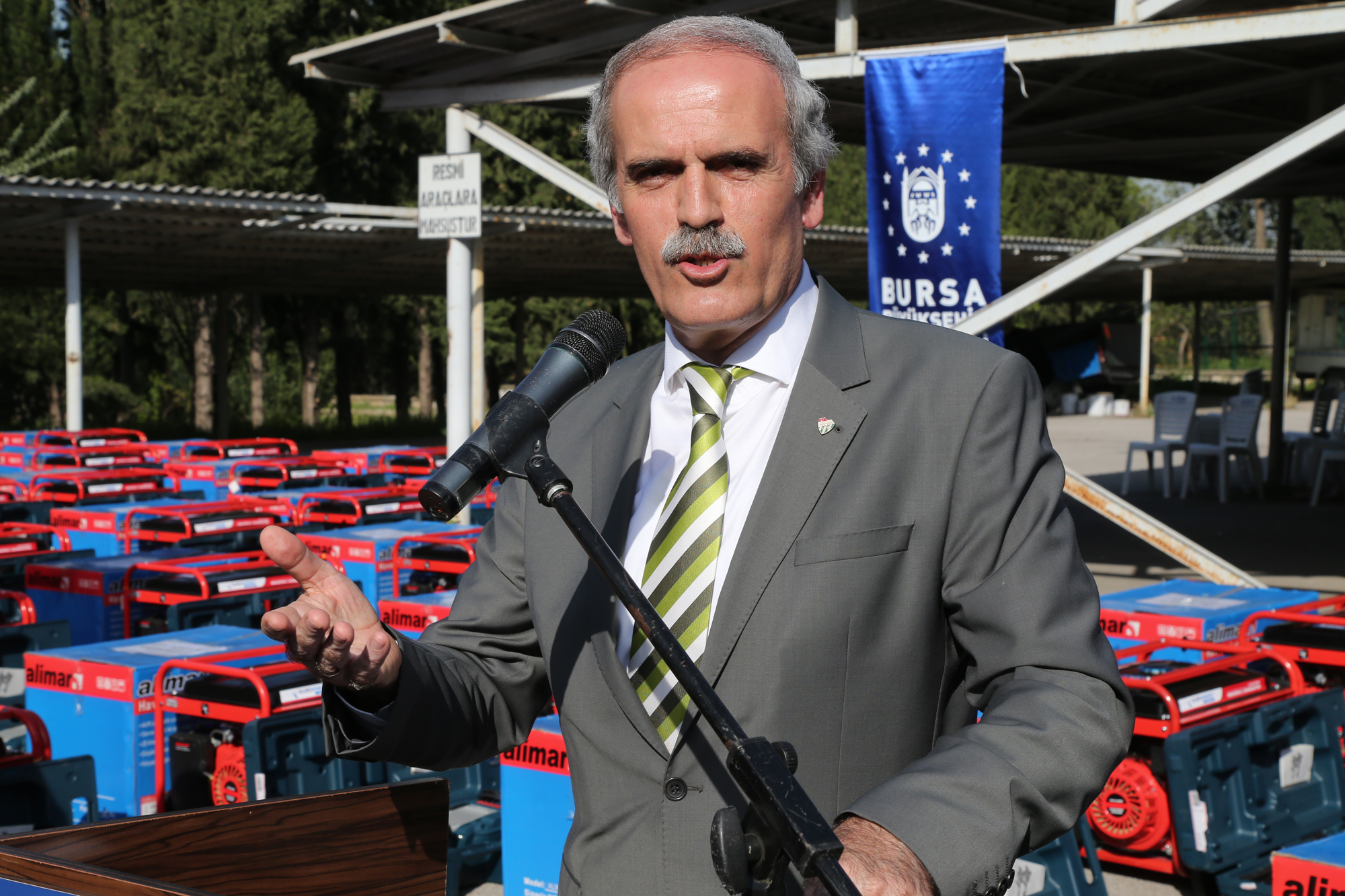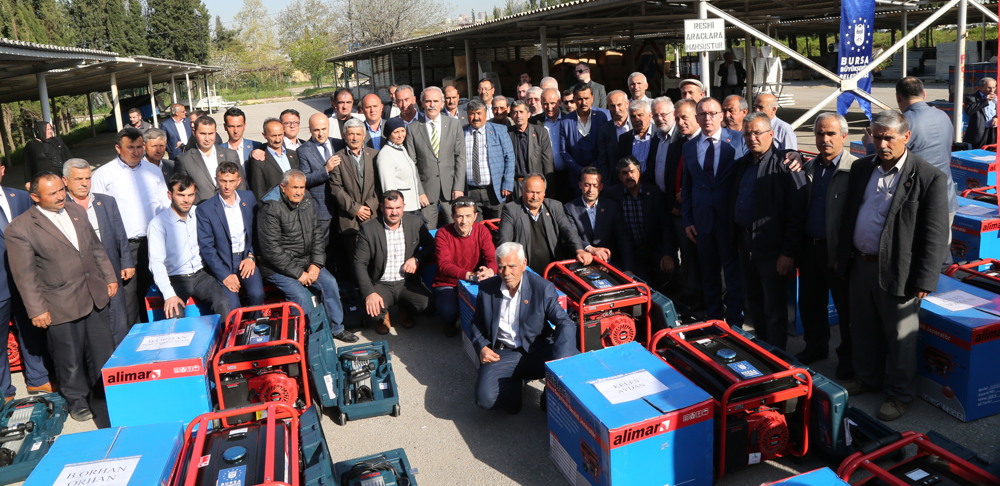 BURSA - Kırsal kesimde üretimin ve refahın artması için desteğini esirgemeyen Bursa Büyükşehir Belediyesi, 17 ilçede 80 mahalleye daha hilti ile jeneratör hibe etti. Ekipmanları muhtarlara teslim eden Büyükşehir Belediye Başkanı Recep Altepe, kırsal kesimde üretimi artırarak göçü ve sürdürülebilir refahı sağlamak istediklerini söyledi.