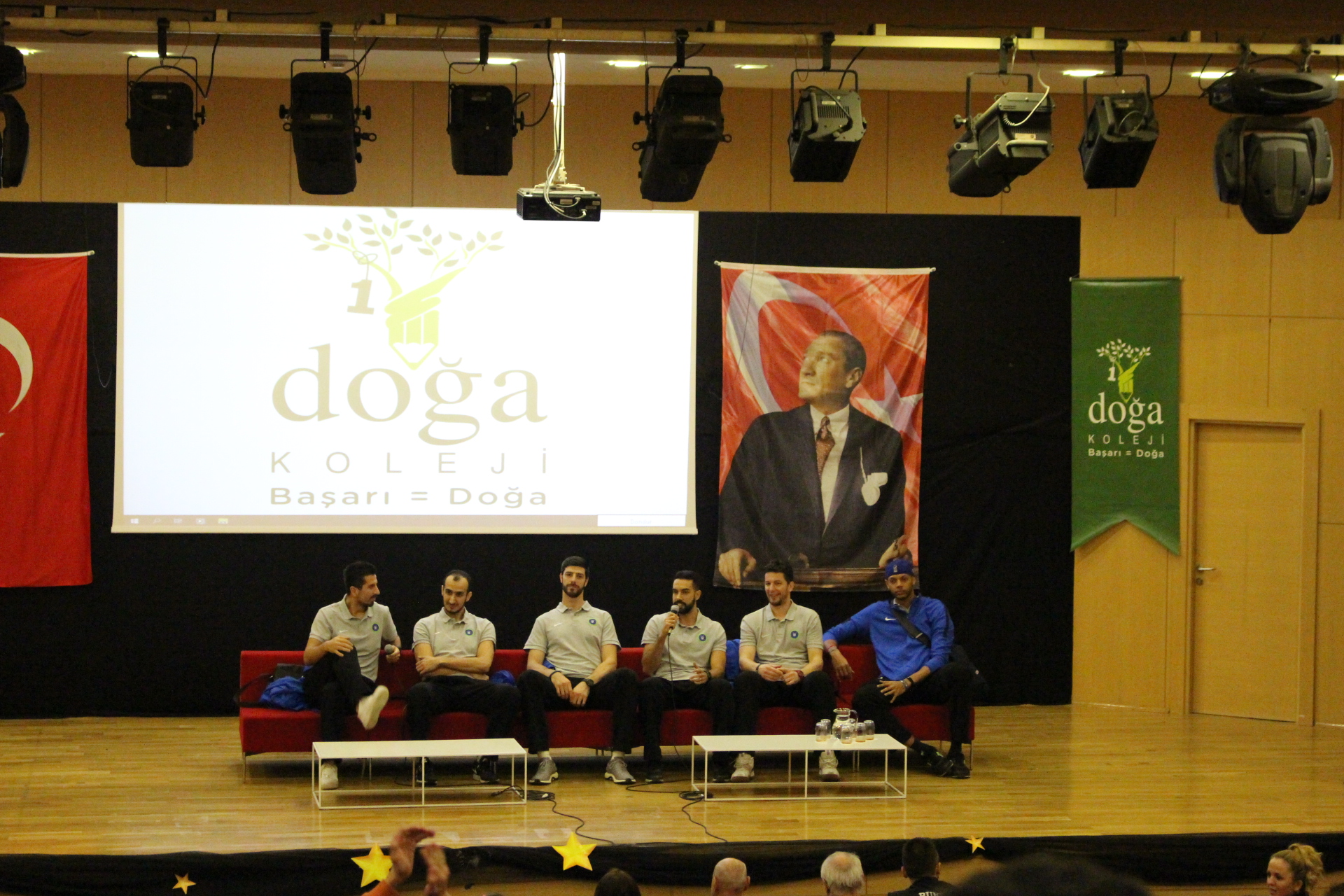 Sporu tabana yaymak ve genç nesillere sporu sevdirmek adına çeşitli projelere başarıyla imza atan Bursa Büyükşehir Belediyespor Kulübü, erkek voleybol takımını Doğa Koleji Özlüce Kampüsü’nde öğrencilerle buluştu. Okulun konferans salonunda yapılan söyleşi programına takım kaptanları Özer Özger, Tolga Altıntaş ile yabancı sporcular Jose Caceres, Metodi Ananiev, Libero Boğaç Han Zambak ve tecrübeli oyuncu İbrahim Başaran katıldı. Bursa Büyükşehir Belediyespor Kulübü’nün yönetim kurulu üyeleri ve Voleybol teknik heyetinin de katıldığı programda öğrenciler sporcuları soru yağmuruna tuttu.