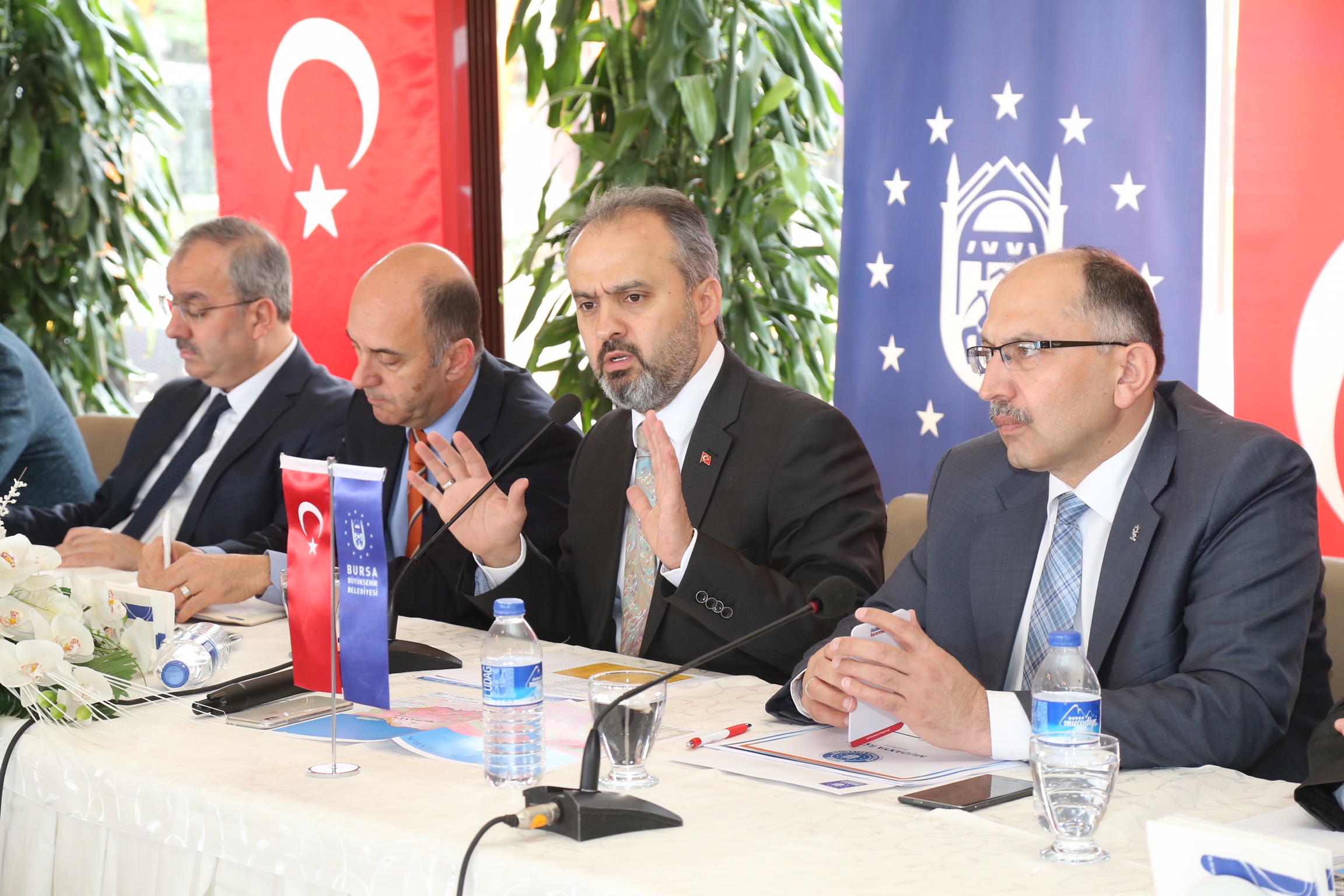 Büyükşehir Belediye Başkanı Alinur Aktaş, Bursa’yı değerleriyle geleceğe taşıyan Büyükşehir Belediyesi’nin ilçelere yönelik değerlendirme toplantıları kapsamında, Mudanya İstasyonu Sosyal Tesisleri’nde ilçedeki muhtarlarla bir araya geldi. Başkan Alinur Aktaş, interaktif bir atmosferde geçen toplantıda, hem Büyükşehir Belediyesi tarafından yapılan, devam eden ve yapılacak çalışmaları paylaştı hem de muhtarların görüş ve taleplerini aldı.