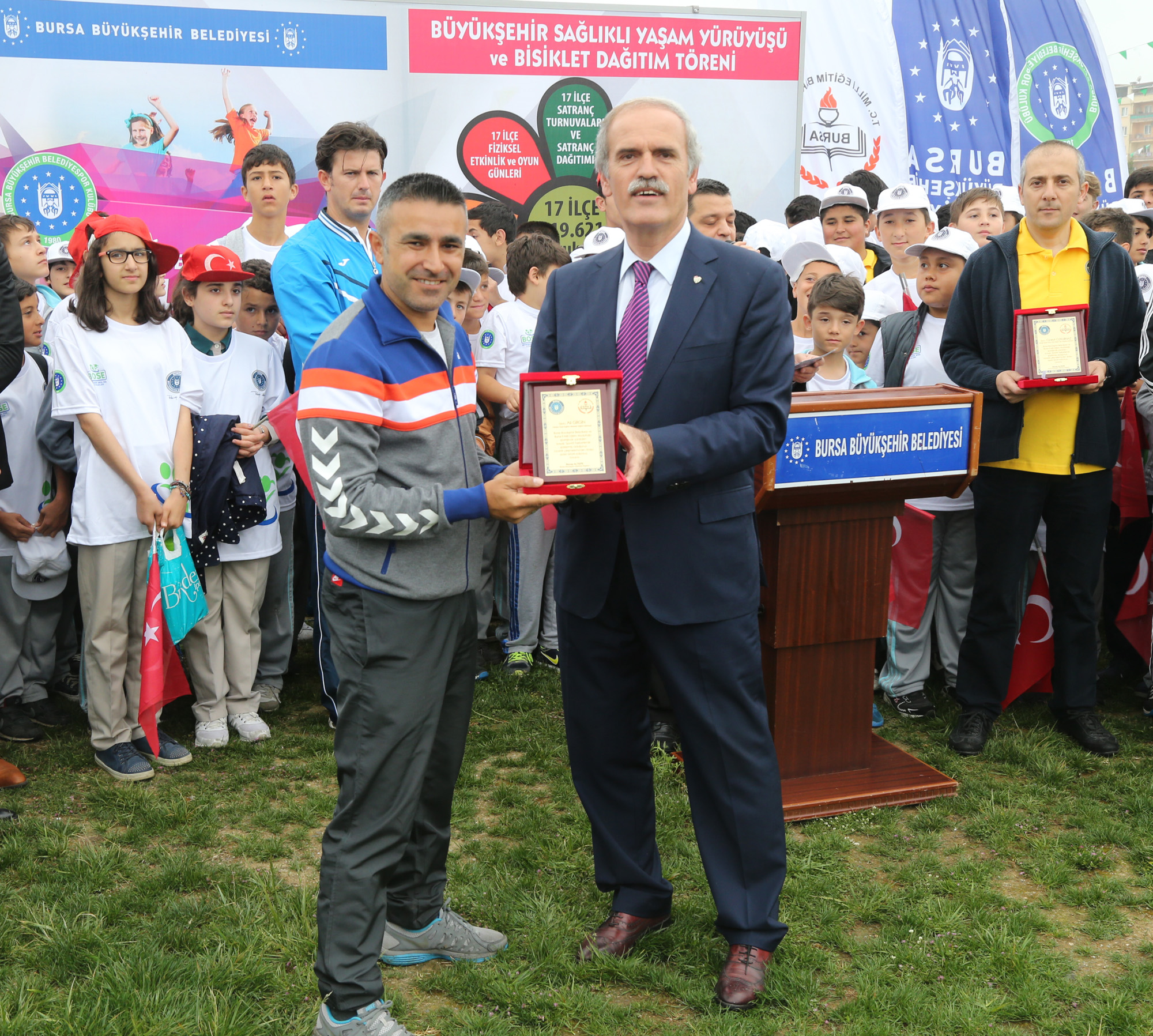 Konuşmaların ardından spor etkinliklerine katılım sağlayan okulların temsilcilerine plaket veren Başkan Altepe, 2 bin öğrenciyi temsilen başarılı 200 öğrenciye bisikletlerini hediye etti. Başkan Altepe, 100 metre bisiklet turu attığı programa 11 okuldan 2000 öğrenci ile birlikte de 1 km boyunca ‘Sağlıklı Yaşam Yürüyüşü’nü gerçekleştirdi. Programda ayrıca okullara spor malzemeleri de dağıtıldı. Öğrencilerin yoğun ilgi gösterdiği sağlıklı yaşam yürüyüşü, renkli görüntülere sahne oldu. Öğrenciler, spora ilgilerinin Büyükşehir Belediyesi’nin aktiviteleriyle arttığını belirterek, Başkan Altepe’ye teşekkür ettiler. Öğrencilerin sevgi seliyle karşılaşan Başkan Altepe, öğrencilerle fotoğraf da çektirdi. Keyifli etkinliğe Bursa Büyükşehir Belediyespor Kulübü Başkan Yardımcısı İlhan Satık ile Büyükşehir Belediyesi bürokratları da katıldı.