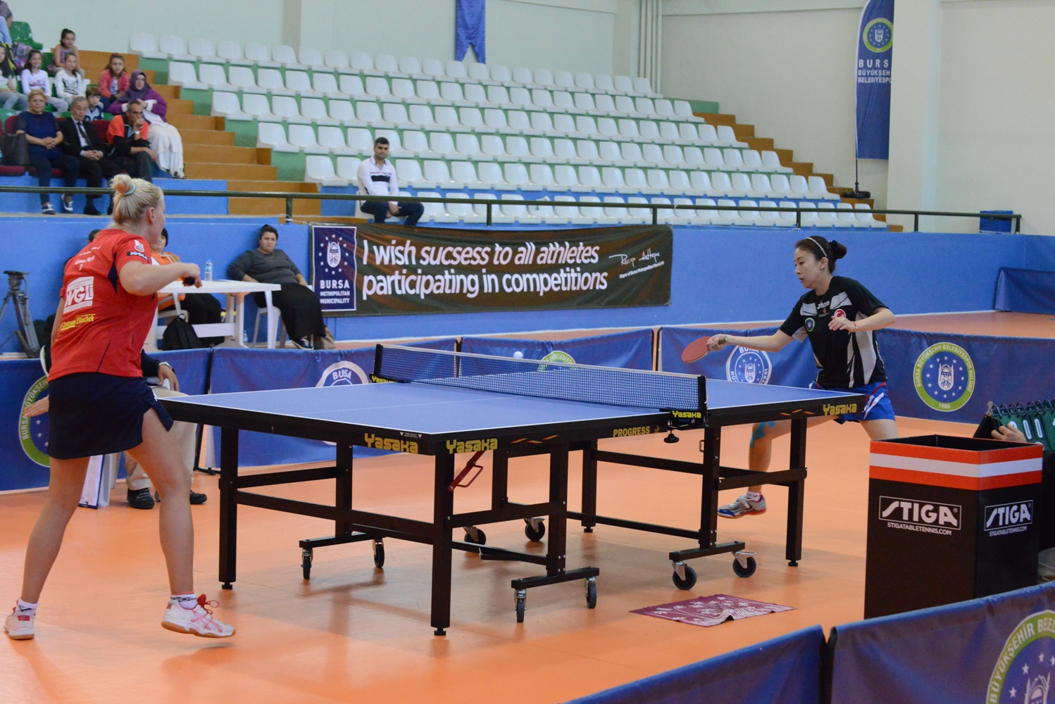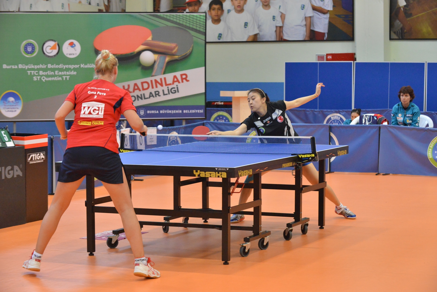 Bursa Büyükşehir Belediyesi Mimar Sinan Spor Salonu’nda oynanan karşılaşmalarda Melek Hu, Polina Mikhailova, Maria Dolgikh ve Sibel Remzi gibi önemli sporcuları ile maça başlayan Bursa ekibinde ilk karşılaşma Melek Hu ile Alman TTC Berlin Eastside takımından Georgina Pota arasında oynandı.