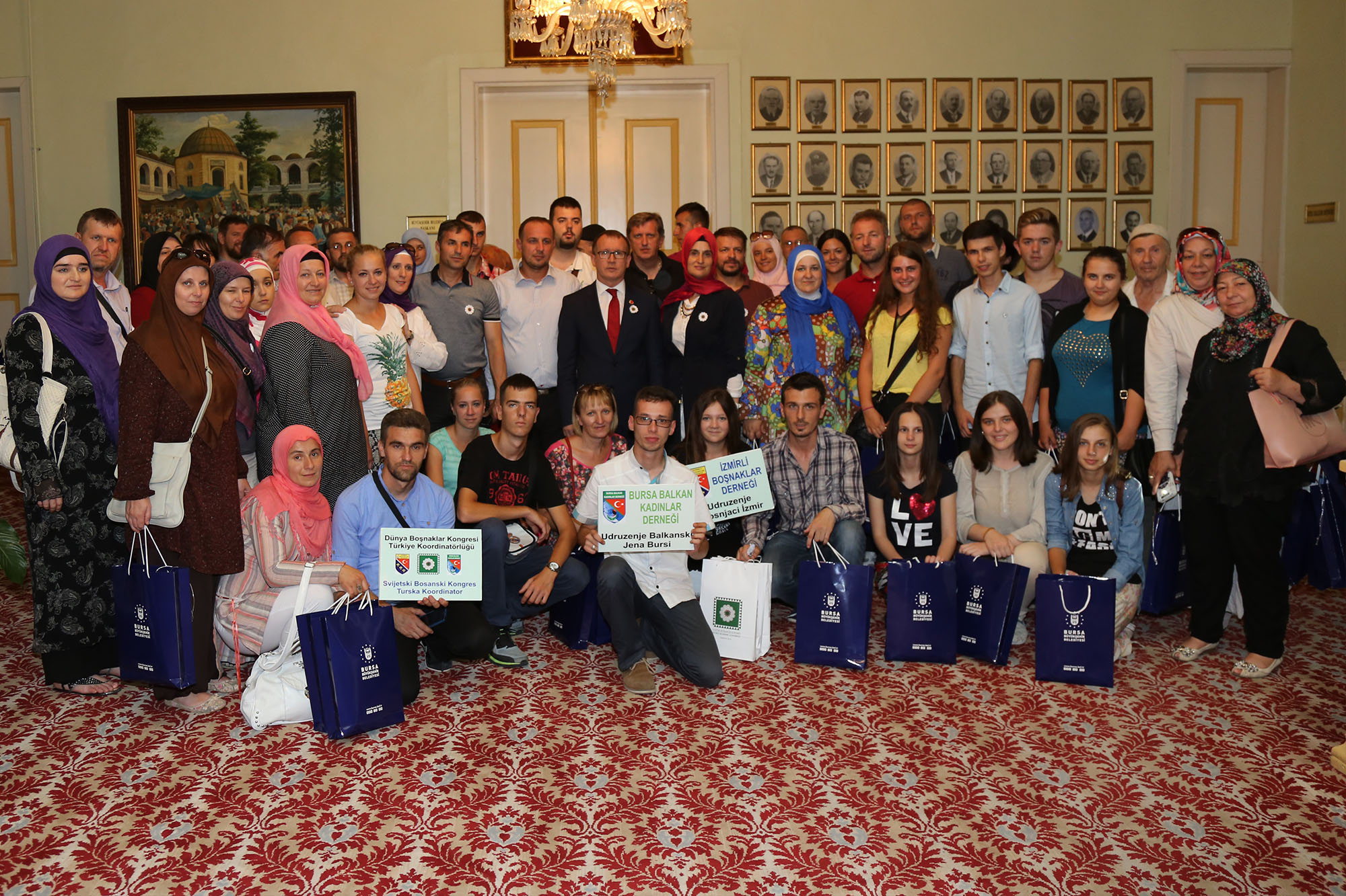 Bosna’dan Türkiye’ye gelen Dünya Boşnaklar Kongresi üyeleri ile Kafkaslardan gelen öğrenciler, Bursa gezilerinde Büyükşehir Belediyesi’ni de ziyaret etti. Bursa Büyükşehir Belediyesi Başkanvekili Abdülkadir Karlık, Boşnak ve Kafkas konuklarını Tarihi Belediye Binası’nda ağırladı. Bursa’nın Balkanların da Kafkasların da yanında olduğunu anlatan Başkanvekili Karlık, konuklarına Bursa’yı tanıttı. Balkanlarda yapılan çalışmalardan da örnekler veren Karlık, ziyaretlerin sonunda misafirlerine Bursa’ya özgü hediyeler verdi. Büyükşehir Belediyesi’nin katkılarıyla Orta Asya-Kafkasya Kültür Derneği tarafından ağırlanan ve Kafkaslardan gelen eğitim ve gençlik kampı öğrencileri de Bursa’yı çok beğendiklerini söyledi.