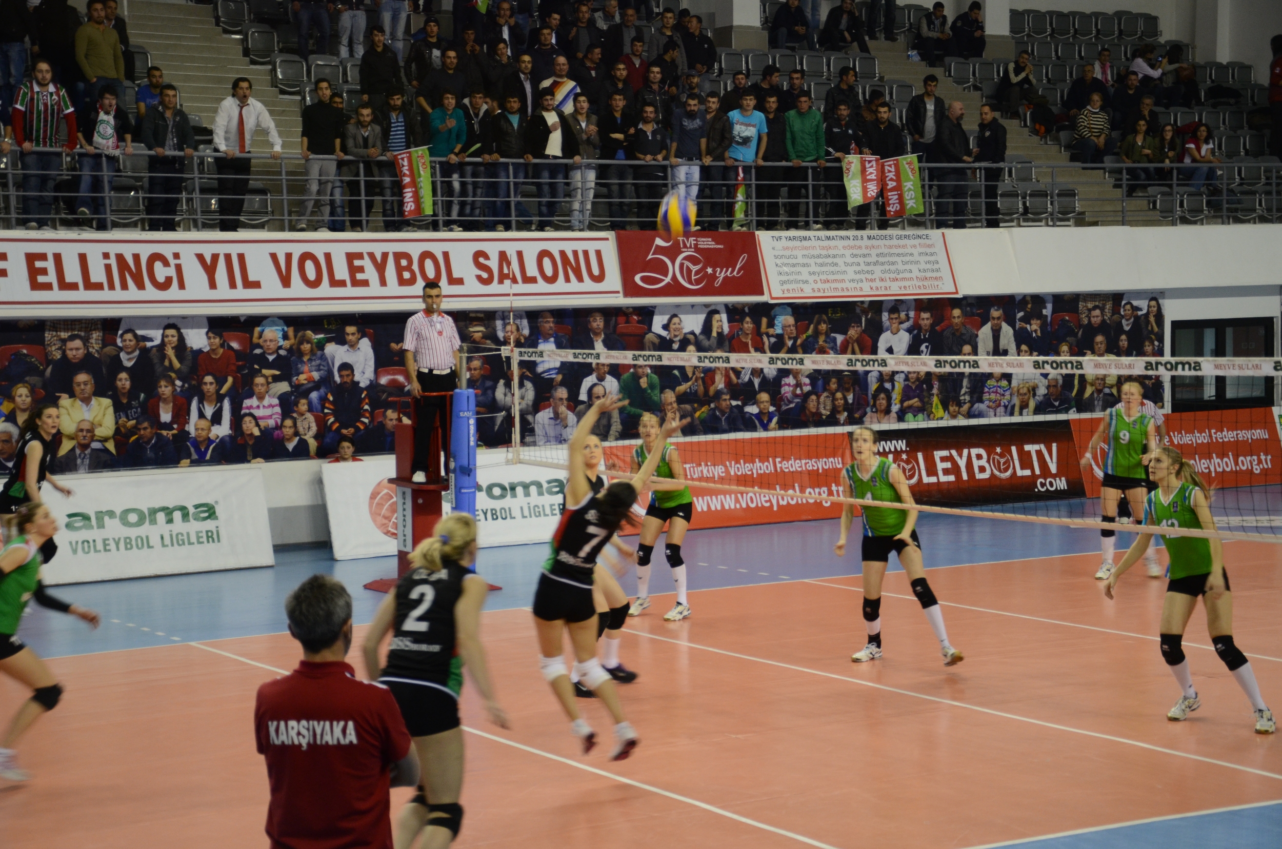 Türkiye Voleybol Federasyonu tarafından İstanbul’da düzenlenen ‘Aroma Bayanlar 2. Lig Yarı Final 2. grupta Bursa Büyükşehir Belediyespor Kulübü bayan voleybol takımı ile Karşıyaka İzka İnşaat bayan voleybol takımı şampiyonluk için mücadele etti. İstanbul Burhan Felek - TVF Ellinci Yıl Voleybol Salonu’nda yapılan turnuva, takımların final mücadelesine sahne oldu. Hakem Vedat Kırçova’nın yönettiği maçta Bursa Büyükşehir Belediyespor Kulübü voleybol takımı Emin İmen’in antrenörlüğünde, Burhan Zümrüttaş’ın yardımcı antrenörlüğünde sahaya çıktı. Heyecanlı dakikaların yaşandığı karşılaşma Karşıyaka İzka İnşaat’ın 3-2’lik galibiyetiyle sona erdi.