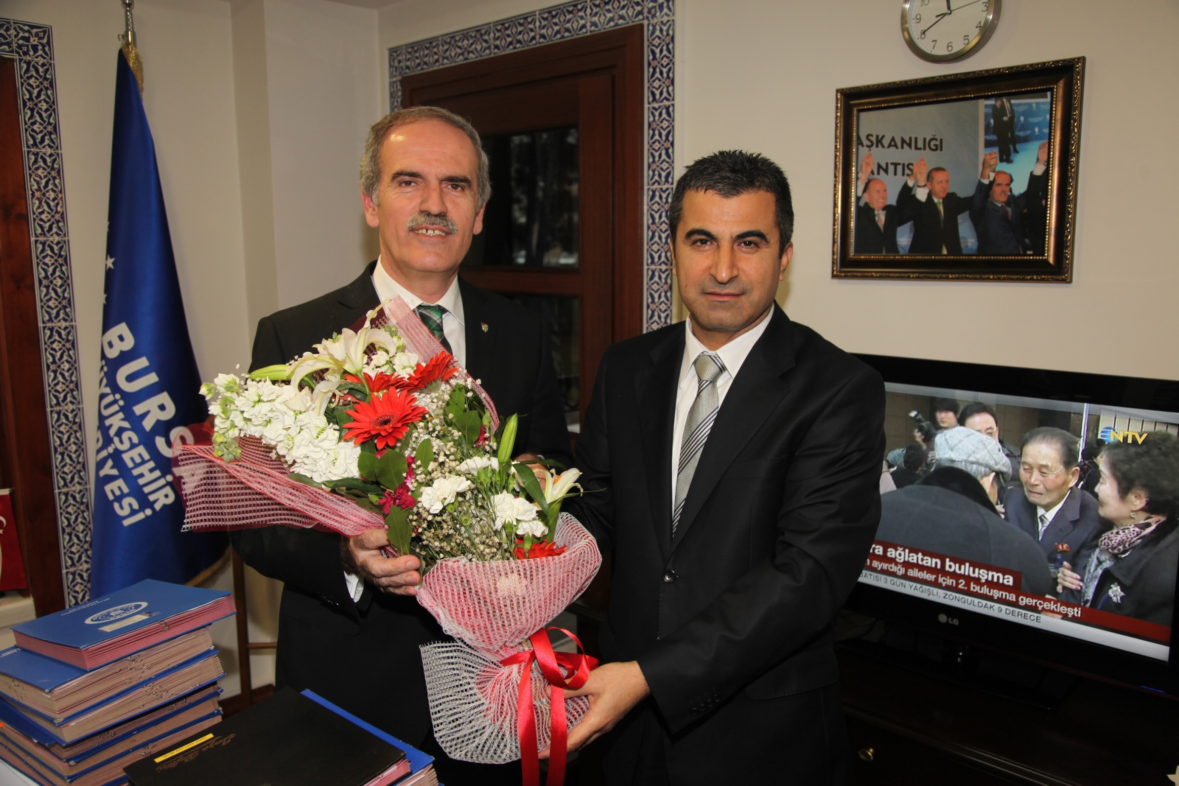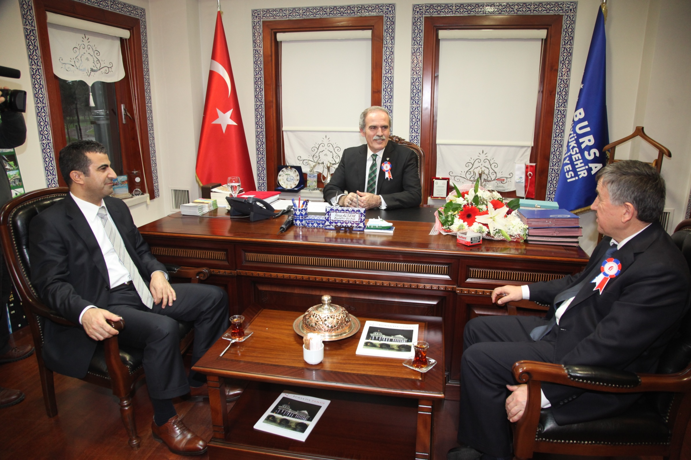 Bursa Vergi Dairesi Başkanı İbrahim Saydam, 25’inci Vergi Haftası etkinlikleri kapsamında ilçe vergi dairelerinin başkan ve yardımcıları ile birlikte Büyükşehir Belediye Başkanı Recep Altepe’yi ziyaret etti. Hafta etkinlikleri kapsamında düzenli ödeme yapan vergi mükelleflerini ziyaret ettiklerini dile getiren Saydam, “Büyükşehir Belediyesi, BUSKİ ve bağlı şirketler olarak 2013 yılında 80 milyon 418 bin TL vergi ödedi. Büyükşehir Belediyesi’nin vergi borcu bulunmuyor. Düzenli ödemeleri nedeniyle Büyükşehir Belediye Başkanımıza teşekkür ediyoruz” diye konuştu. Saydam, 2013 yılında ilk defa mükellef olan işletmeleri de ziyaret edip, sıkıntılarını dinleyeceklerini, yine kira geliri olan vatandaşların beyanname hazırlamalarına kolaylık sağlanması amacıyla alışveriş merkezlerine start kurup, elektronik ortamda beyanname alarak vatandaşa kolaylıklar sağlayacaklarını da sözlerine ekledi.