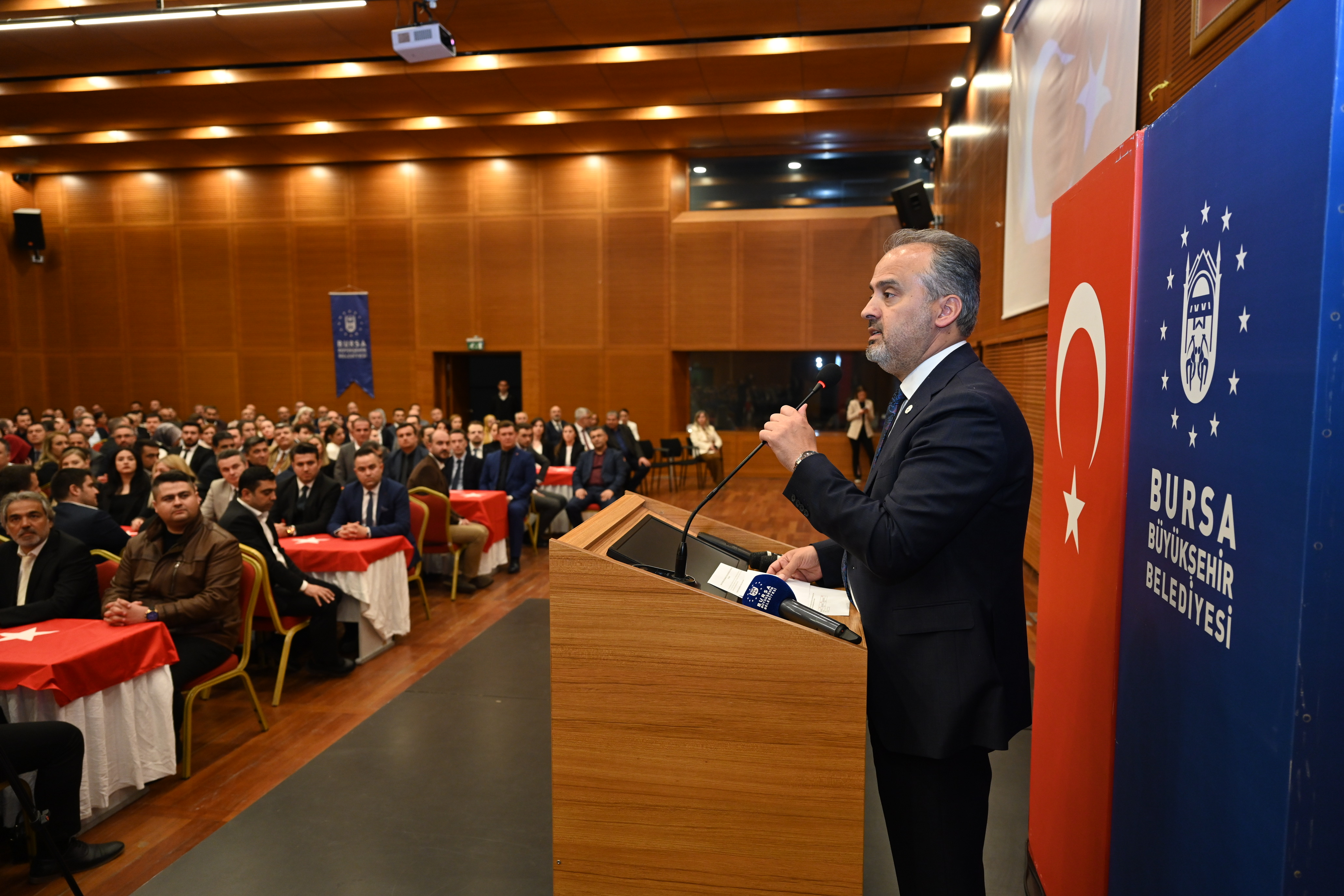 Büyükşehir Belediyesi’nin doğumdan ölüme yaşamın her anında vatandaşın yanında olduğunu hatırlatan Başkan Aktaş, “Devlet memuru olarak bundan sonra kurumumuza, Bursa’mıza, ülkemize hizmet edeceksiniz. Öncelikle memuriyetiniz hayırlı olsun. Kimisi memur, kimisi işçilik hakkı ile kimisi de taşeron bir firmanın elamanı olarak çalışabilir. Bunların hepsi kıymetli ve değerli. Memur olmayan personelimizin özlük haklarının verilmesi noktasında da elimizden gelen gayreti ortaya koyuyoruz. Burası kutsal bir mekan, belediye çok önemli bir birim. Her kamu kurumu hayırlı işler yapıyor ama biz insanların en zor anlarında yanındayız. Öyle acılara merhem olduk, öyle sıkıntılı anlarda yaralar sardık ki aldığımız hayır duasının, teşekkürlerin haddi hesabı yok. Kurum amiri olarak, kurumun seçilmiş başkanı olarak teşekkürler genelde bana ediliyor ama bu işlere emeğini veren emekçiliğini yapan bütün arkadaşlarımın katkısı var. Bu masa başındaki mühendis, teknisyen veya tekniker olabilir, sahada çalışan olabilir. Her birinizin bu güzelliklerin oluşmasında emeği ve katkısı var” dedi.