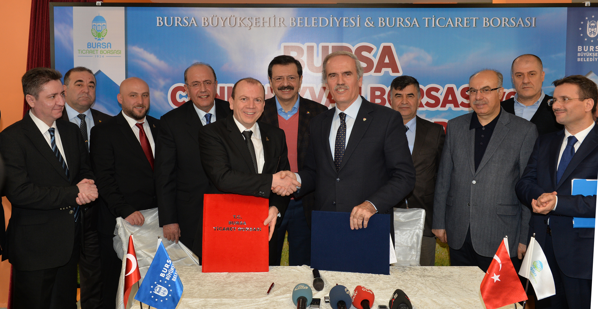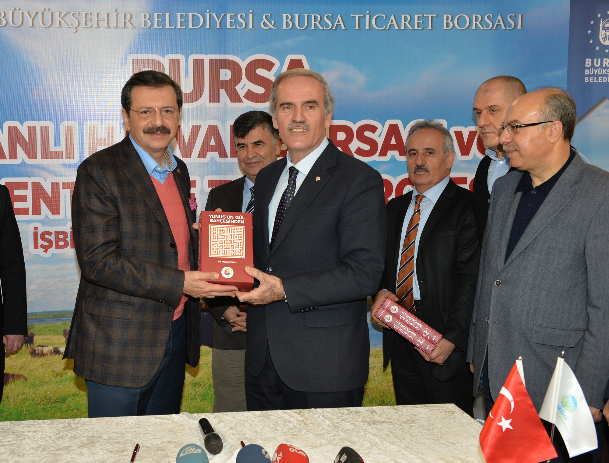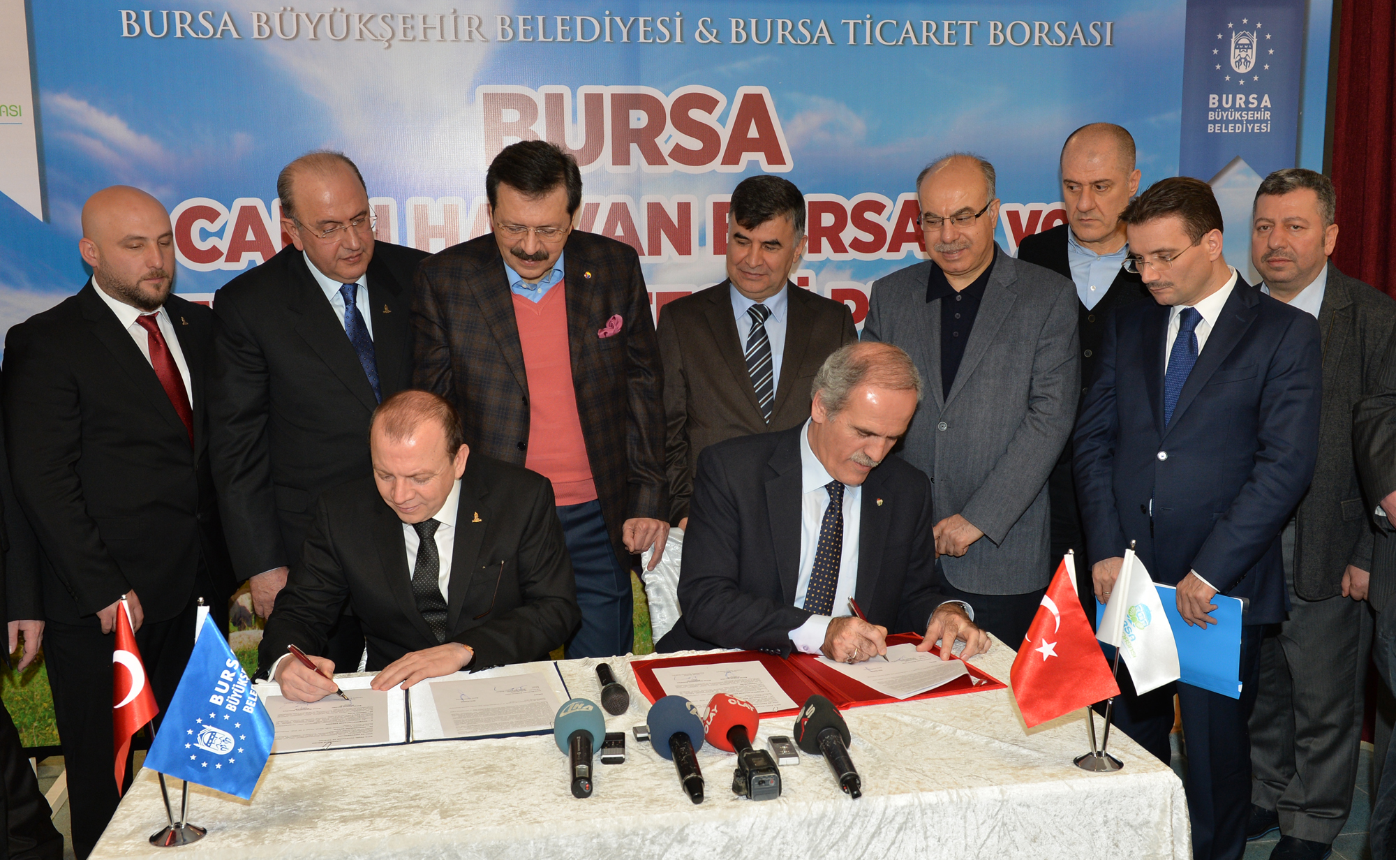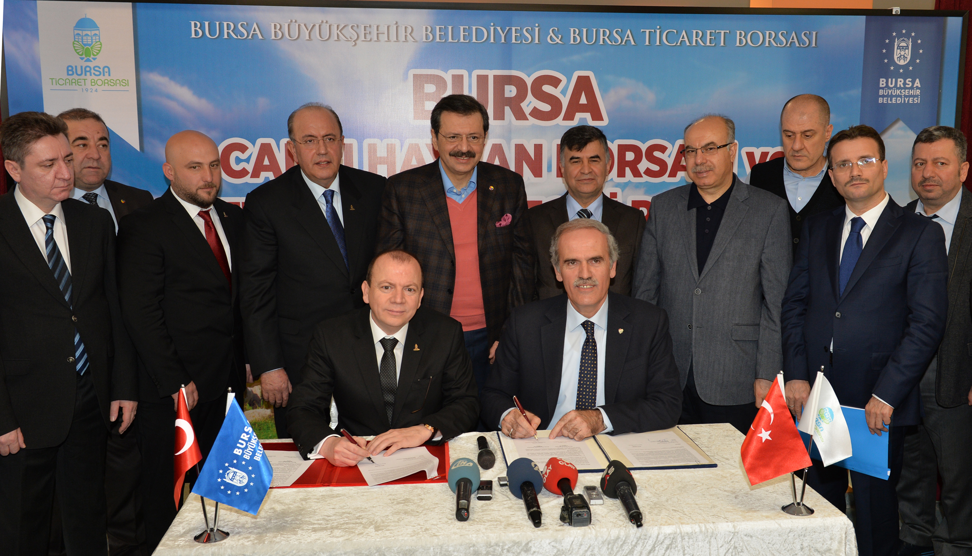 BURSA - Bursa’da 300 bin metrekare alana canlı hayvan borsası kurulması ve Bursa Ticaret Borsası’na ait Yeşil’deki tarihi bir binanın restore edilmesine ilişkin protokol, TOBB Başkanı Rıfat Hisarcıklıoğlu’nun da katıldığı törenle imzalandı.