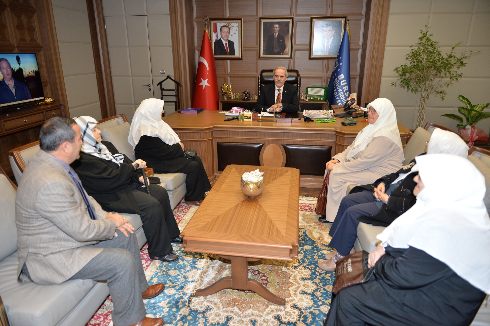 - UMRE ZİYARETLERİNİ TAMAMLAYIP BURSA’YA DÖNEN HUZUREVİNİN BAYAN SAKİNLERİ, İLK OLARAK BÜYÜKŞEHİR BELEDİYE BAŞKANI RECEP ALTEPE’Yİ ZİYARET EDEREK SAĞLANAN İMKANLAR NEDENİYLE TEŞEKKÜRLERİNİ İLETTİ.