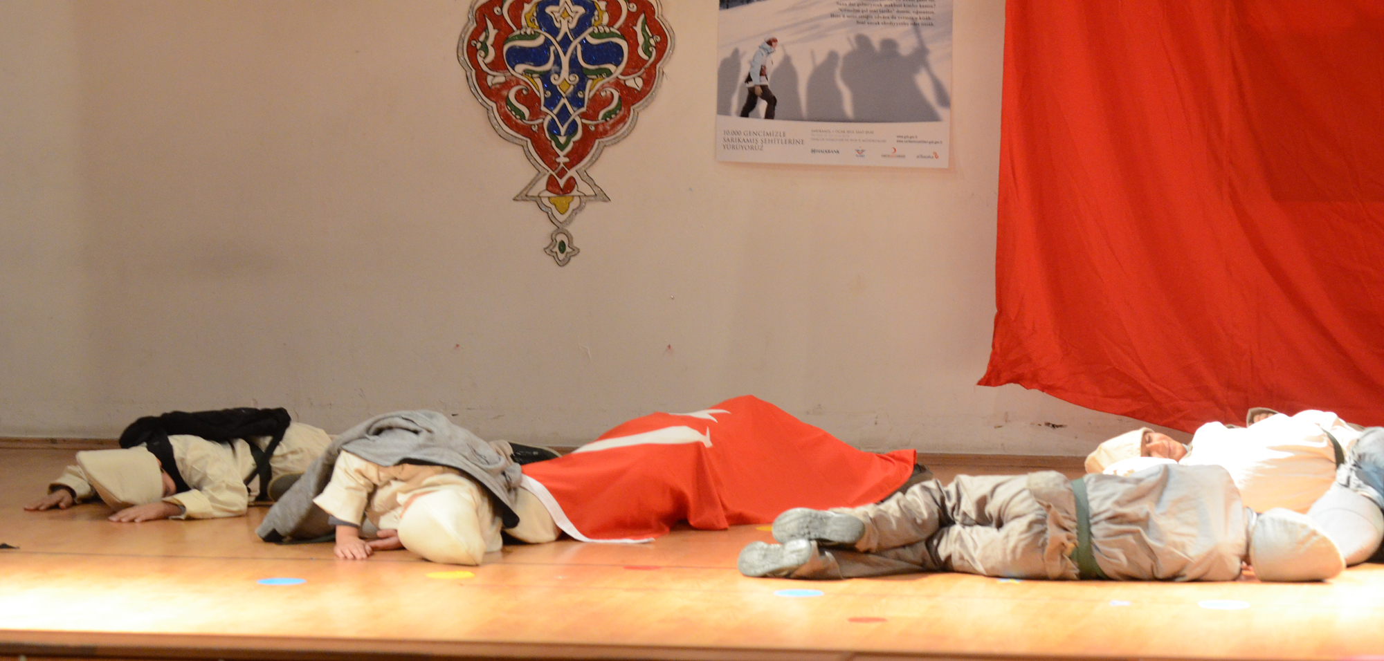 Sarıkamış konulu konuşmalar, şiirler ve türkülerin ön planda olduğu program yaklaşık 40 izcinin hazırlayıp oynadığı tiyatro gösterisiyle son buldu.