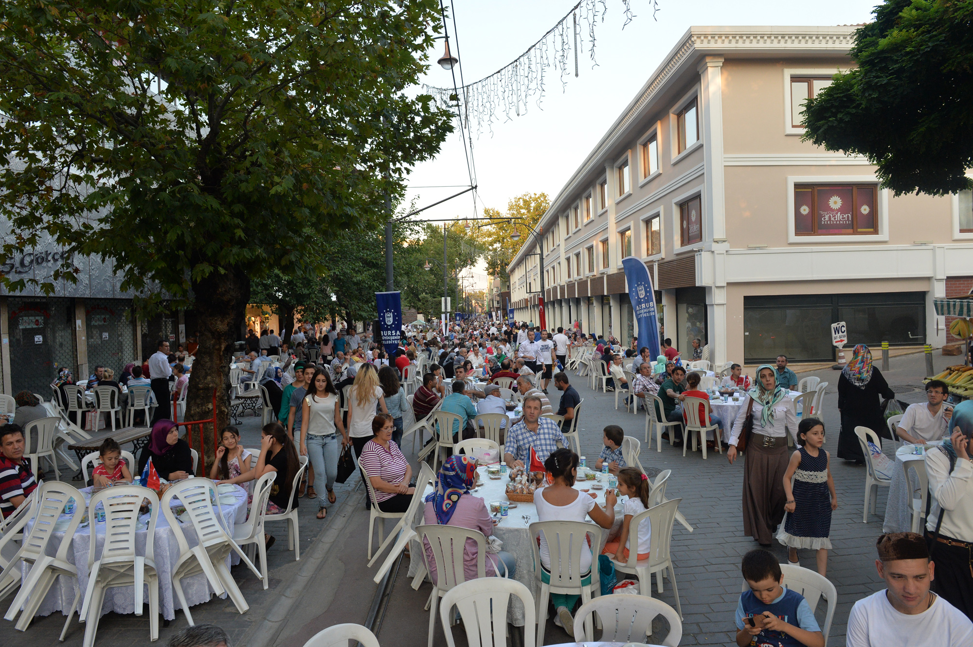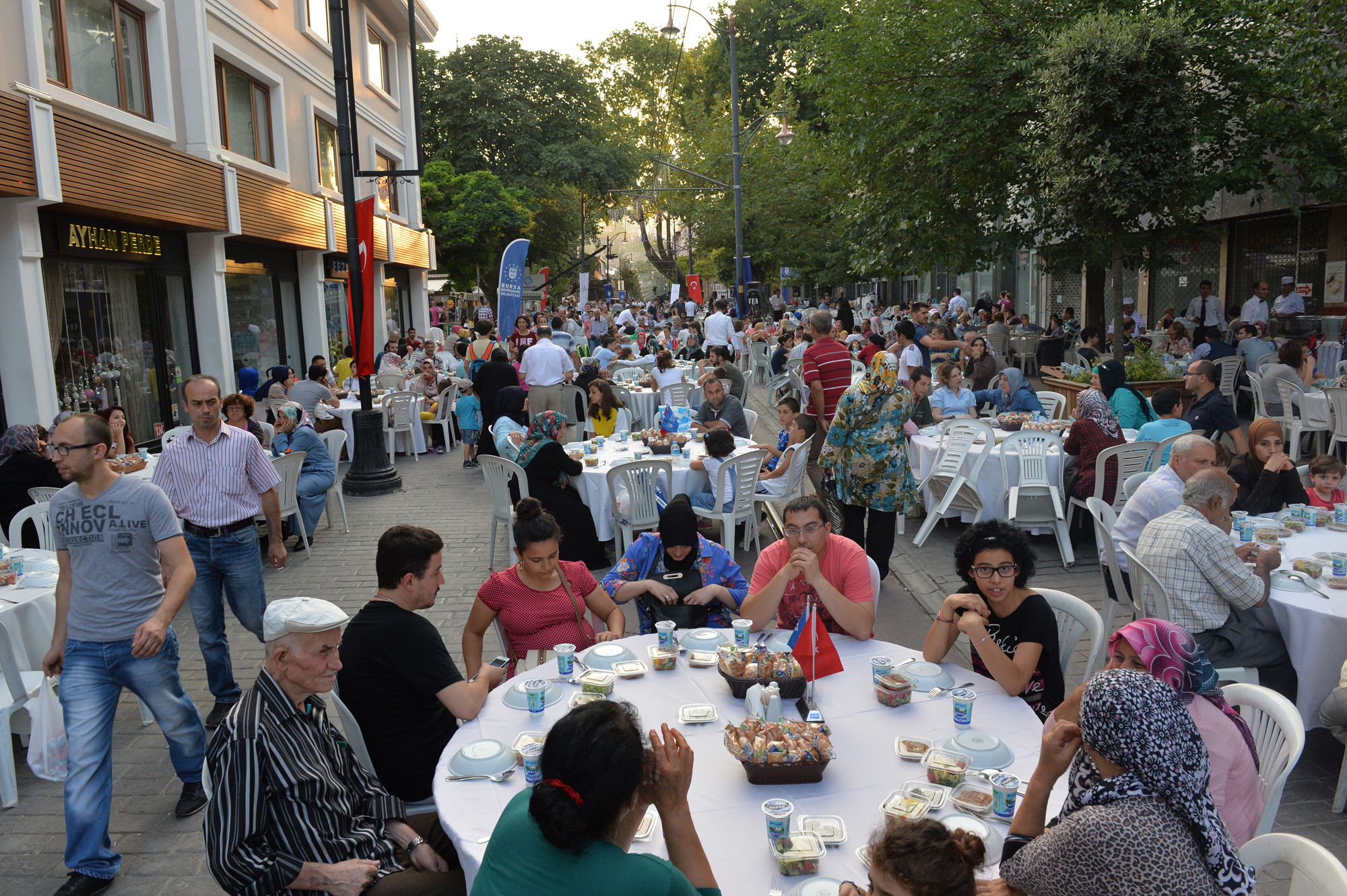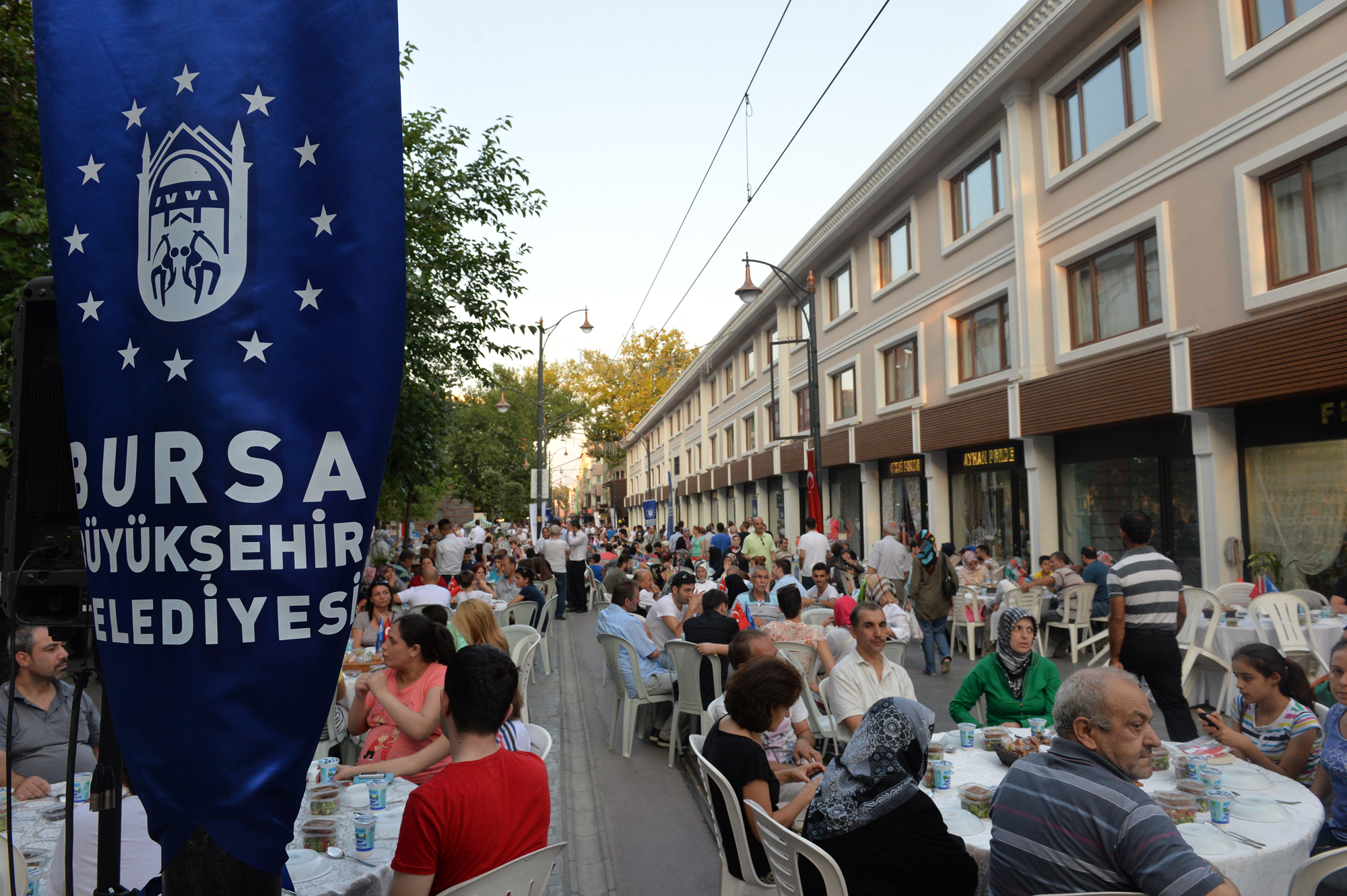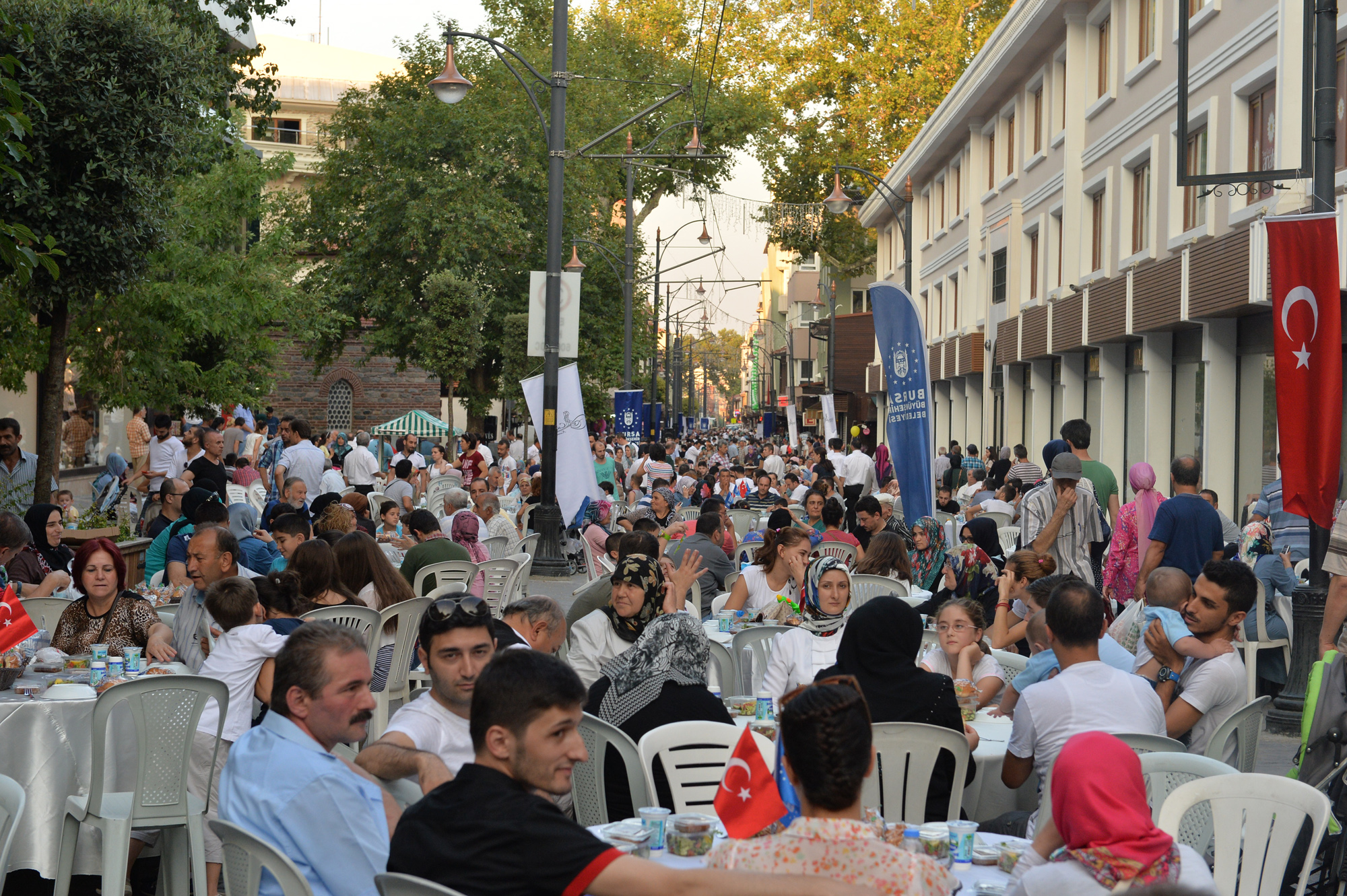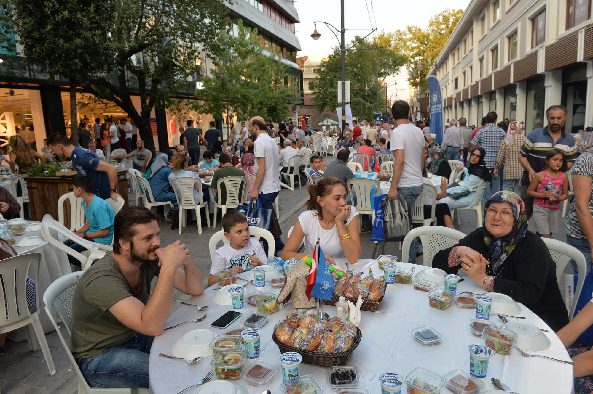 Büyükşehir Belediyesi tarafından trafiğe kapatılarak, 107 yıllık tramvay hayalinin gerçekleştirildiği Cumhuriyet Caddesi, festival, şenlik ve konser gibi farklı etkinliklerin de merkezi haline geldi. Özellikle Bursalıların bayram alışverişi için tarihi çarşıyı tercih etmesi nedeniyle yoğun bir hareketliliğin yaşandığı Cumhuriyet Caddesi, Ramazan ayının son gününde de Büyükşehir Belediyesi ve Cumhuriyet Caddesi Sanayici İşadamları Derneği tarafından organize edilen iftar yemeğine ev sahipliği yaptı. Cadde boydan boya masalarla döşenirken, alışveriş için çarşıda bulunan vatandaşlar, iftara saatler kala masalardaki yerlerini almaya başladı. Gün boyunca caddede yaşanan koşuşturmaca, iftar saatinin gelmesi ile yerine sakinliğe bıraktı. Bu yıl üçüncü kez düzenlenen etkinlikte 300 garson görev alırken, vatandaşlar beş yıldızlı otel konforunda iftar yapma imkanı buldu.