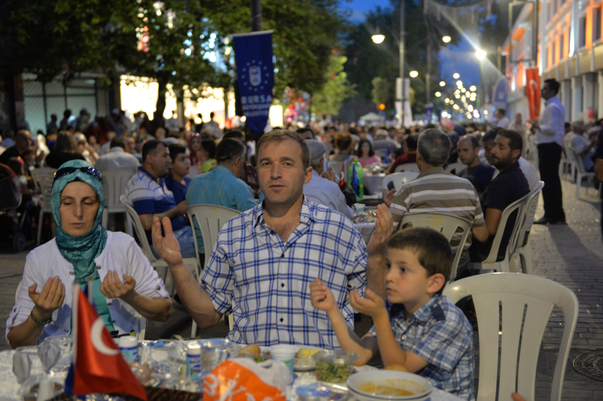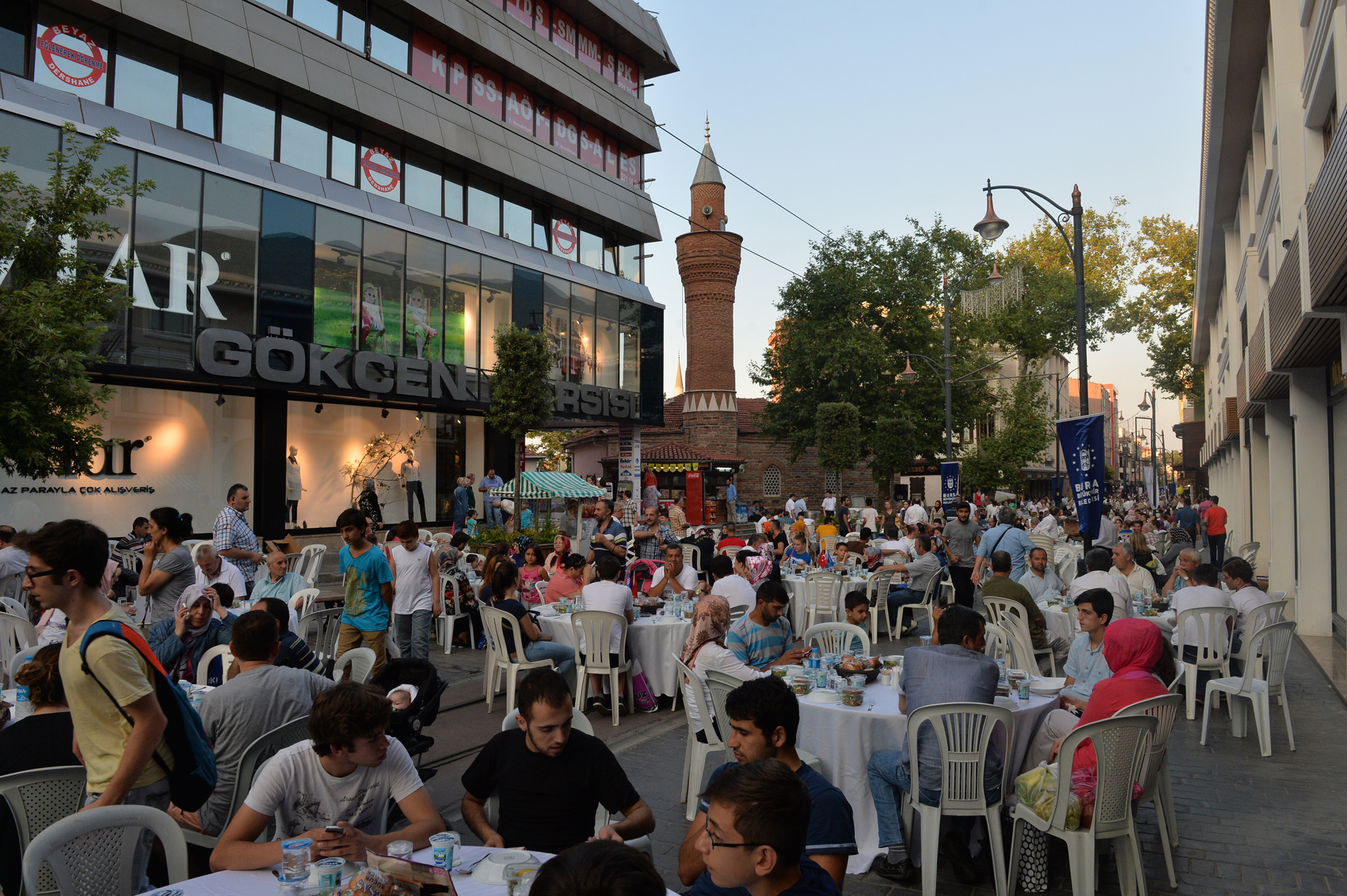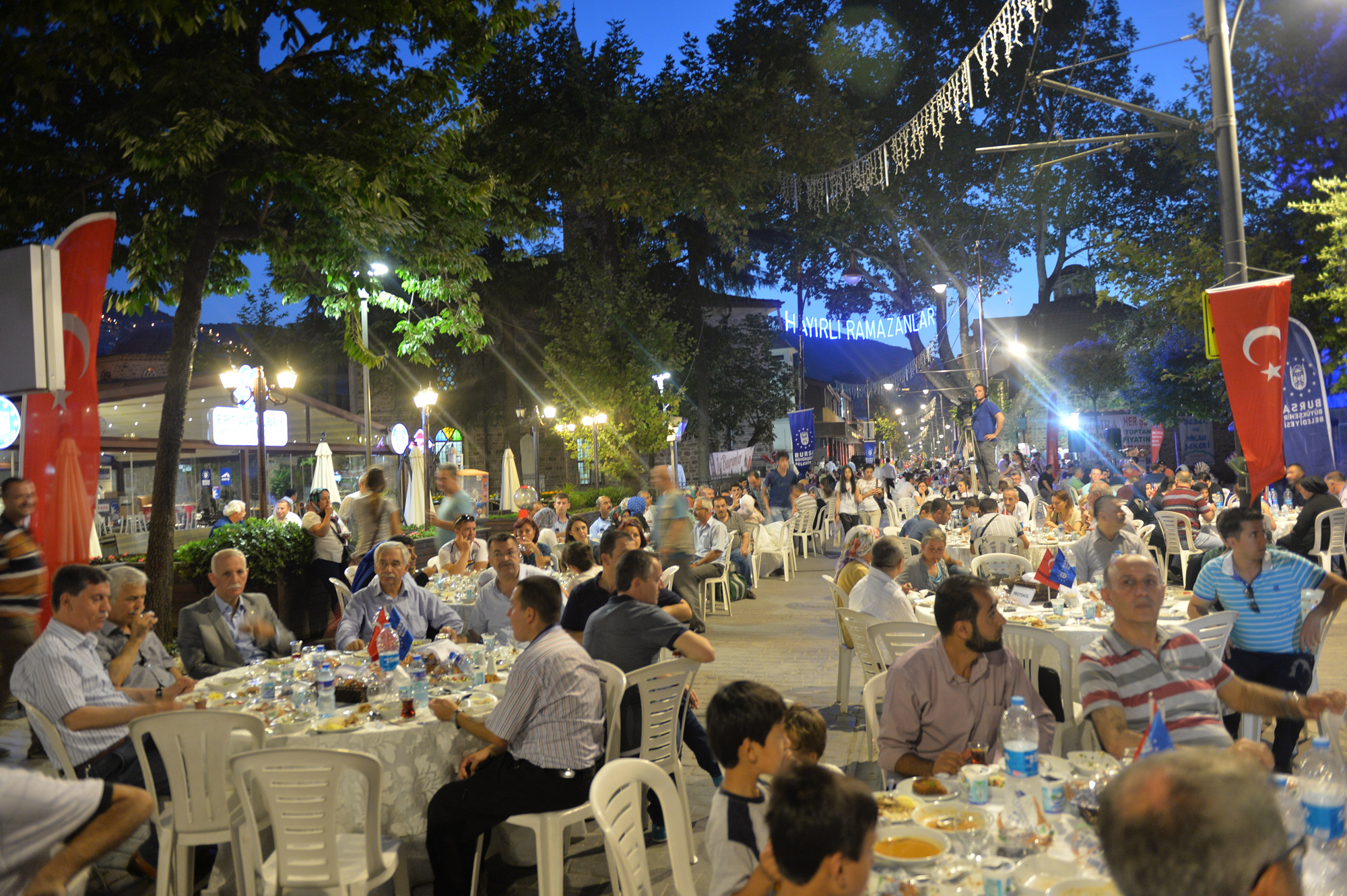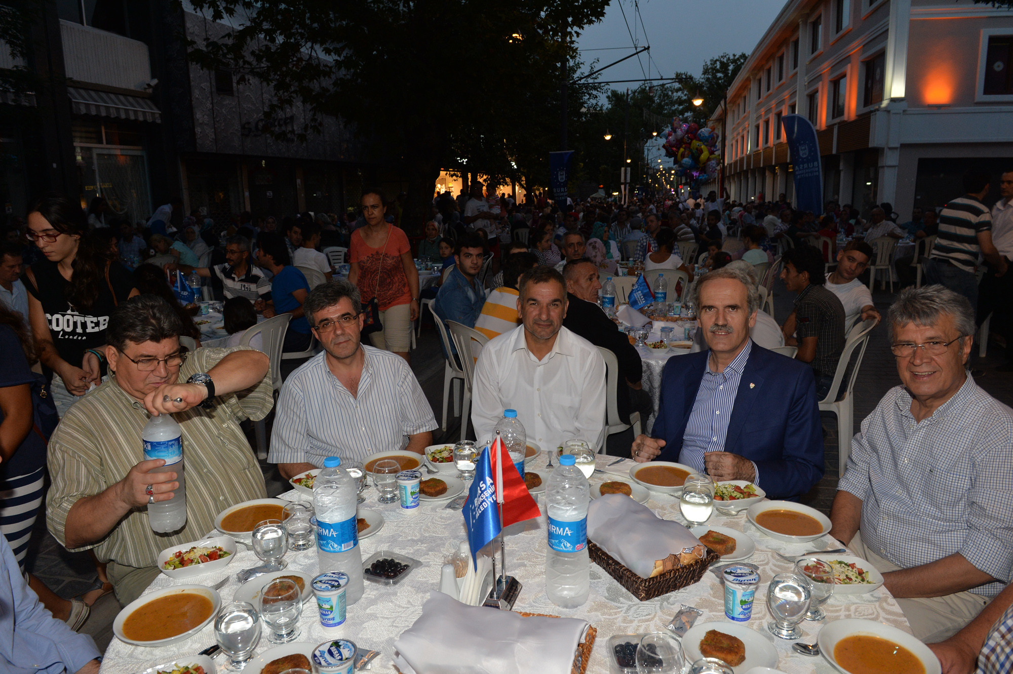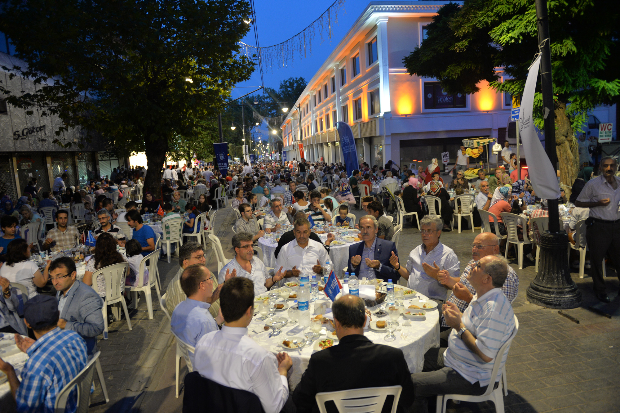 Büyükşehir Belediyesi tarafından trafiğe kapatılarak, 107 yıllık tramvay hayalinin gerçekleştirildiği Cumhuriyet Caddesi, festival, şenlik ve konser gibi farklı etkinliklerin de merkezi haline geldi. Özellikle Bursalıların bayram alışverişi için tarihi çarşıyı tercih etmesi nedeniyle yoğun bir hareketliliğin yaşandığı Cumhuriyet Caddesi, Ramazan ayının son gününde de Büyükşehir Belediyesi ve Cumhuriyet Caddesi Sanayici İşadamları Derneği tarafından organize edilen iftar yemeğine ev sahipliği yaptı. Cadde boydan boya masalarla döşenirken, alışveriş için çarşıda bulunan vatandaşlar, iftara saatler kala masalardaki yerlerini almaya başladı. Gün boyunca caddede yaşanan koşuşturmaca, iftar saatinin gelmesi ile yerine sakinliğe bıraktı. Bu yıl üçüncü kez düzenlenen etkinlikte 300 garson görev alırken, vatandaşlar beş yıldızlı otel konforunda iftar yapma imkanı buldu.