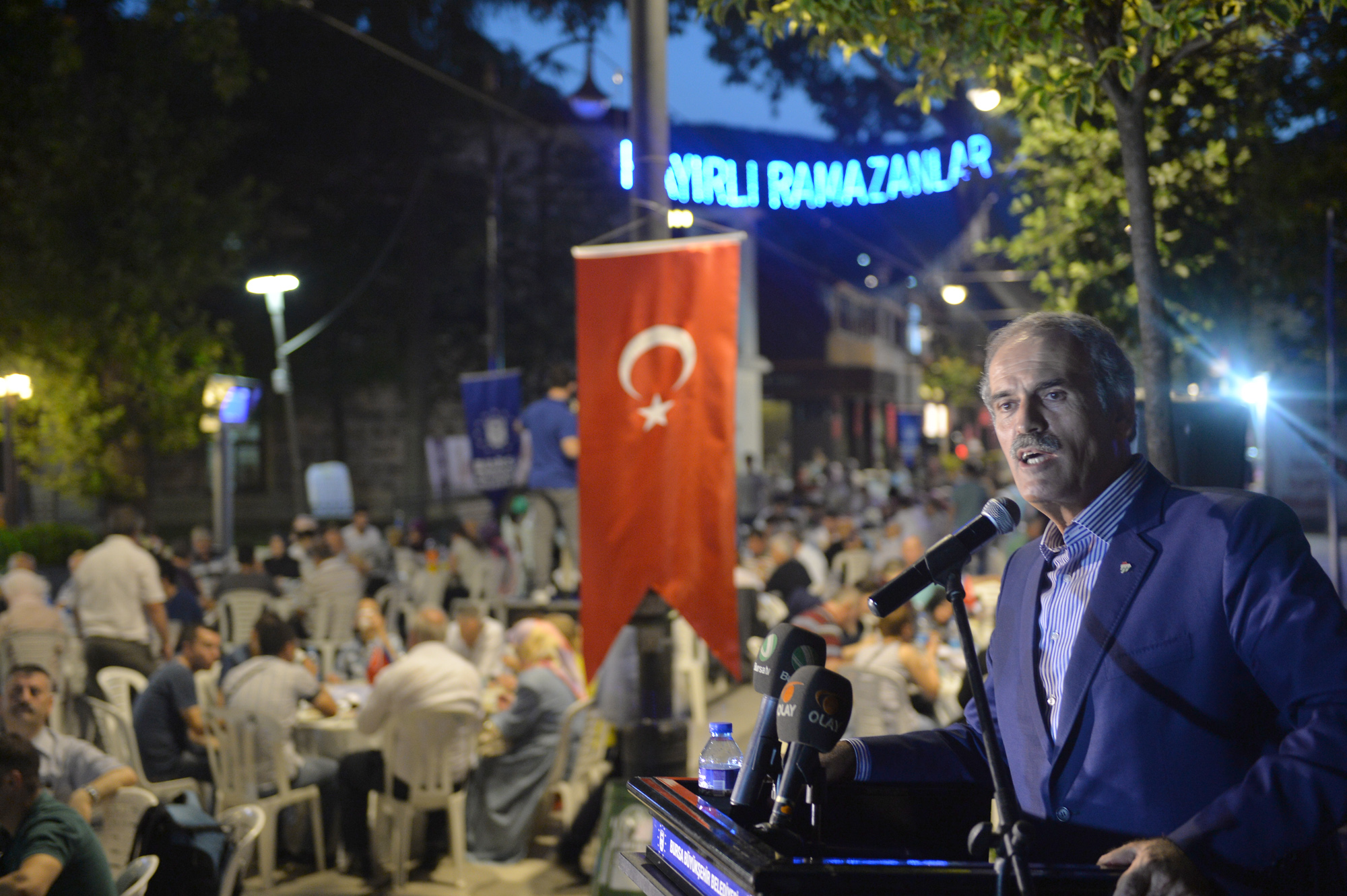 Cumhuriyet Caddesi’nde bu yıl üçüncü kez düzenlenen iftar yemeğine katılan Büyükşehir Belediye Başkanı Recep Altepe, bir ay boyunca kent merkezinin yanında ilçelerde de yüzlerce noktada verilen iftar yemekleri ve çeşitli eğlencelerle Bursa’da Ramazan ayının doya doya yaşandığını söyledi. Ramazan’ın son gününün çarşının en yoğun olduğu gün olduğunu hatırlatan Başkan Altepe, “Çarşımızda bu gece yarısına kadar alışveriş devam edecek. Biz de hem iftar saatini çarşıda geçiren vatandaşlarımız hem de esnafımız için böyle bir iftar programı organize ettik. Cumhuriyet Caddesi Sanayici İşadamları Derneği ile birlikte yaptığımız iftar organizasyonunda bu yıl da binlerce vatandaşımızı aynı sofra etrafında buluşturduk. Çarşı Bursa’mızın atar damarı. Bu nedenle 10 yıldır çarşı ve hanlar bölgesinde gece gündüz çalıştık. Çarşı bölgesinde tüm ana akslarda bulunan ecdat yadigarı eserleri restore ettik. Sonuçta Çarşı ve Hanlar Bölgesi, sultan külliyeleri ve Cumalıkızık UNESCO Dünya Mirası Listesi’ne girdi. Bugüne kadar yaptığımız çalışmaların boşa gitmediğini de görmüş olduk. Bu iftar organizasyonu da bu caddemizin önemli bir geleneği olacak. Ben etkinliğe katkı koyan herkese teşekkür ediyorum. Tüm halkımızın Ramazan Bayramını da kutluyorum” diye konuştu.