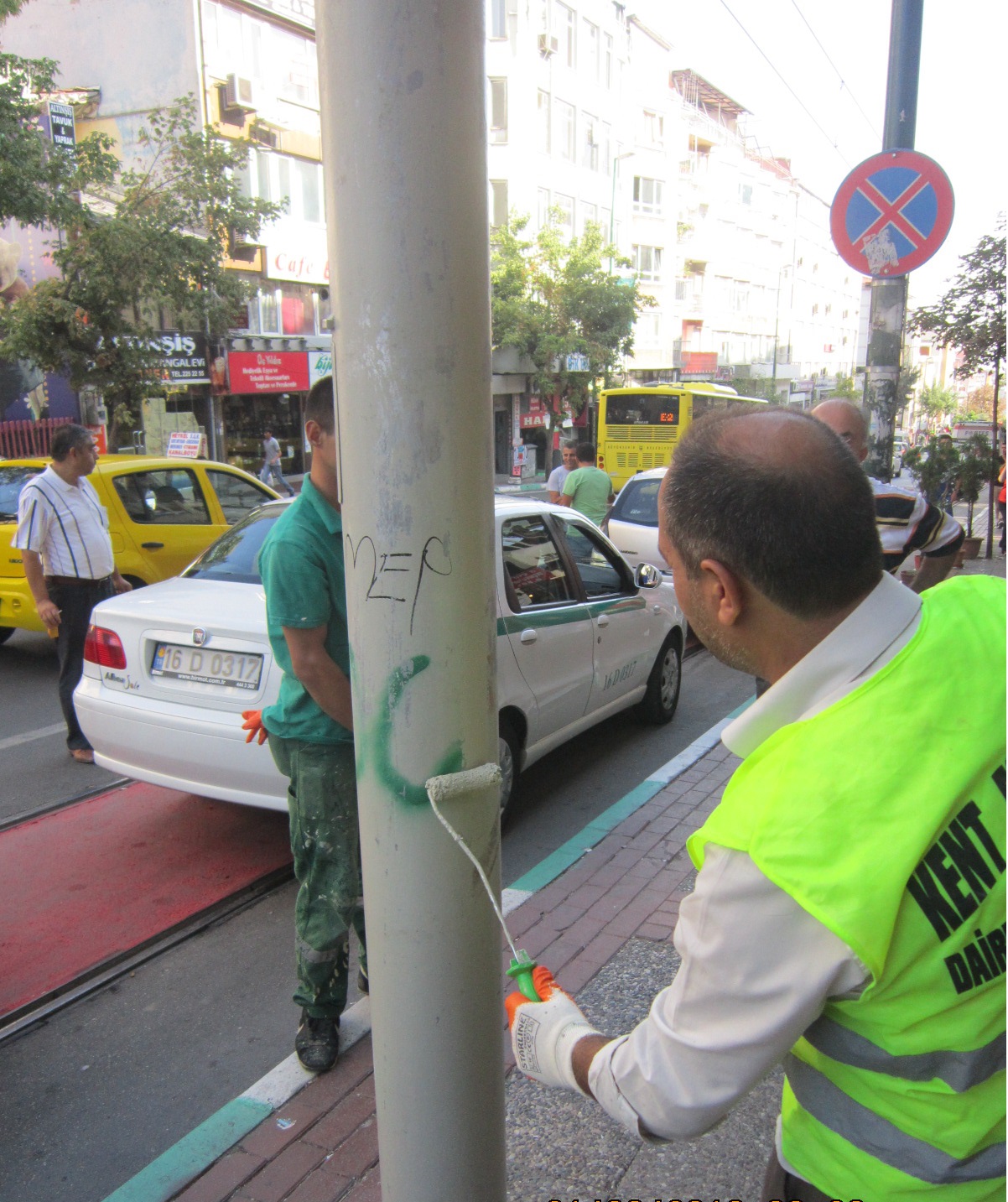 Büyükşehir Belediyesi görev, yetki ve sorumluluğunda bulunan kentsel mekânlarda kent estetiğini bozan, görüntü kirliliği yaratan uygunsuzlukların giderilmesi ve kentin fiziksel mekân kalitesinin artırılması Kent Estetiği Dairesi Başkanlığı’na bağlı Kent Estetiği Şube Müdürlüğü ekipleri çalışmalarını sürdürüyor. Kentin birçok yerinde yapılan kent estetiğine aykırı unsurların iyileştirilmesine yönelik çalışmalar, halkın ortak paylaşımının fazla olduğu merkezi mekanlarda yoğunlaşıyor. Kavşak ve batçıklardaki korkuluklar, özel ve etkili boyalarla boyanıp yenileniyor. Özellikle merkezi mekanlarda kentin estetiğini bozan, görüntü kirliğine yol açan ilan ve afişlerin engellenmesi adına, dünyada bu alanda kullanılan son yenilikler araştırılarak Bursa’da uygulanıyor. Bu kapsamda Anti-Stick (üzerine hiçbir şey yapıştırılamayan) özellikli boyalar ile T1 tramvay hattı boyunca tüm elektrik direkleri boyandı. Atatürk Caddesi, İnönü Caddesi ve Cumhuriyet Caddesi gibi merkezi caddelerde elektrik direkleri ve boxlar boyanarak görüntü kirliği engellendi.