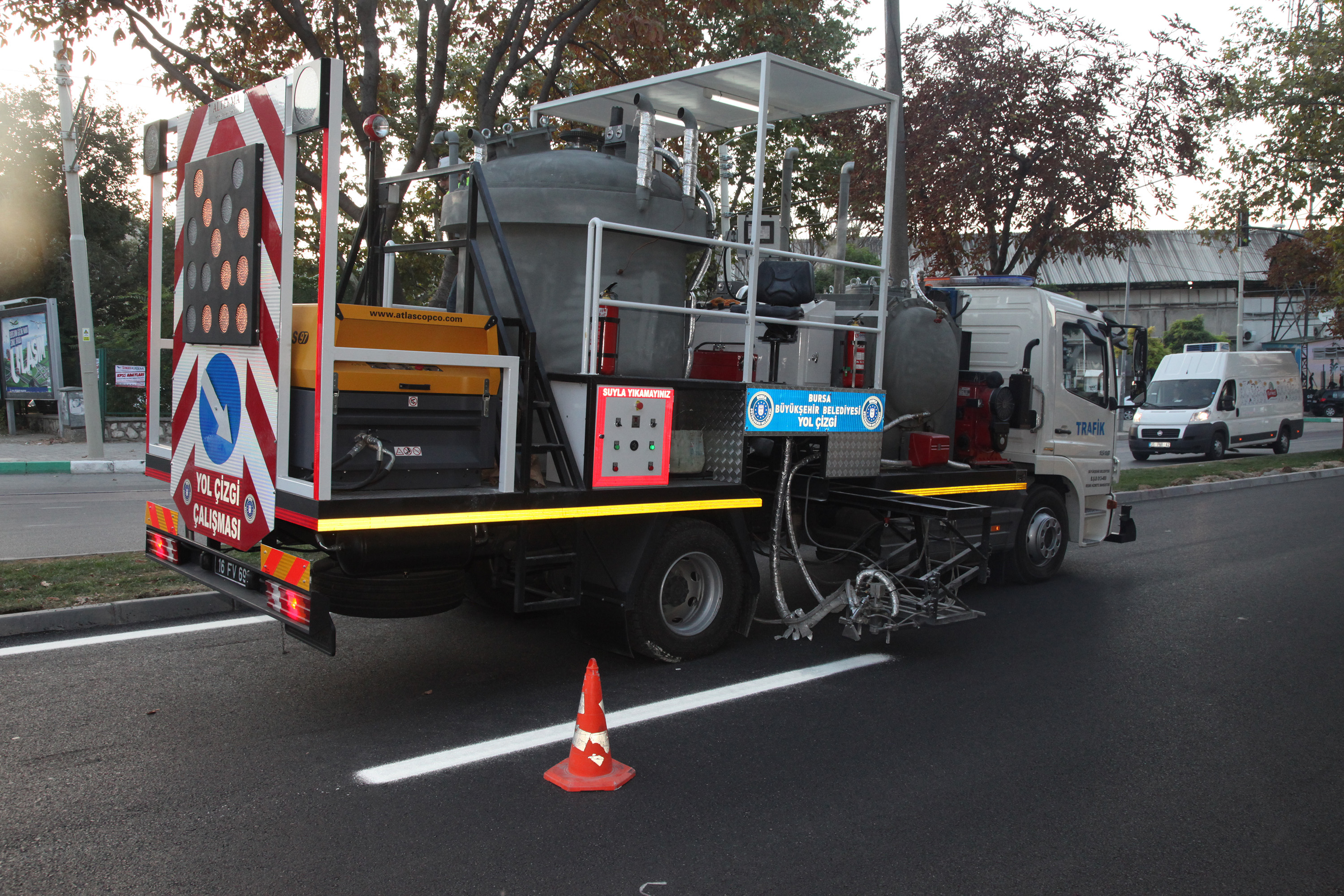 - BURSA´NIN ULAŞILABİLİR BİR KENT OLMASI YOLUNDAKİ ÇALIŞMALARINI ARALIKSIZ SÜRDÜREN BÜYÜKŞEHİR BELEDİYESİ, HER ÇALIŞMAYA ENTEGRE ETTİĞİ TEKNOLOJİK YENİLİKLERİ ASFALT ÇİZGİ ARAÇLARINA DA YANSITTI.