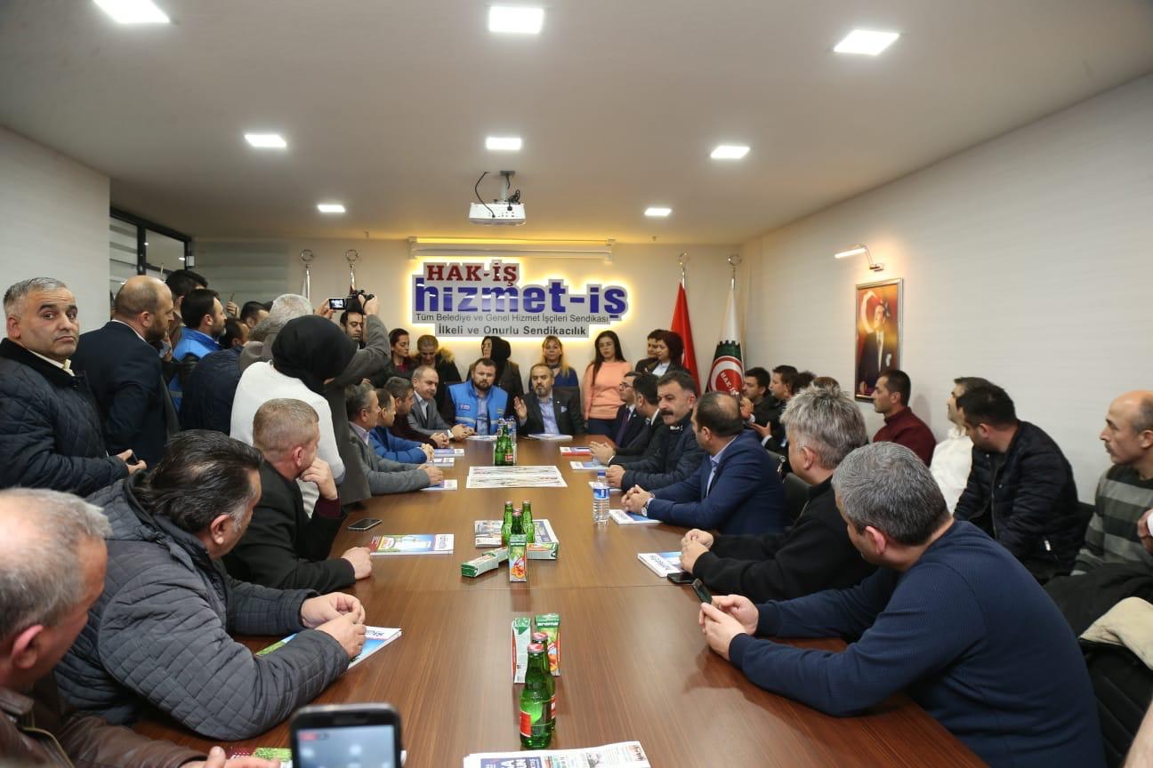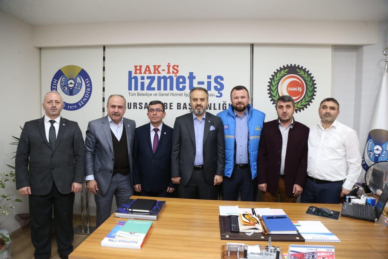 Başkan Alinur Aktaş, Hak İş ve Hizmet İş Bursa Temsilciliğine iade-i ziyarette bulundu. Şube Başkanı Mustafa Yavuz ve yönetim kurulu üyeleriyle görüşen Başkan Aktaş, Büyükşehir Belediyesi işçi ve çalışanlarının maş zam oranlarına ilişkin değerlendirmeler yaptı.