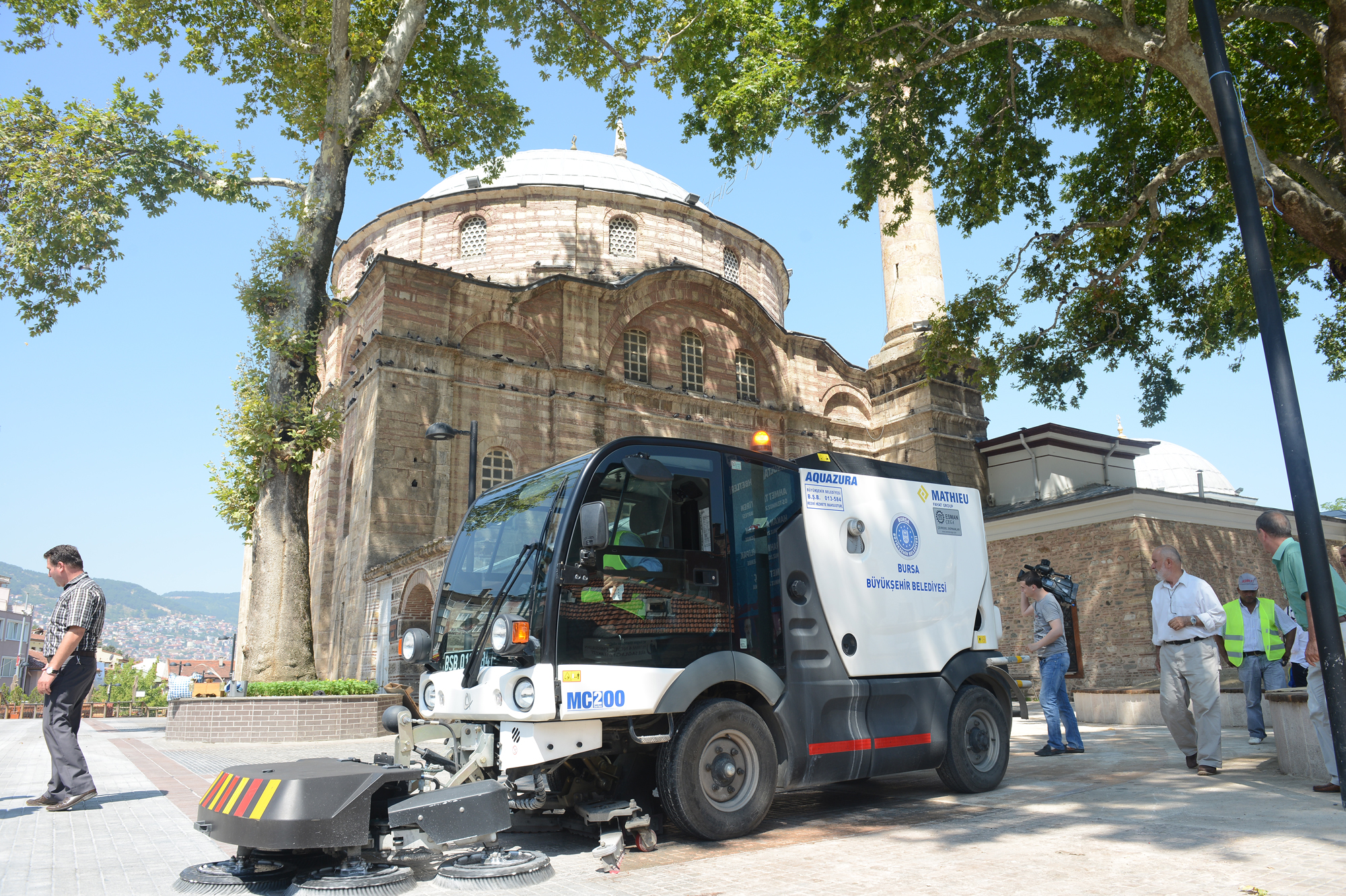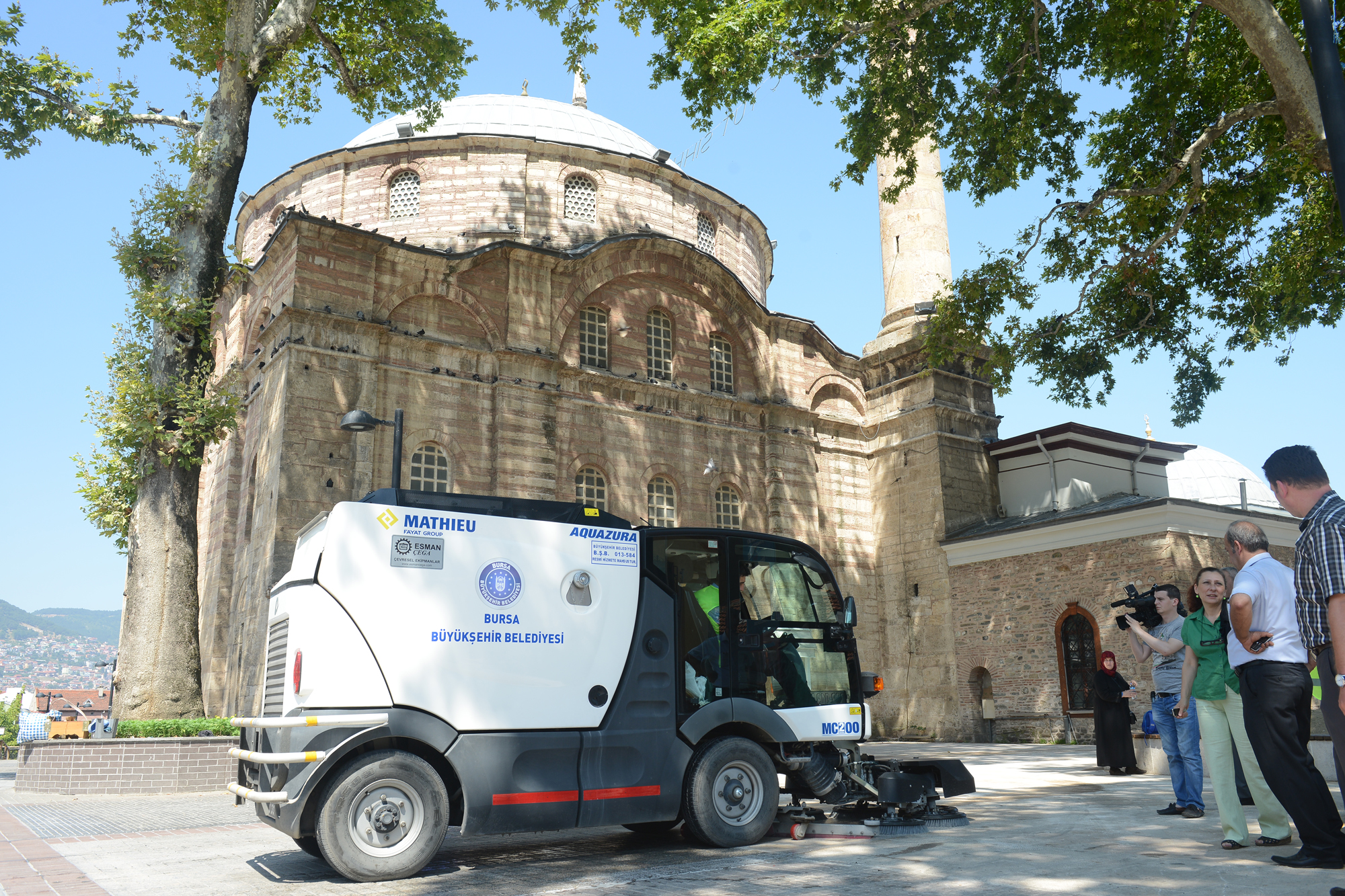 - BURSA BÜYÜKŞEHİR BELEDİYESİ ÖZELLİKLE RAMAZAN AYINDA VATANDAŞLARIN YOĞUN İLGİ GÖSTERDİĞİ EMİRSULTAN, ULUCAMİ VE YEŞİL CAMİİ GİBİ ÖNEMLİ CAMİLERİN BAHÇELERİNİ GÜL KOKULU YÜZ TEMİZLEYİCİLERLE DEZENFEKTE EDİYOR.