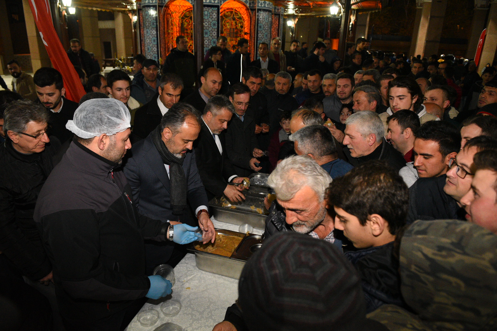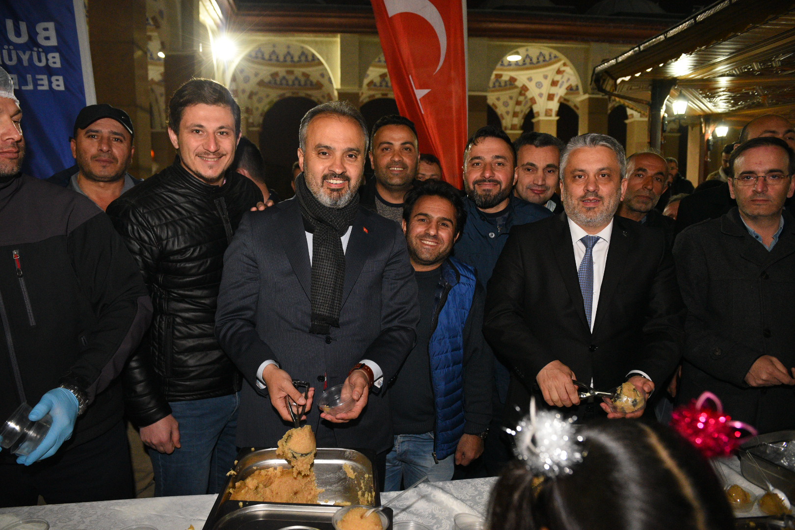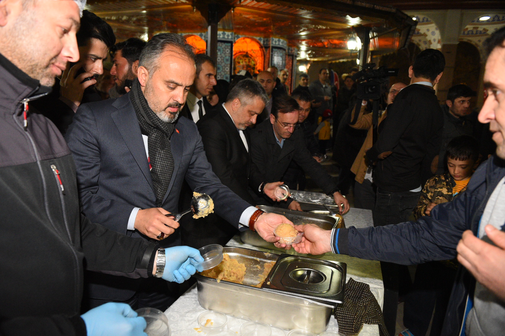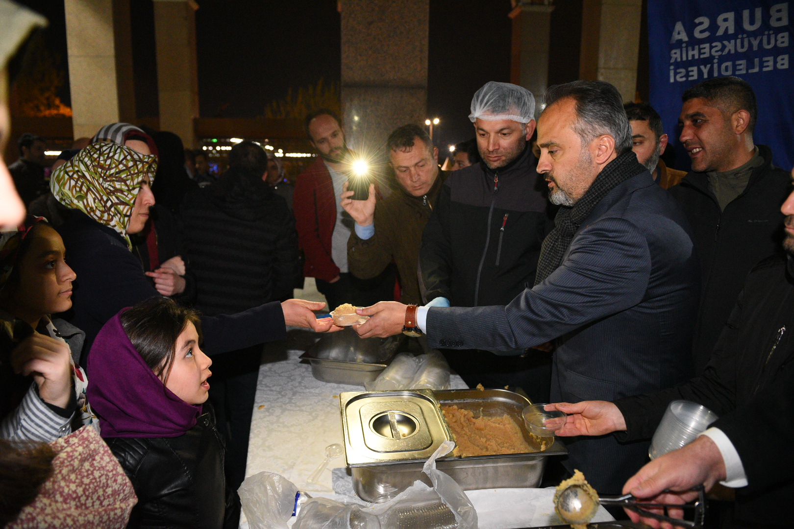 BURSA - Bursa Büyükşehir Belediye Başkanı Alinur Aktaş, Miraç Kandili nedeniyle Mihraplı Camii'ne akın eden vatandaşların kandil coşkusuna ortak oldu. Kandillerin toplumsal birlik ve beraberliğin artmasına vesile olduğunu belirten Başkan Aktaş, vatandaşlara helva ikram etti.