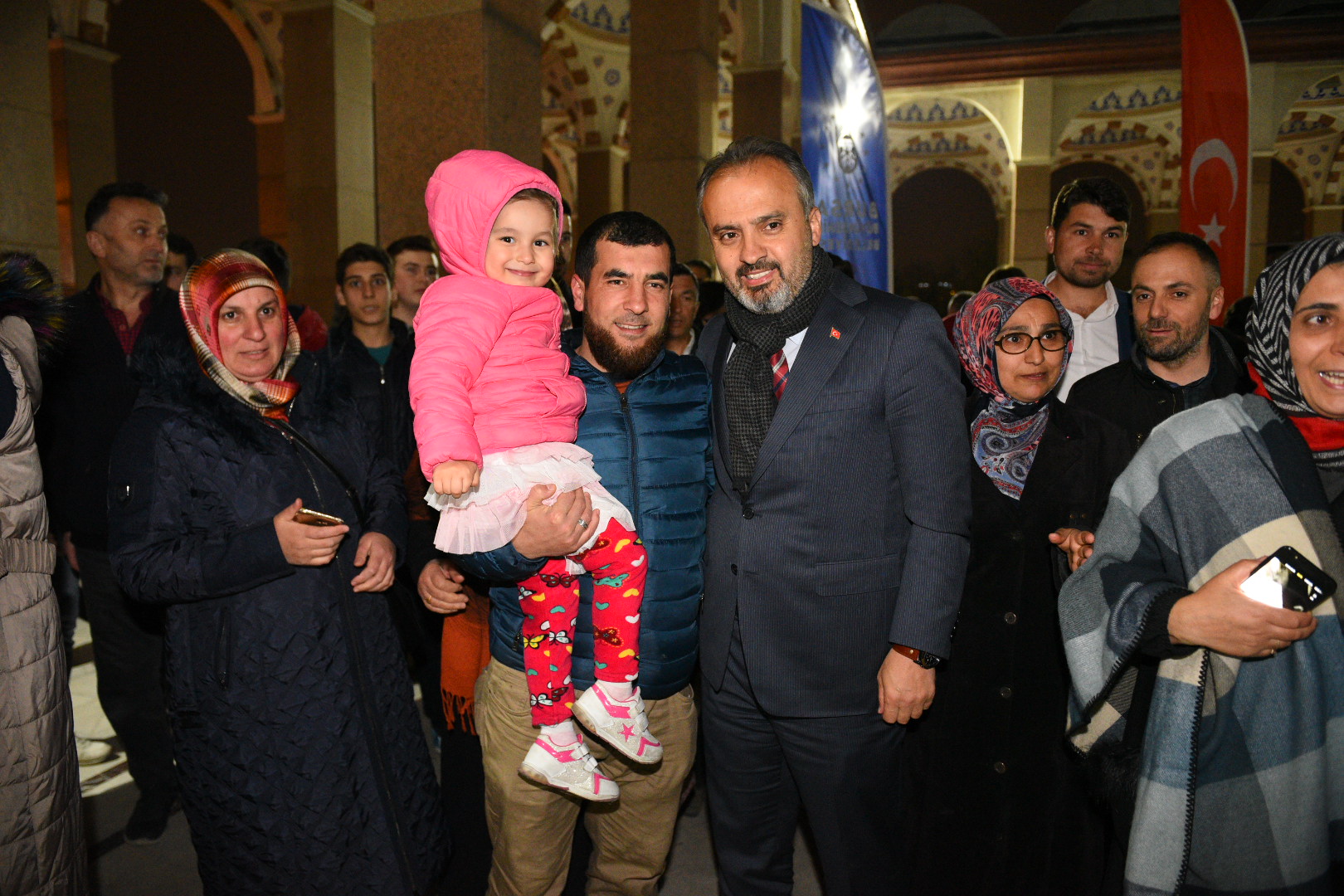 Allah'ın rahmetinin ve bereketinin en bol olduğu gecelerden biri olan Hz. Muhammed'in mihraca çıktığı gece olan Miraç Kandili'nde Bursalılar camilere akın etti. Bursa Büyükşehir Belediye Başkanı Alinur Aktaş da Miraç Kandili'ni Dikkaldırım'daki Mihraplı Camii'nde kutladı. Kandil programının ardından cami çıkışında vatandaşların kandilini kutlayan Başkan Aktaş, aynı zamanda vatandaşlara helva ikram etti. Vatandaşlar, yeniden Büyükşehir Belediye Başkanlığı'na seçilmesi nedeniyle tebrik ettikleri Başkan Aktaş'la bol bol hatıra fotoğrafı çektirdi.