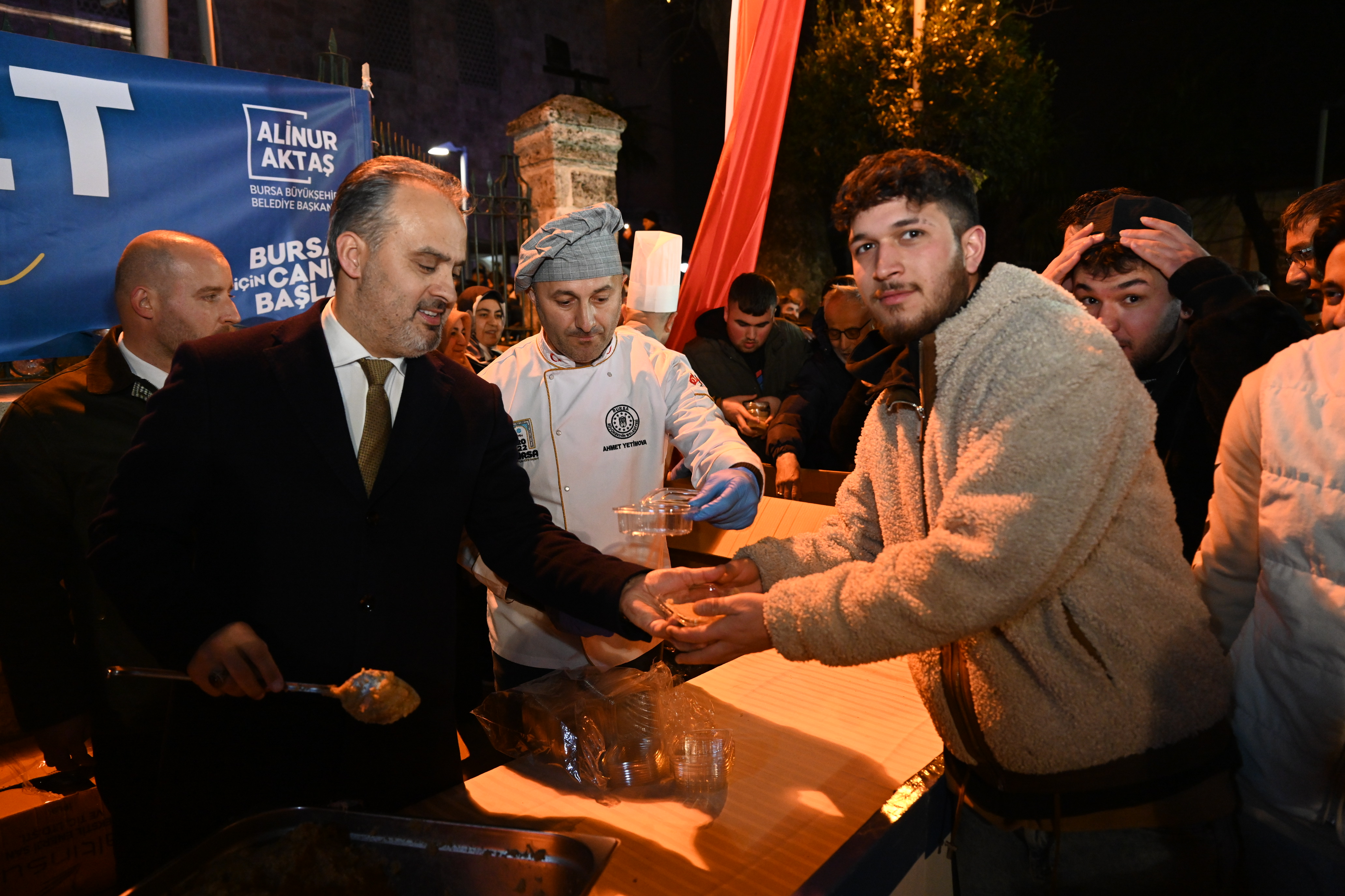 BURSA – Bursa Büyükşehir Belediye Başkanı Alinur Aktaş, Regaip Kandili münasebetiyle Ulu Cami’ye akın eden vatandaşların kandil coşkusuna ortak oldu. Bursa’nın selatin camilerinde vatandaşlara kandil nedeniyle helva ikram edildi.