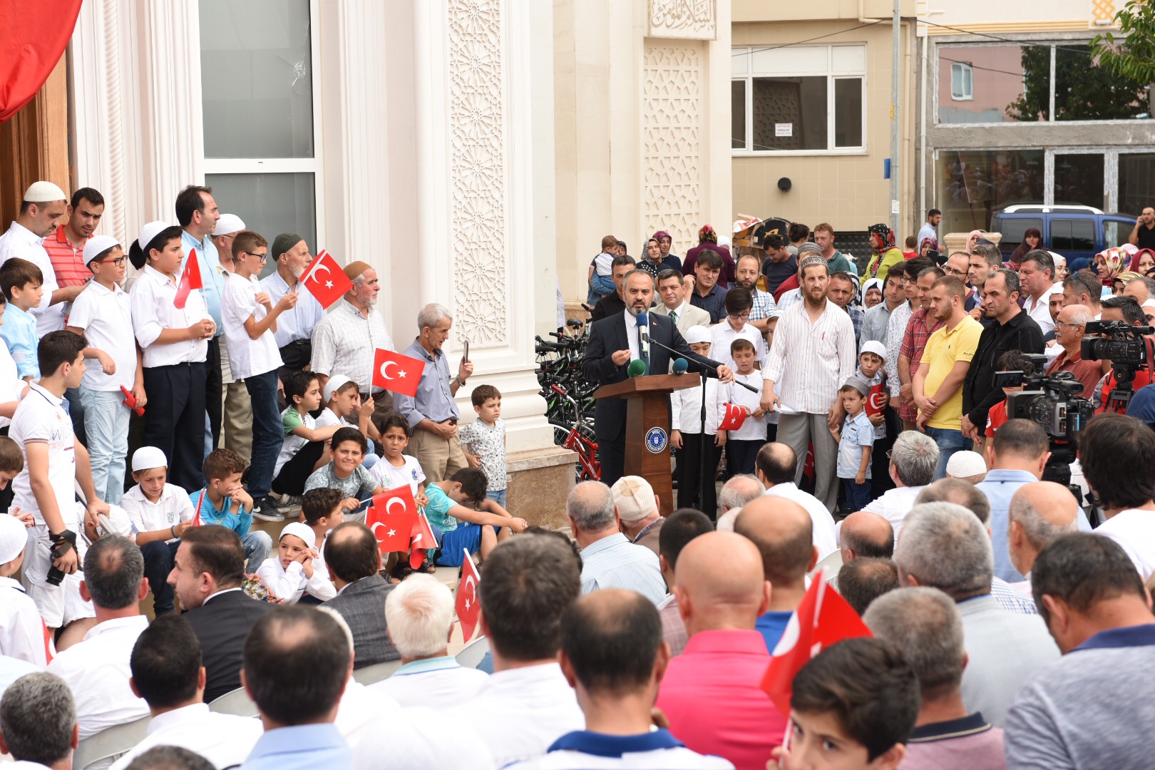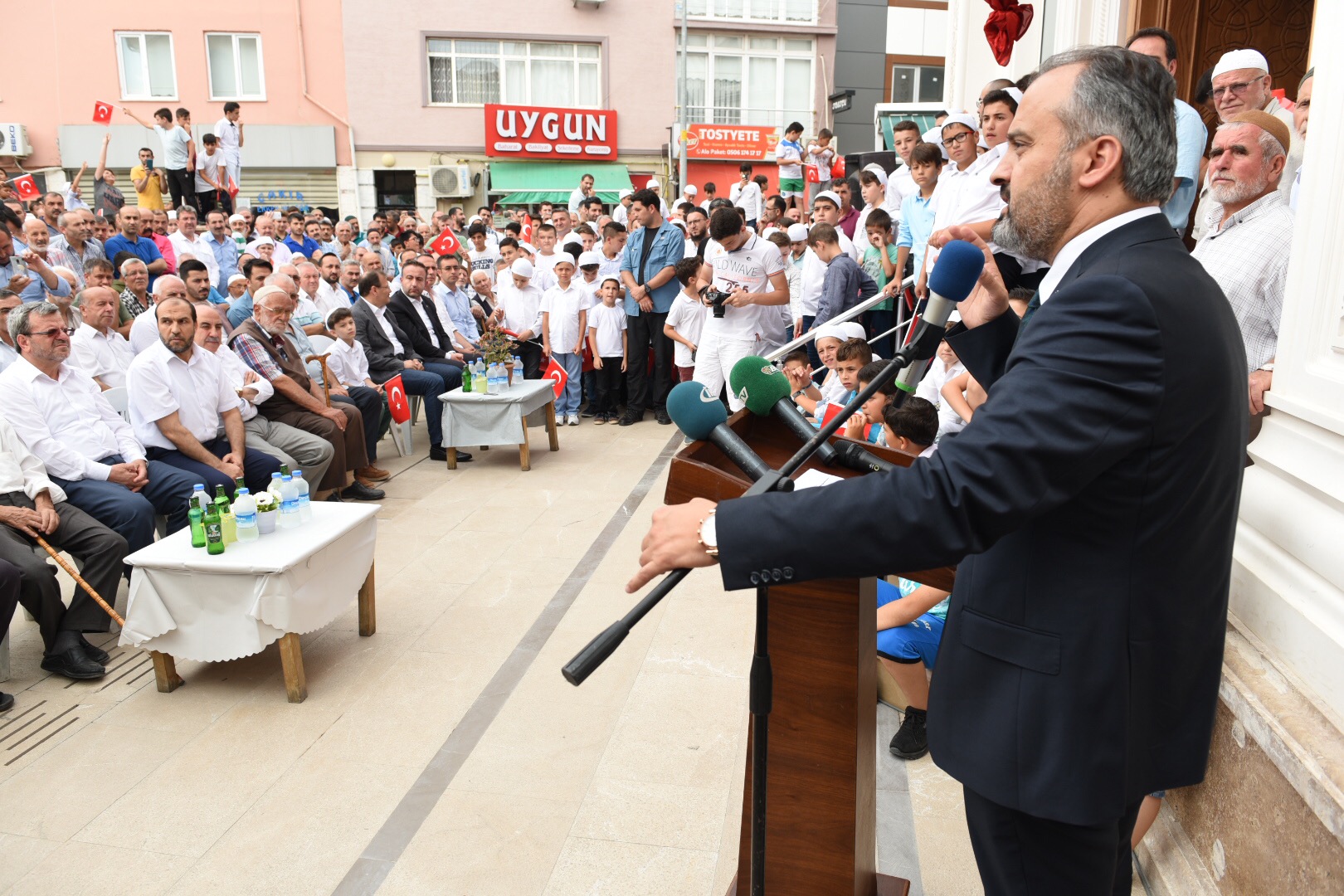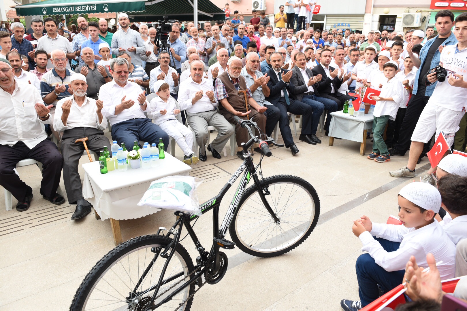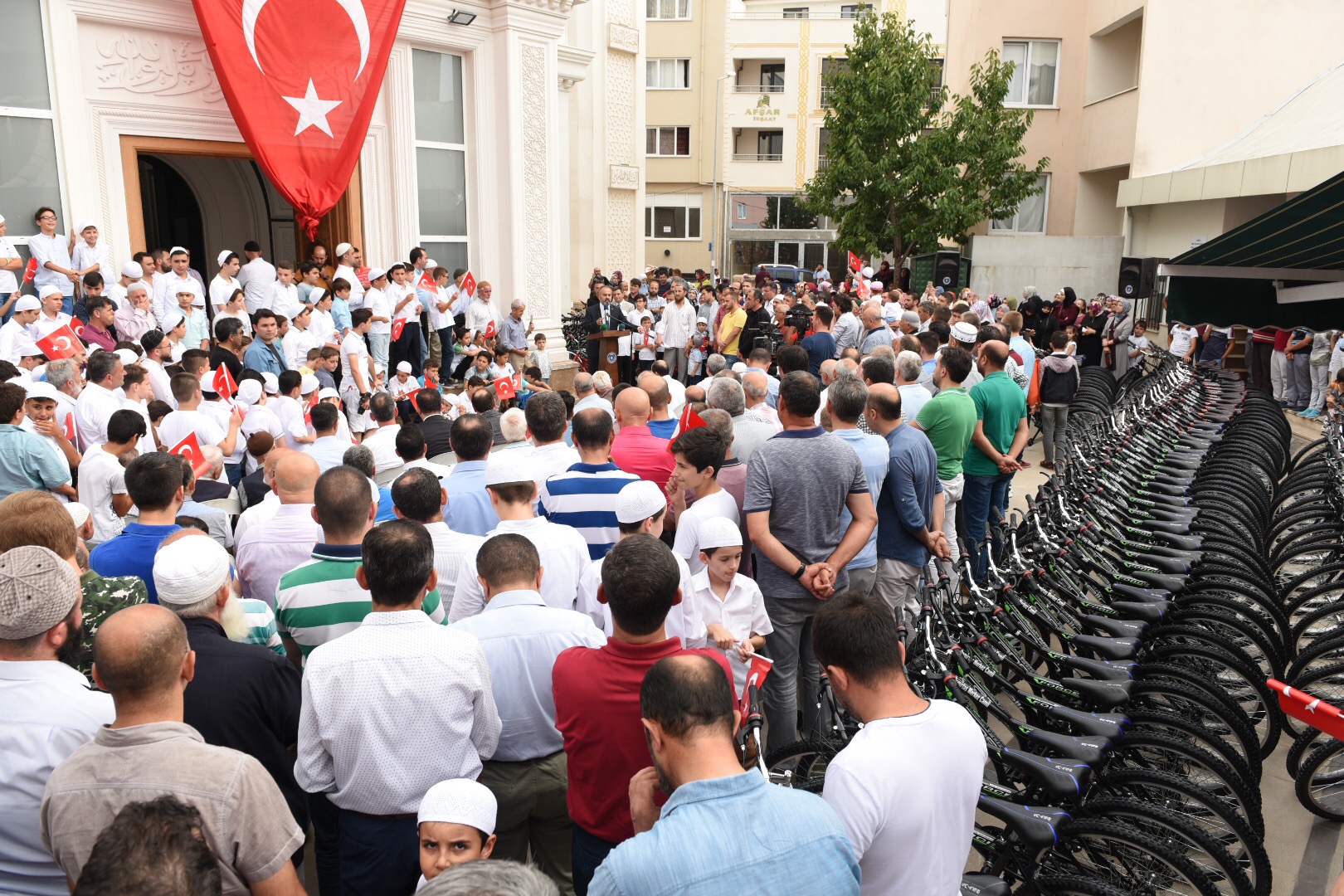 Merkez Camii’nde düzenlenen törenle, ödüller sahiplerine teslim edildi. İkindi namazını müteakip yapılan hediye dağıtım törenine, mahalle sakinleri ile bölgede yaşayan vatandaşlar büyük ilgi gösterdi. Büyükşehir Belediye Başkanı Alinur Aktaş, TBMM İnsan Hakları Komisyonu Başkanı ve Bursa Milletvekili Hakan Çavuşoğlu, AK Parti Osmangazi İlçe Başkanı Ufuk Çömez, İl Müftü Yardımcısı Hüseyin Tanır, İl Baş Vaizi Mehmet Kutlay ve Bursaspor Yönetim Kurulu Üyesi Enver Kumova da vatandaşları bu mutlu gününde yalnız bırakmadı. Dualarla başlayan törende, bisiklet ve forma kazananları Nebi Alp isimli çocuk temsil etti. Minik Alp, kendilerine camiye gitme alışkanlığını kazandıran yetkililer ile hayırsever vatandaşlara teşekkür etti.