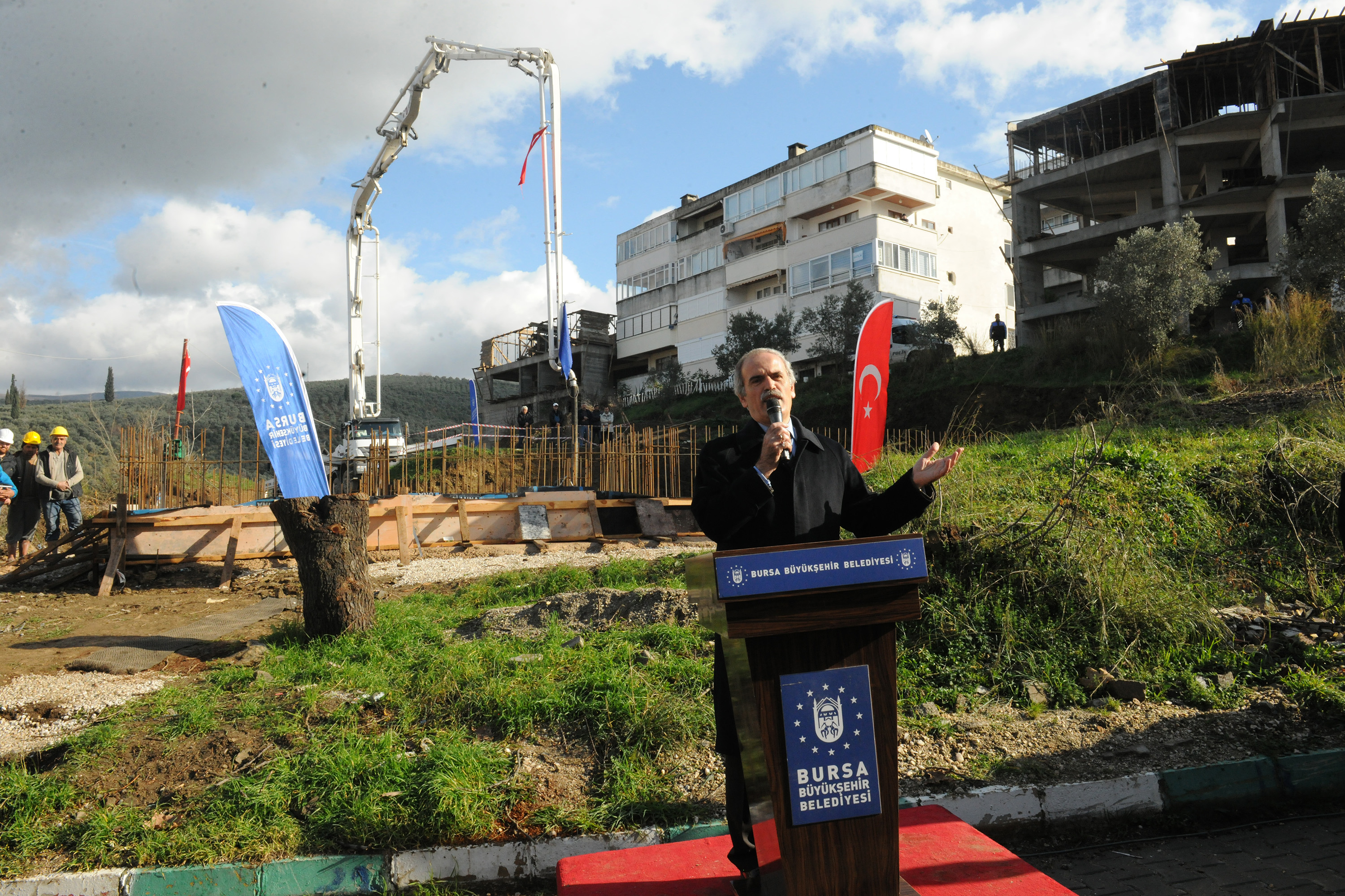 BURSA BÜYÜKŞEHİR BELEDİYESİ’NİN KATKILARIYLA GEMLİK KUMLA’NIN ÇAMLITEPE MAHALLESİ’NE YAPTIRILACAK ÇAMLITEPE CAMİİ’NİN TEMELİ TÖRENLE ATILDI.