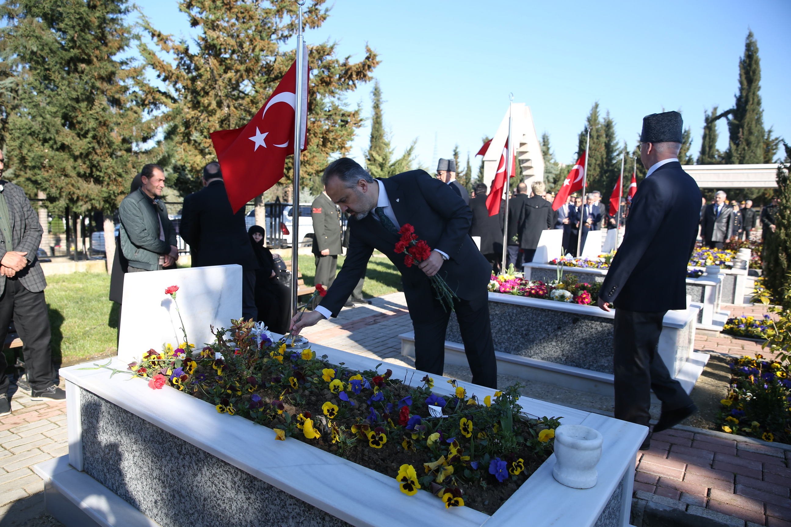 BURSA – Çanakkale Zaferi’nin 104’üncü yıldönümü tüm yurtta farklı etkinlikle kutlanırken, Bursa’da düzenlenen törenlerde şehit ve gaziler anıldı. Bursa Büyükşehir Belediye Başkanı Alinur Aktaş, güne sabah namazı sonrası kırık buğday çorbası içerek başladı ve şehitlikleri ziyaret etti.