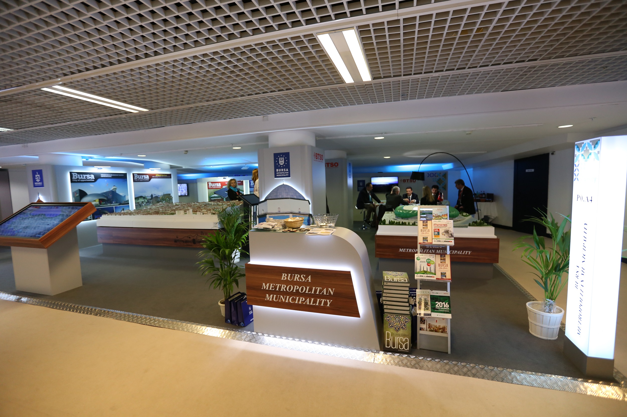 Yaklaşık 100 metrekarelik Bursa standında, şehrin genel tanıtımının yanı sıra; Sıcaksu bölgesi termal projesi, Büyükşehir Stadyumu, BTSO’nun hazırladığı Tekstil ve Teknik Eğitim Merkezi ile Uludağ Senaturyum binası projeleri, Kültürpark İpekiş projesi gibi büyük projeler tanıtıldı.