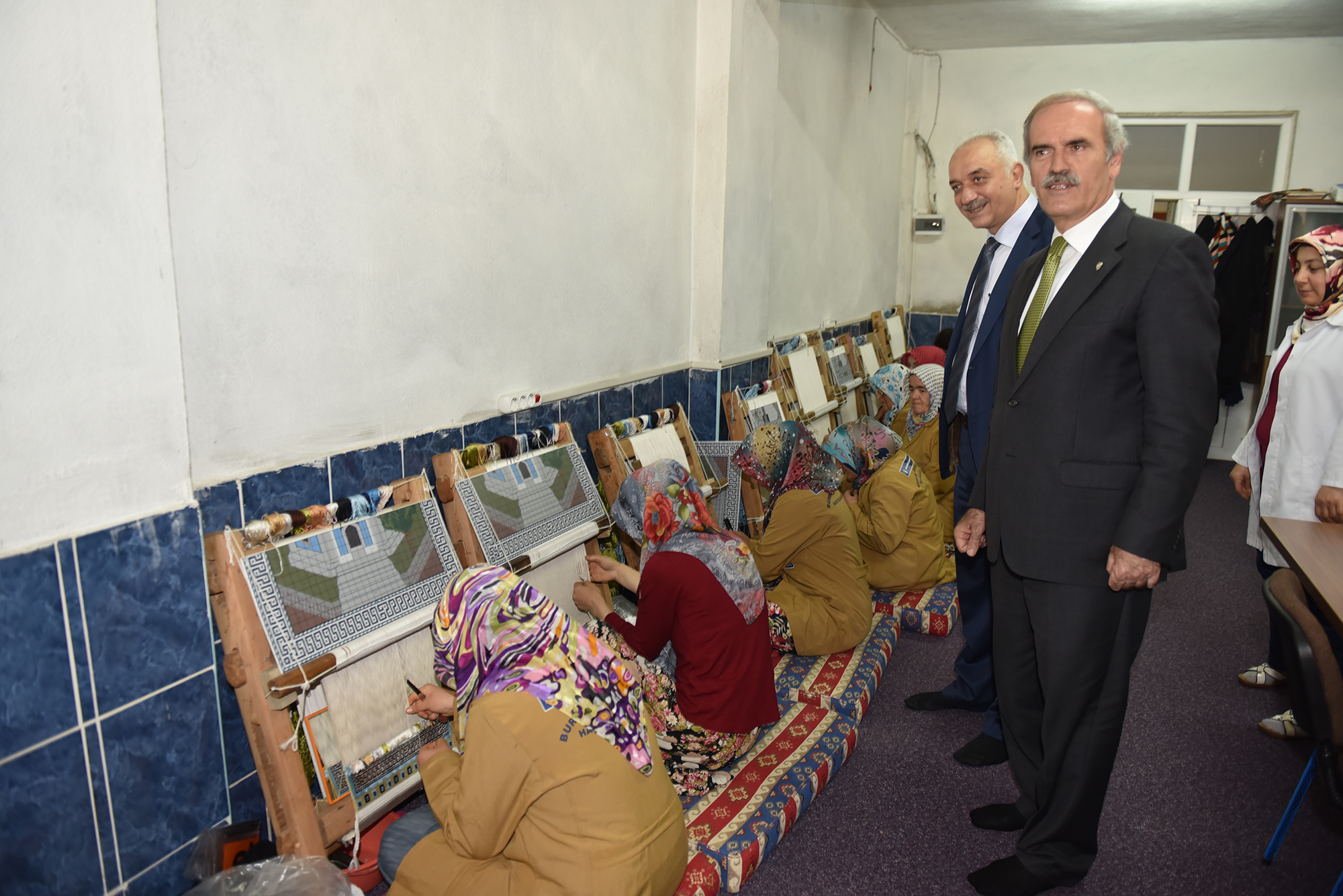 - ORHANELİ’NİN AKALAN MAHALLESİ’NDEKİ BUSMEK MERKEZİNİ ZİYARET EDEN BAŞKAN ALTEPE, İPEK HALI DOKUMA KURSLARINA KATILAN KADINLARIN HEM NİTELİKLİ İŞGÜCÜ HALİNE GELDİĞİNİ HEM DE AİLE EKONOMİSİNE KATKI SAĞLADIKLARINI VURGULADI.