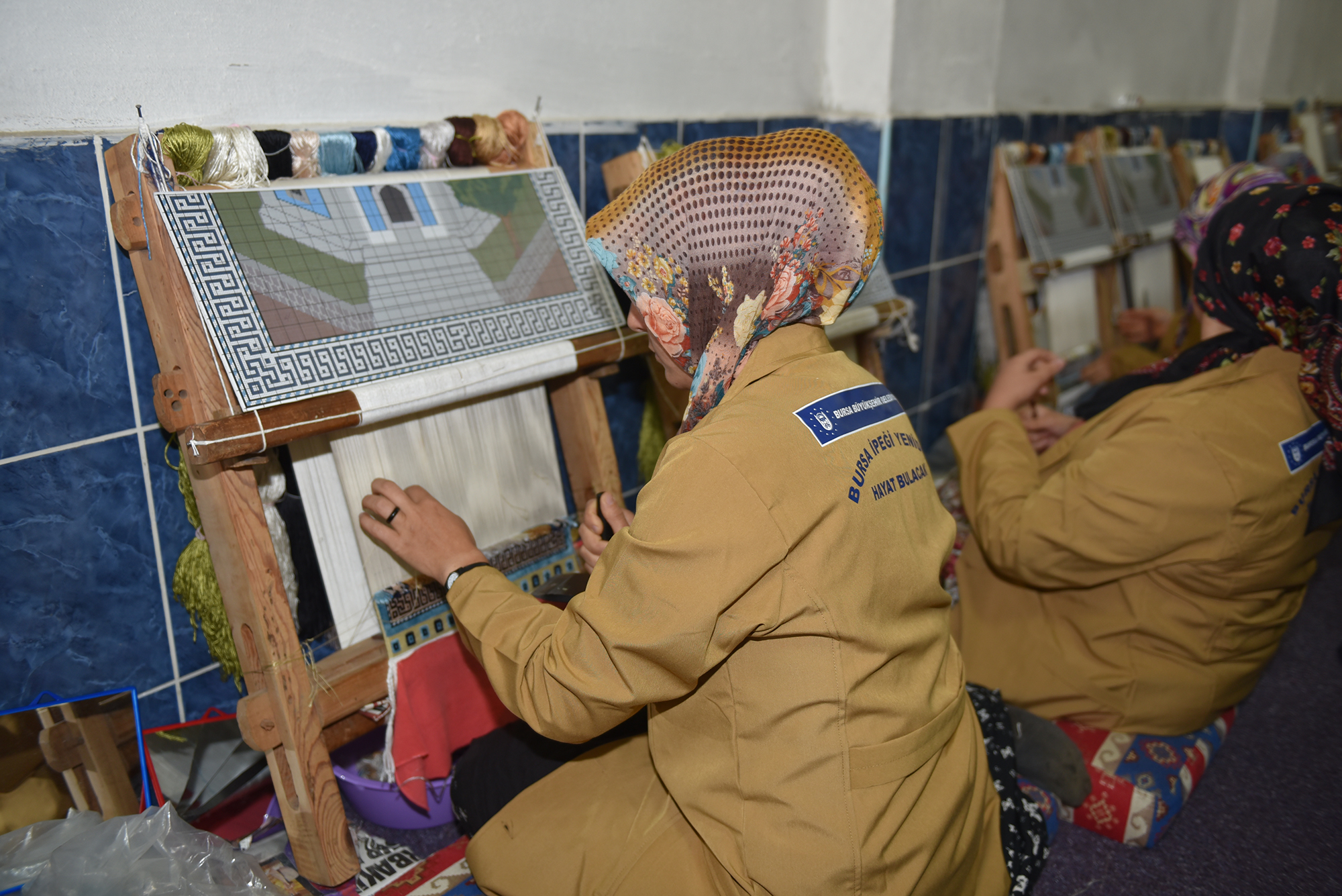 - BURSA BÜYÜKŞEHİR BELEDİYESİ’NİN MESLEK EDİNDİRME KURSLARI SAYESİNDE DÜNE KADAR ELLERİNDE ÇAPA BAĞ BAHÇE İŞLERİNDE ÇALIŞAN AKALANLI KADINLAR, ŞİMDİ İSE DOKUMA TEZGAHI BAŞINDA BURSA İPEĞİNE HAYAT VERİYOR.