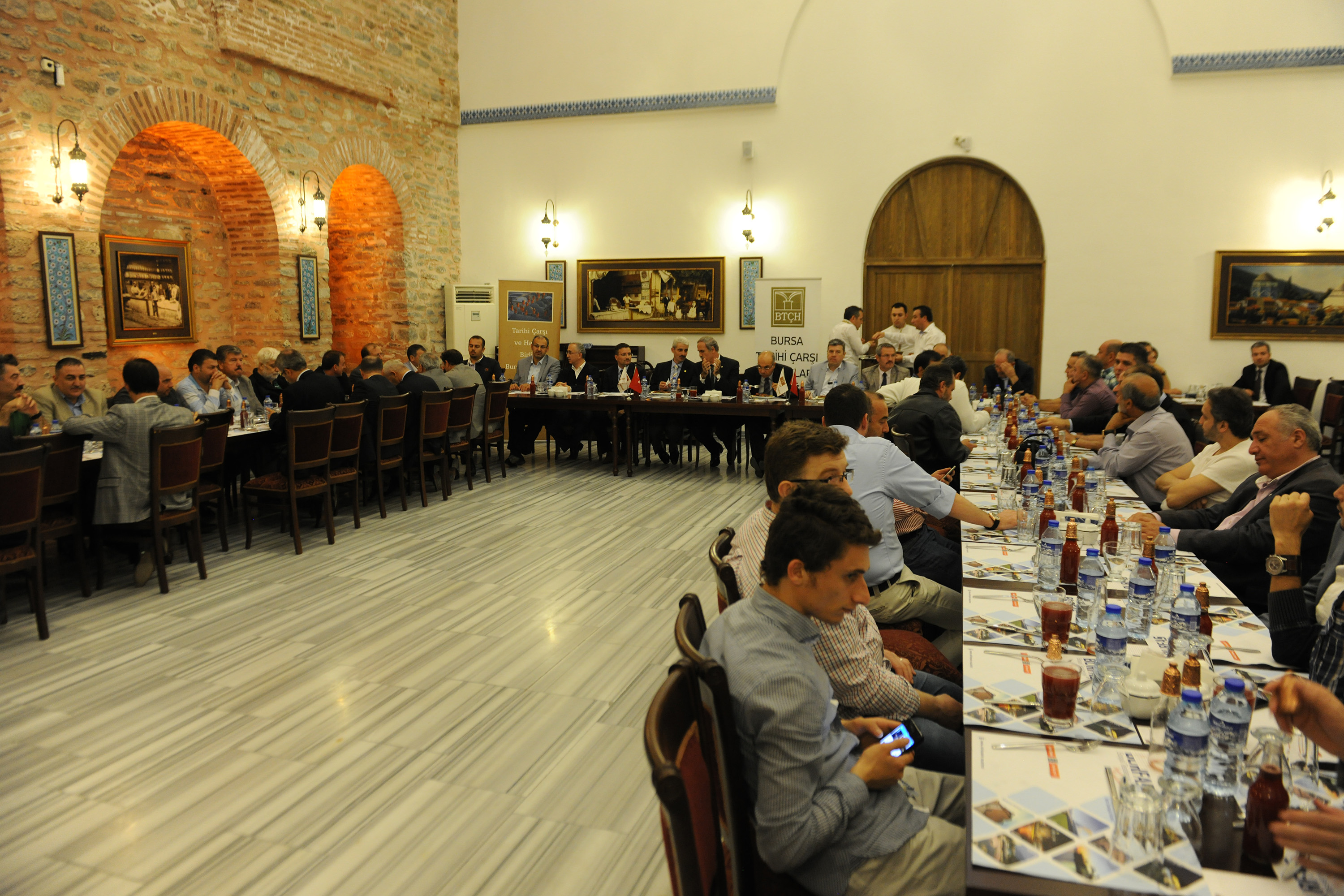 Bursa Tarihi Çarşı ve Hanlar Birliği Başkanı Bülent Erginal´ın ev sahibi olduğu toplantıya, Büyükşehir Belediyesi bürokratları ve esnaf temsilcileri katıldı. Bursa´nın sahip olduğu tüm güzelliklerle reyting almaya en müsait il konumunda bulunduğunu kaydeden Büyükşehir Belediye Başkanı Recep Altepe, şehrin en nadide bölgelerinden biri olan çarşıyı geceleri de çalışan canlı bir yer haline getirmek istediklerini ifade etti. Bu hedefle çıktıkları yolda Bursa Tarihi Çarşı ve Hanlar Bölgesi´nde ilk olarak Uzun Çarşı´yı dükkan dükkan yenilediklerini, çarşının üzerini örttüklerini, daha sonra Geyve Han, Tuz Han gibi Osmanlı eserlerini asıllarına sadık kalarak restore ettiklerini, Osmanlı´nın kuruluş dönemine ait birçok eseri ayağa kaldırdıklarını hatırlatan Başkan Altepe, Gelinlikçiler Çarsısı ve Bedesten´le ilgili çalışmaların sürdüğünü, Gelinlikçiler Çarşısı´nın yeniden düzenlenmesinin ihale aşamasında olduğunu ifade etti.
