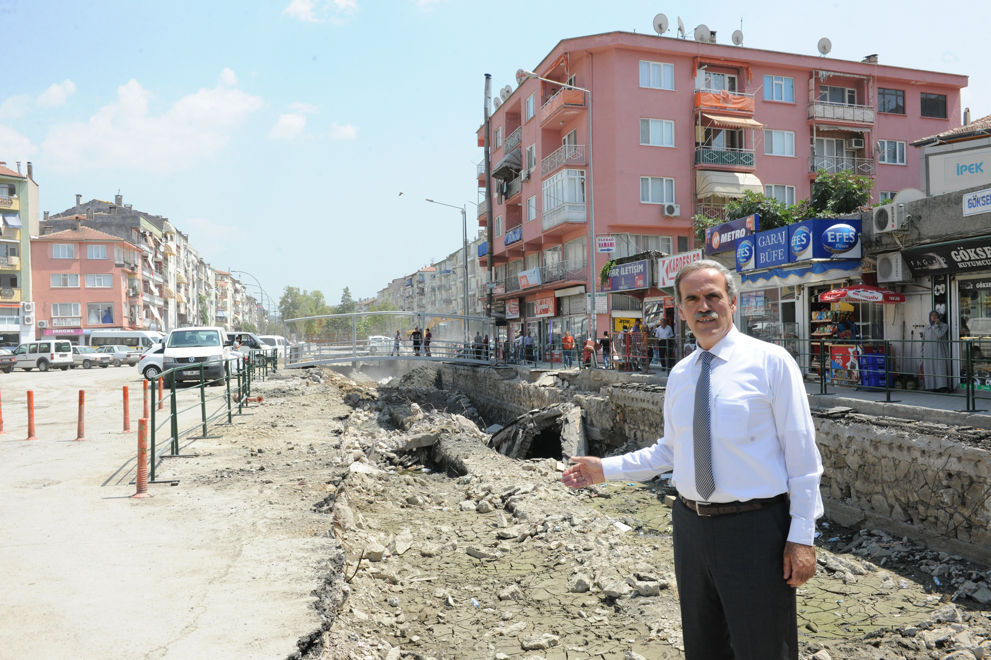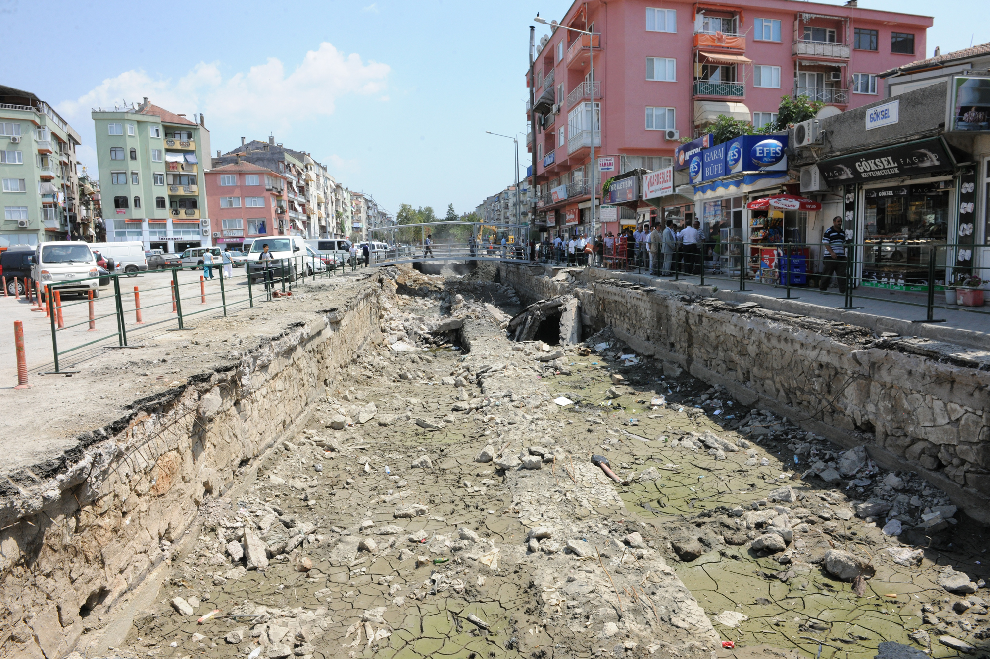 Çarşı deresinin denize kadar olan 350 metrelik bölümünün üzerinin 50 yıl önce kapatıldığını belirten Başkan Altepe, “Bu kapalı bölümde yaptığımız incelemede suyla gelen dolgu malzemelerinin önemli bir yığılma yaptığı görüldü. Dere tabanı ile köprü arasındaki mesafe 60 santimetreye kadar düşmüştü. Sel felaketi yaşanmaması için derenin bundan sonraki kısmının da aslına uygun olarak üzerinin açılmasına karar verdik. Çalışmalar hızla devam ediyor. Derenin bu bölümü de kanalizasyondan arındırılıyor ve yan duvarları ile zemini sağlıklı hale getiriliyor. Çalışmalar tamamlandığında Çarşı Deresi 50 yıl önce olduğu gibi üzeri açık olarak denizle buluşacak” diye konuştu.