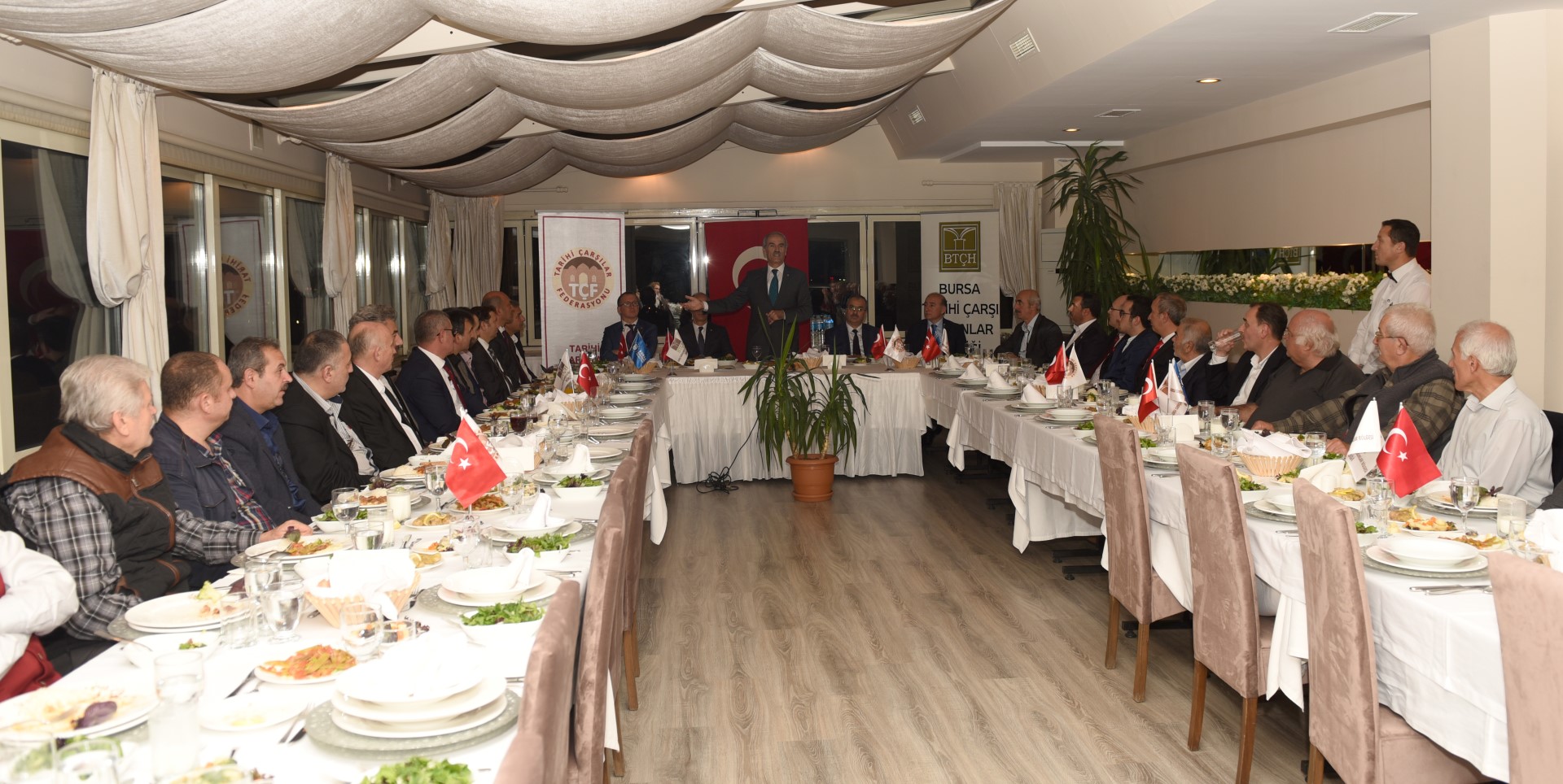 Aralarında İstanbul, Bursa ve İzmir’in de bulunduğu 7 ilde faaliyet gösteren çarşıların bir araya gelmesiyle kurulan Tarihi Çarşılar Federasyonu’nun merkez olarak Bursa’yı belirlemesinin ardından başlayan yönetim ofisi arayışı Büyükşehir Belediye Başkanı Recep Altepe’nin devreye girmesi ile sona erdi. Federasyonun İstanbul’da yapılan birinci olağan genel kurulunda onursal başkanlığa seçilen Başkan Altepe, hem çarşıların merkezinde olması hem de tarihi dokusunun uygunluğu nedeniyle Heykel’deki tarihi belediye binasında federasyon için yer tahsis etti. Türkiye’nin farklı illerinden geleceğe federasyon temsilcilerini artık bu tarihi mekanda ağırlayacak olmanın mutluluğu yaşayan Tarihi Çarşılar Federasyonu Başkan Muhsin Özyıldırım ve yönetim kurulu düzenledikleri teşekkür yemeğinde Başkan Altepe’yi ağırladı.