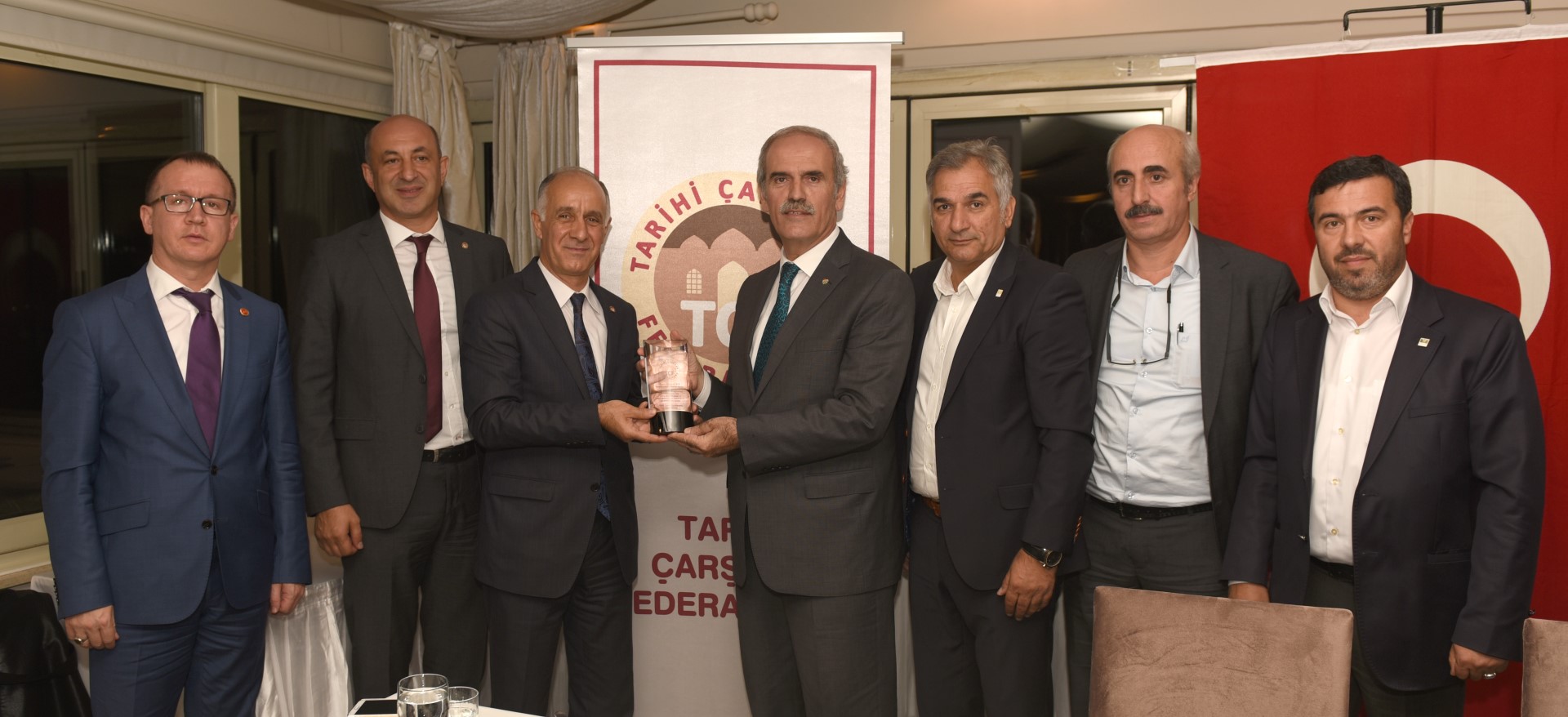 Tarihi Çarşılar Federasyonu Başkanı Özyıldırım, toplantının sonunda yer tahsisi nedeniyle Başkan Altepe’ye teşekkür plaketi verdi.