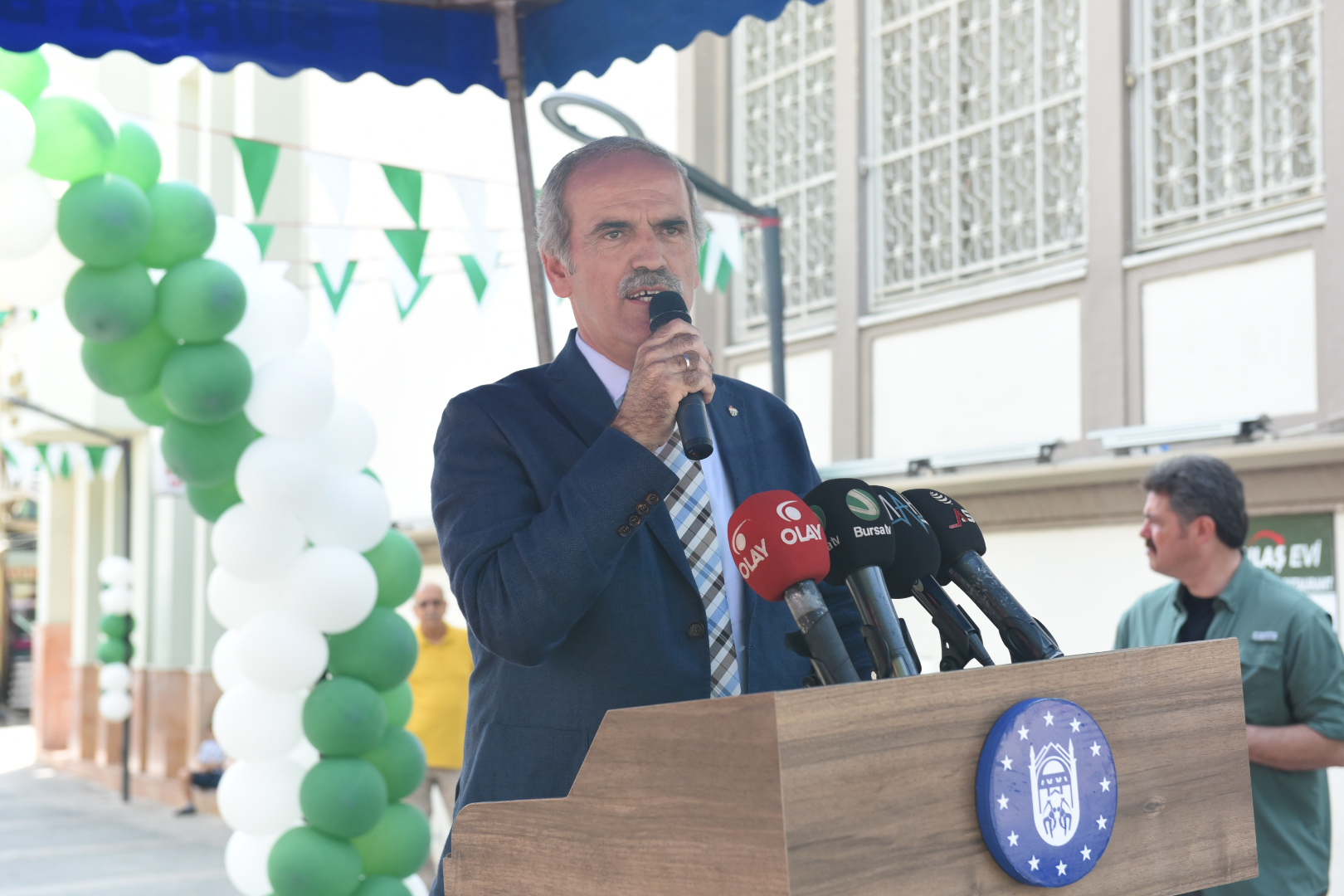 BTÇHB Başkanı Muhsin Özyıldırım da açılış konuşmalarında söz aldı. Yıldırım, Bursa Tarihi Çarşı ve Hanlar Bölgesi’ne sağladığı hizmetler ve Bursa’nın tarihi çarşılar konusunda başı çekmesinde oynadığı rol nedeniyle Başkan Altepe’ye teşekkür etti.