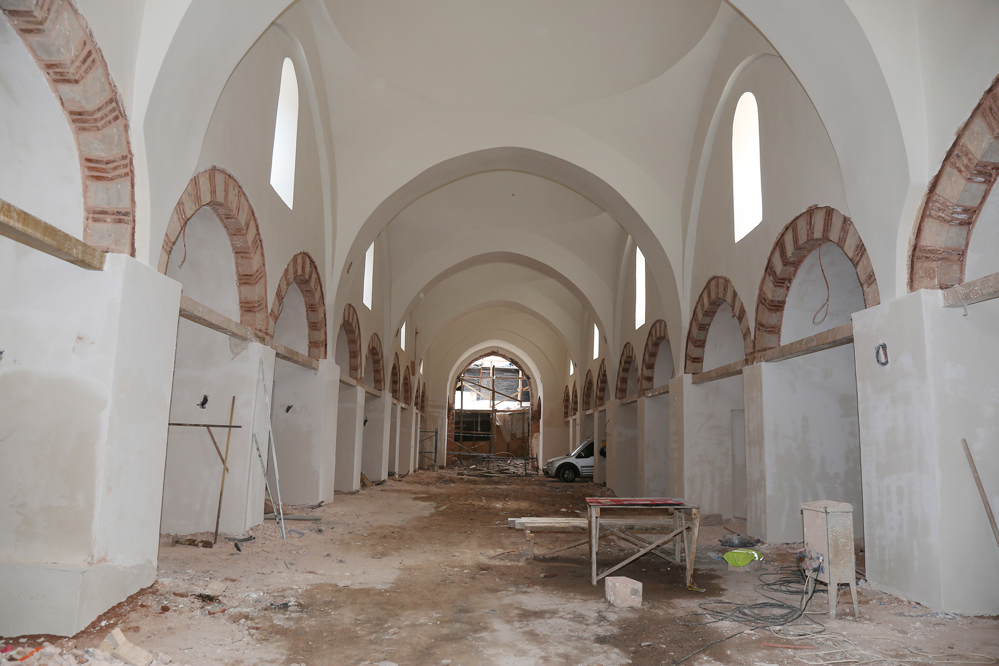 - ÖZELLİKLE SİPAHİ ÇARŞISI’NDAKİ RESTORASYON ÇALIŞMALARI TAMAMLANMA AŞAMASINA GELİRKEN, KUBBELER VE CEPHE DUVARLARI İLK GÜNKÜ ÖZGÜN HALİNE KAVUŞURKEN, ZEMİN KAPLAMA ÇALIŞMALARININ ARDINDAN ÇALIŞMALARIN KURBAN BAYRAMI’NDAN ÖNCE BİTİRİLMESİ AMAÇLANIYOR.