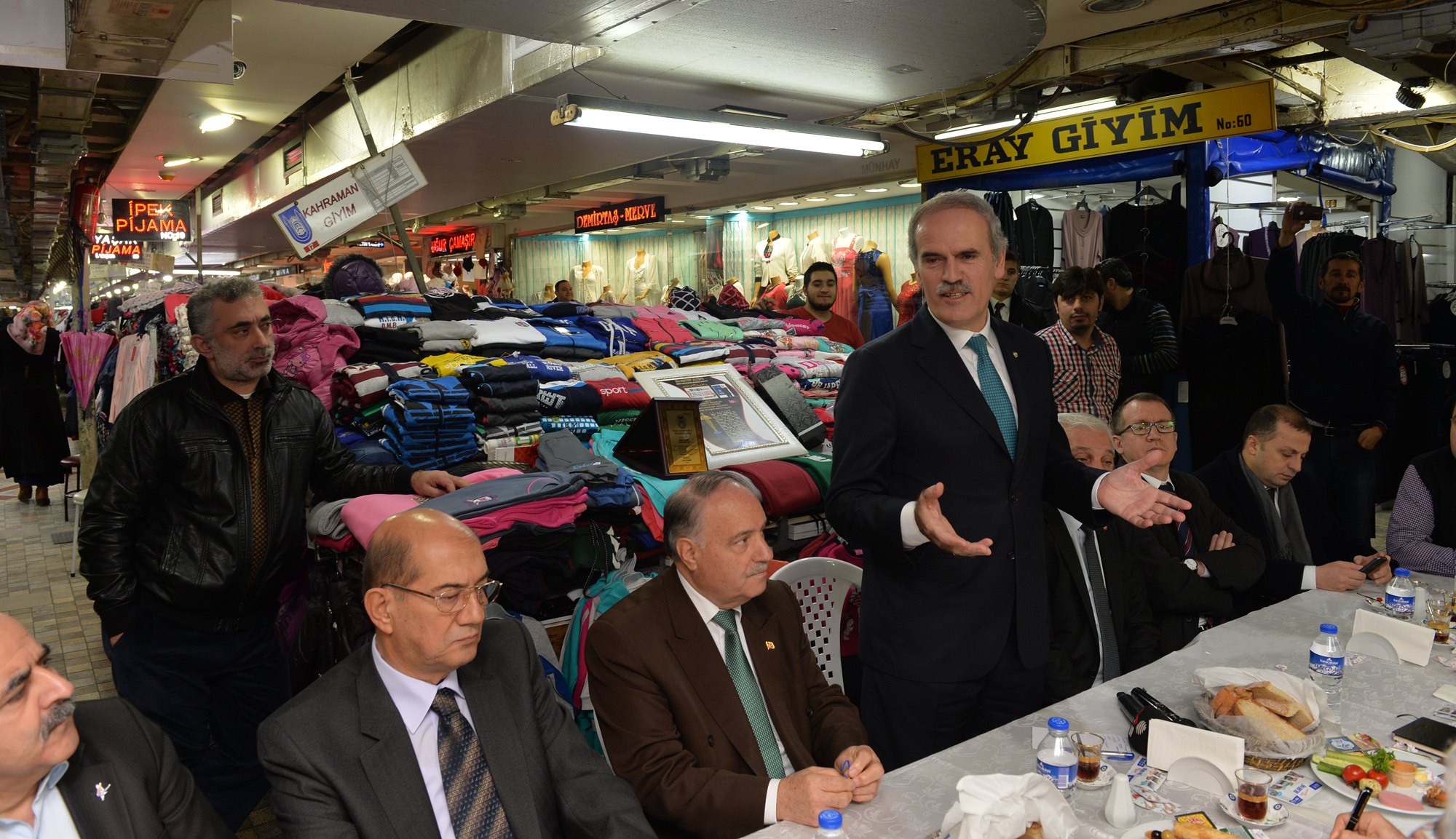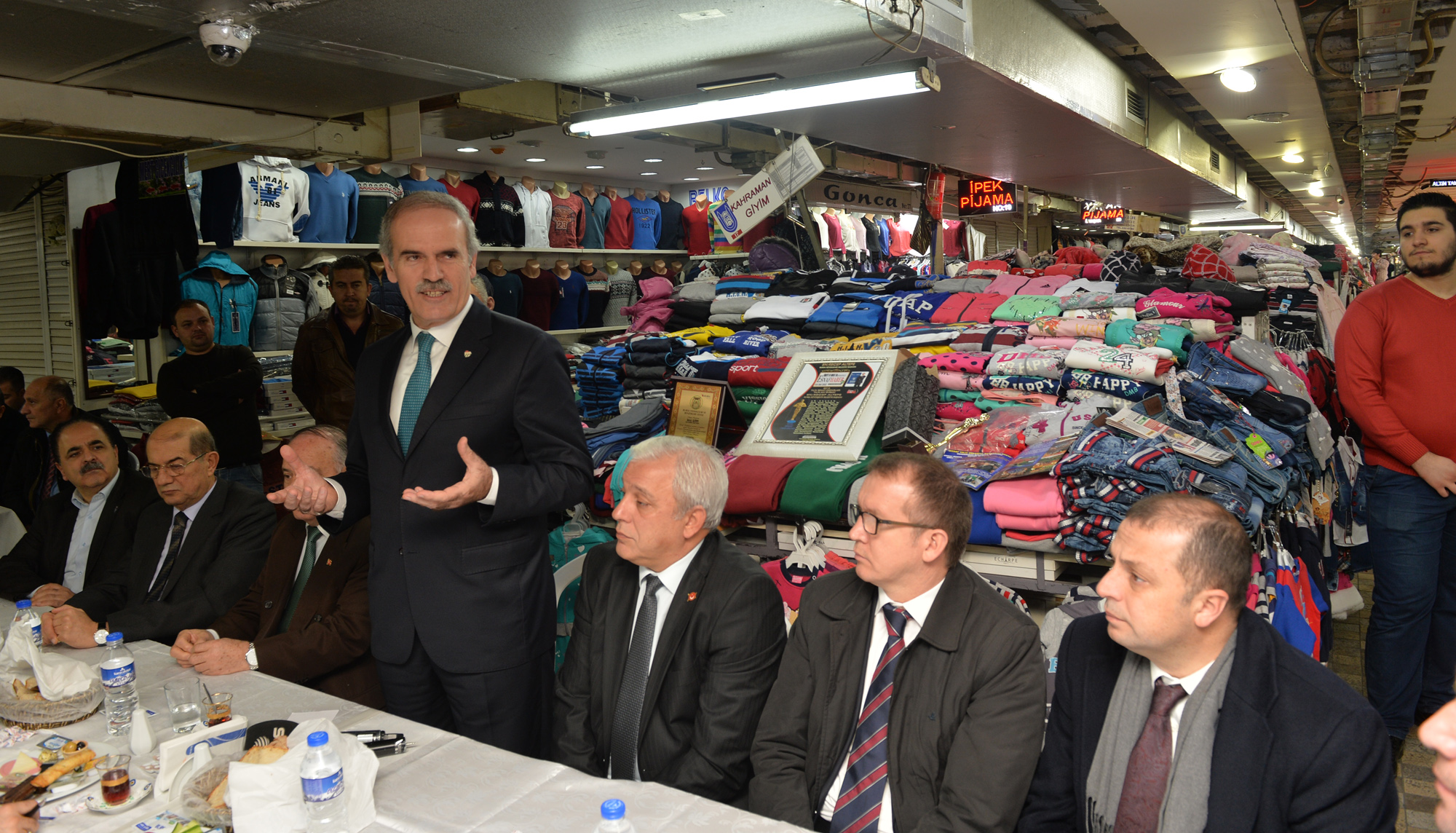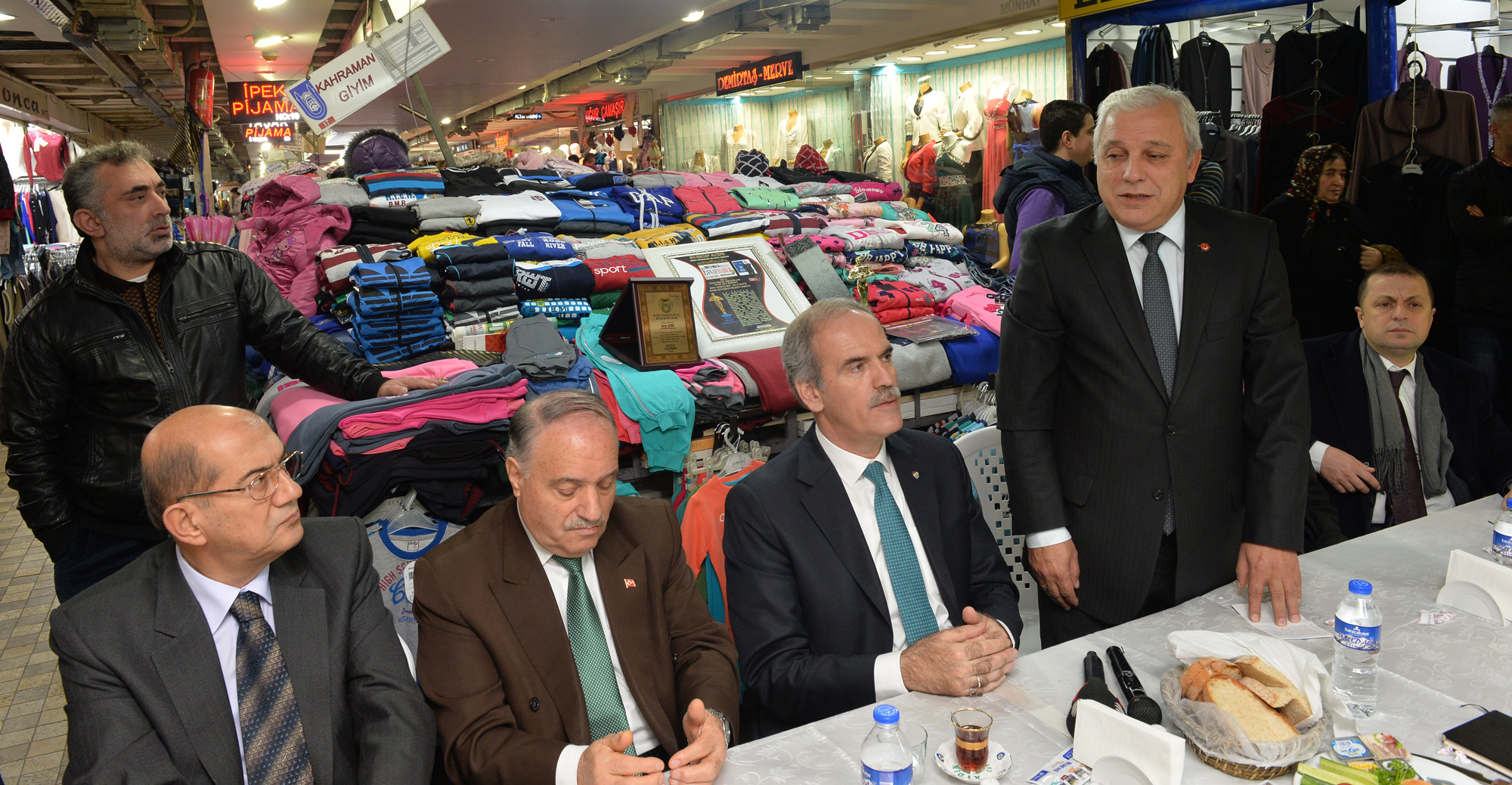 Tarihi Çarşı ve Hanlar Bölgesi’ndeki restorasyon ve yenileme çalışmaları ile bölgenin UNESCO Dünya Mirası Listesi’ne girmesini sağlayan Büyükşehir Belediyesi, aynı zamanda çarşıyı büyük alışveriş merkezleri ile rekabet edebilir hale getirme yönündeki çalışmaları da hız kesmeden sürdürüyor. Kapalı çarşıdaki restorasyon çalışmaları tamamlanma aşamasına gelirken, daha önce klima sistemleri ile rahat bir ortama dönüştürülen kapalı alt çarşı esnafı, Büyükşehir Belediye Başkanı Recep Altepe’yi ağırladı. Kapalı alt çarşıda düzenlenen toplantıya Başkan Altepe’nin yanı sıra Türkiye Esnaf ve Sanatkarlar Kredi ve Kefalet Kooperatifleri Birlikleri Merkez Birliği (TESKOMB) Genel Başkanvekili Bahri Şarlı, Bursa Esnaf ve Sanatkarlar Odaları Birliği (BESOB) Başkanı Arif Tak ile çarşı esnafı katıldı. Ev sahibi olarak toplantının açılışında konuşan Bursa Yaymacılar ve Benzerleri Odası Başkanı Fahrettin Tüccaroğlu, yaz aylarında vatandaşların bir an önce çıkmak için uğraştığı alt çarşının Büyükşehir Belediyesi tarafından yapılan klima sistemi sayesinde ferah ve daha konforlu hale geldiğini belirterek, destekleri nedeniyle Başkan Altepe’ye teşekkür etti.