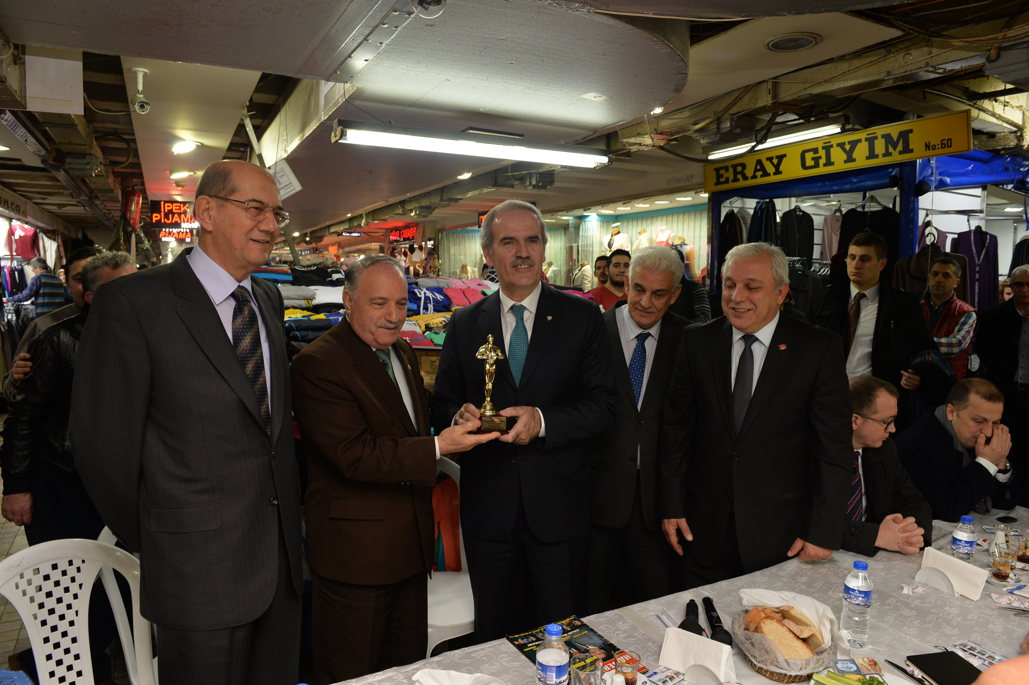 Büyükşehir Belediye Başkanı Recep Altepe de çocukluğunun çarşıda geçtiğini, yıllardan konuşulan tüm sorunları bildiğini söyledi. Çarşının üstünün kapatılması, bölgenin cazibe merkezi haline getirilmesi gibi konuların çarşı esnafının her zaman gündeminde olduğunu dile getiren Başkan Altepe, “Ancak bu sorunlar kenti yönetenlerin gündemine hiç gelmedi. Osmangazi Belediye Başkanı seçildiğimizde bu sorunlara el atmak da bize nasip oldu. Hem Osmangazi’de hem Büyükşehir’de önemli çalışmaları hayata geçirdik. Çatı kaplama, cephe düzenleme, bölgedeki tarihi eserlerin restorasyonu gibi çalışmaların ardından şimdi de Kapalı Çarşı’nın restorasyonunu tamamlama aşamasına getirdik. Vatandaşların büyük alışveriş merkezlerinde bulduğu hangi hizmet varsa onları çarşımıza kazandırmak istiyoruz. Çünkü çarşı şehrin aynası. Çarşı ne kadar hareketli olursa, Bursa o kadar hareketli olur. Ancak alışveriş merkezleriyle rekabet için sadece fiziki düzenlemeler yetmez. Bunun için çalışma sisteminden, açılış kapanış saatlerine kadar bir dizi düzenleme daha yapılmalı. Eğer siz dükkanları erkenden kapatırsanız, vatandaş da aradığını bulmak için alışveriş merkezlerine gider. Bunlarla ilgili çalışmalarımız da devam ediyor” dedi.