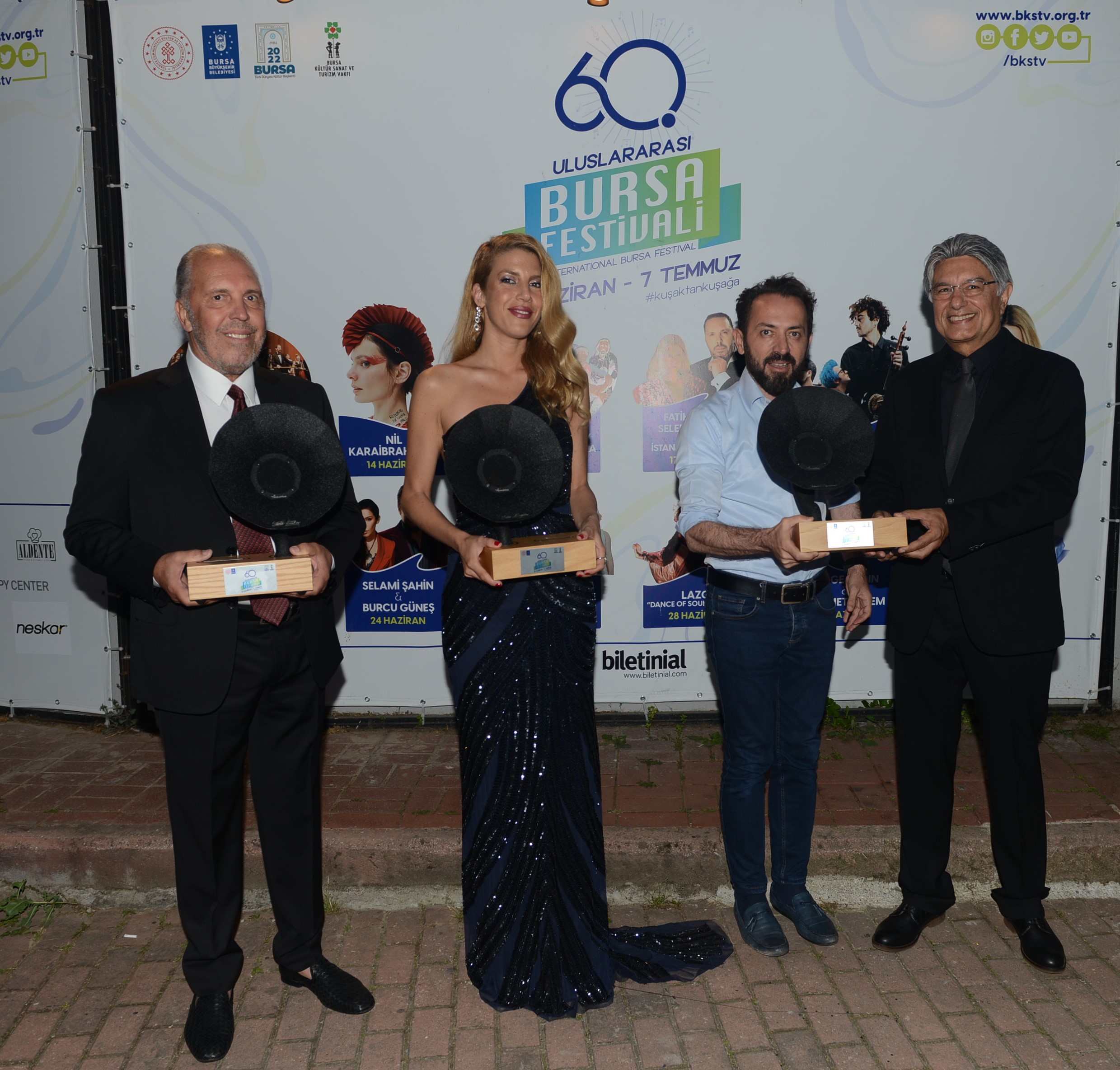 Konser öncesi Bursa Kültür Sanat ve Turizm Vakfı Genel Sekreteri Fehim Ferik ile Ipoint Acoustic Genel Müdürü Hakan Ağalar, ünlü sanatçı Fatih Erkoç ve Selen Beytekin ile İstanbul Süperband’ın şefi Aycan Teztel’e festival özel plaketi sundu.