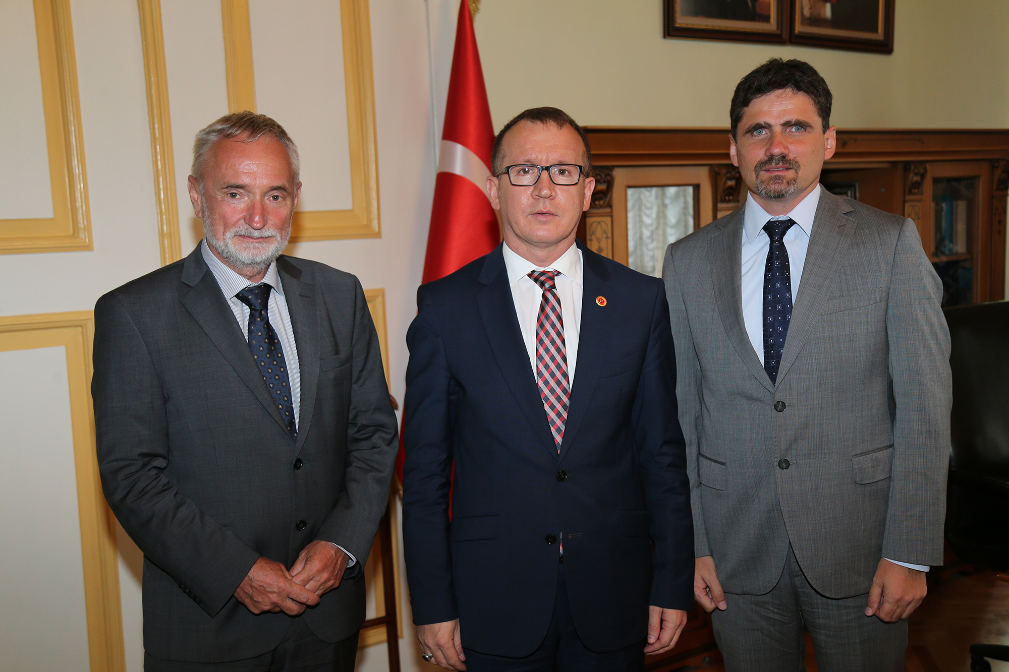 Türkiye ile Çek Cumhuriyeti arasındaki diyaloğu geliştirmek üzere Bursa’da çeşitli temaslarda bulunan Çek Cumhuriyeti İstanbul Başkonsolosu Petr Mares ve Çek Cumhuriyeti Başkonsolosluğu Ekonomi Bölüm Şefi Konsolos Pavel Buchta, Büyükşehir Belediyesi Başkanvekili Abdülkadir Karlık ile bir araya geldi.