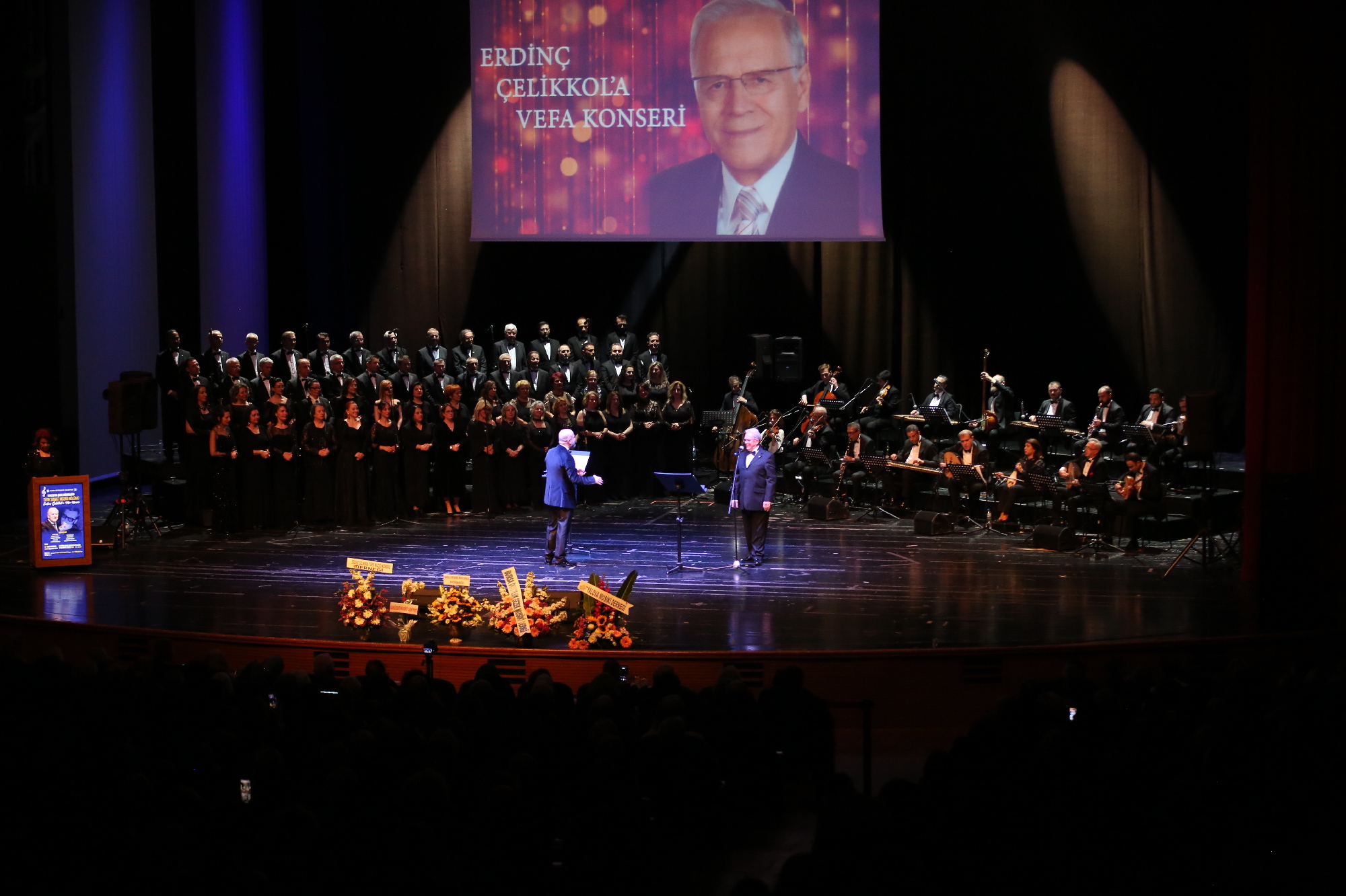 Atatürk Kongre Kültür Merkezi Osmangazi Salonu’nda yapılan konserin ilk bölümünü Şef Salih Berkmen yönetti. Erdinç Çelikkol’un 1983 yılında kurduğu Orkestra Şube Müdürlüğü Türk Sanat Müziği Bölümü sanatçılarının oluşturduğu icra heyeti ile Çelikkol’un yıllarca şefliğini yaptığı; İnegöl Belediyesi Türk Müziği Korosu, Yalova Musiki Derneği, Bursa Musiki Cemiyeti, Erdinç Çelikkol Türk Müziği Derneği, Orhangazi Halk Eğitim Merkezi, Gemlik Belediyesi Sanat ve Kültür Derneği ve Kocaeli Büyükşehir Musiki derneklerinin katılımı ile Erdinç Çelikkol eserlerinden oluşan repertuvar seslendirildi.
