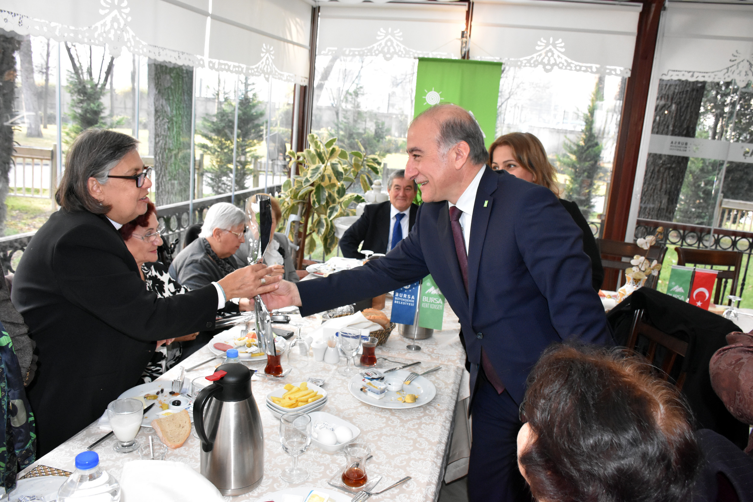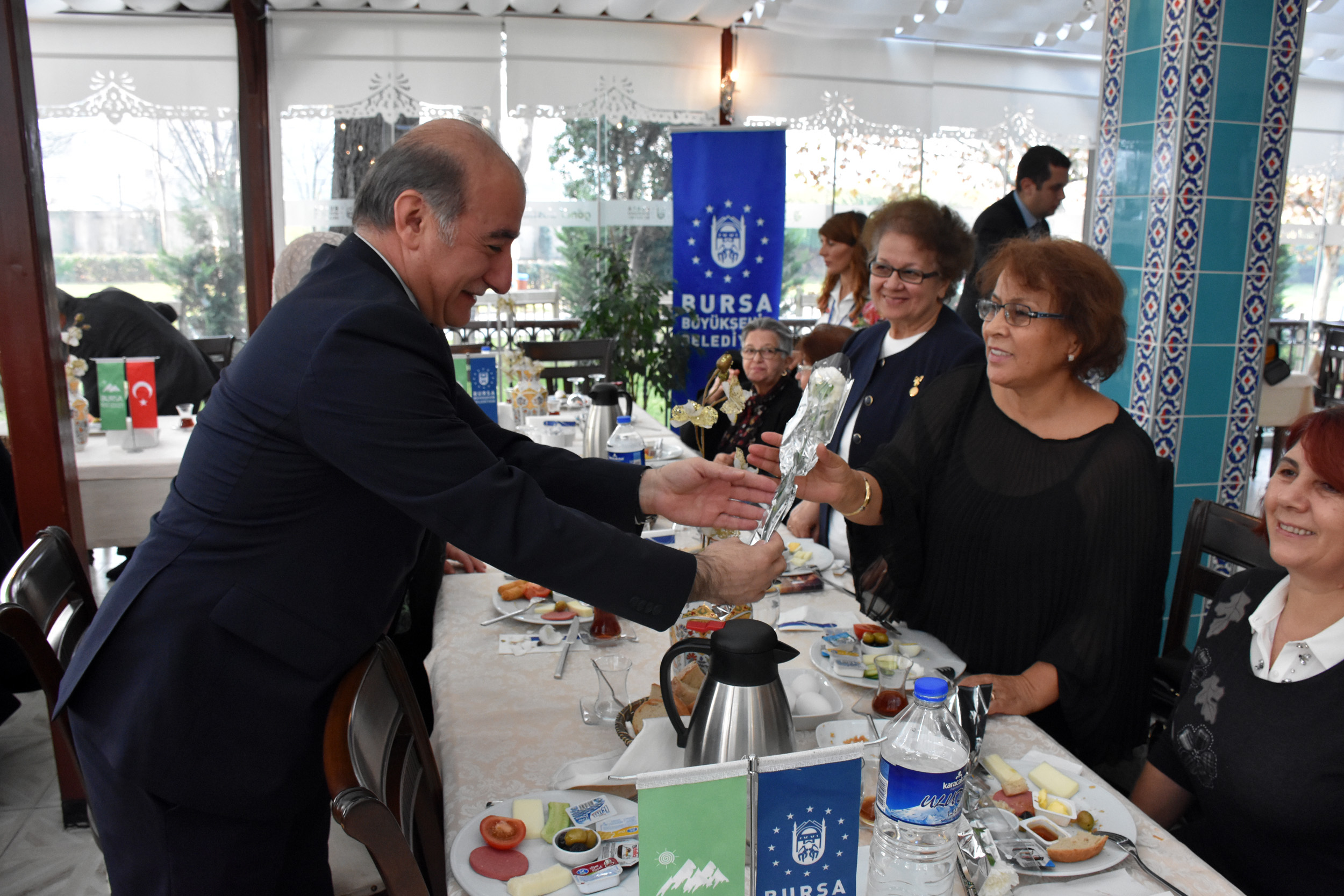24 Kasım Öğretmenler Günü sebebiyle Gönül Dostları Sofrası’nda düzenlenen buluşmaya, Bursa Kent Konseyi Başkanı Hasan Çepni, Kadın Meclisi Başkanı Kadriye Sarıbıyık, Yerel Gündem Şube Müdürü Mahmut Turunç, Bursa Kent Konseyi Genel Sekreteri Murat Başlar, Bursa Kent Konseyi Yürütme Kurulu Üyesi ve emekli öğretmen Mehmet Necati Şahin ile öğretmenler katıldı.