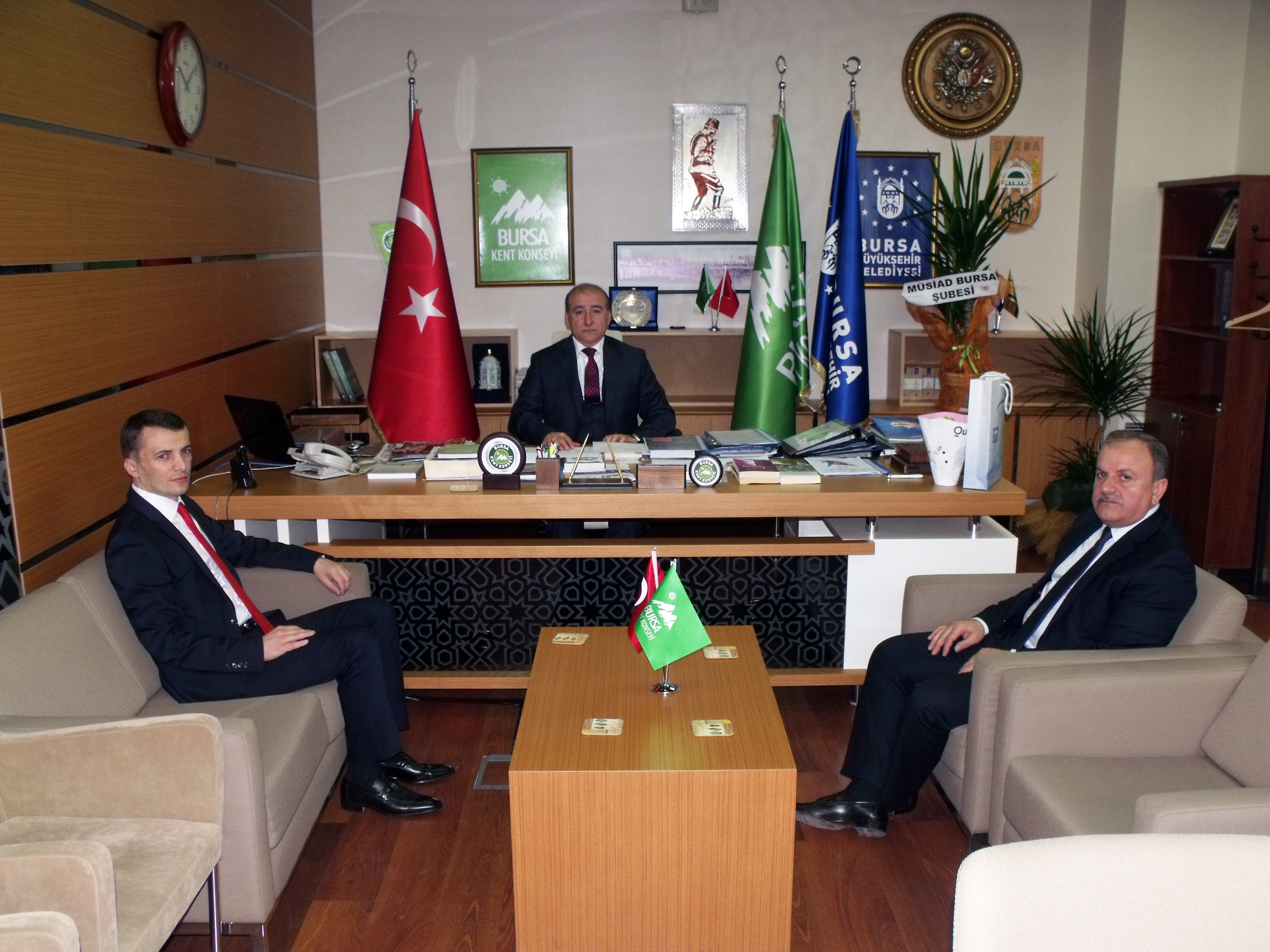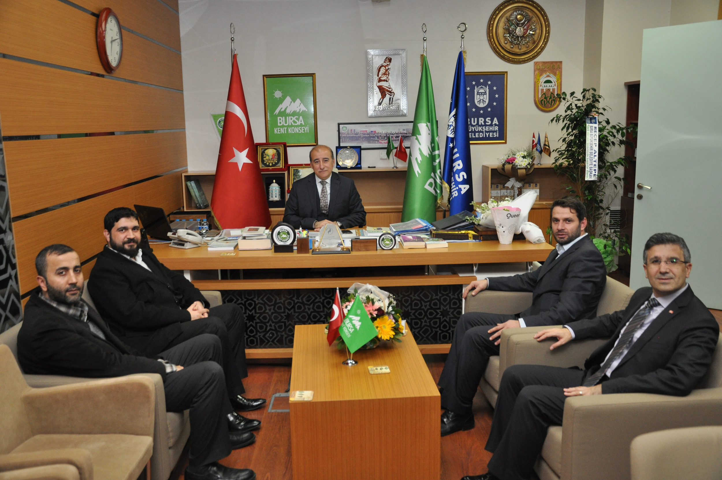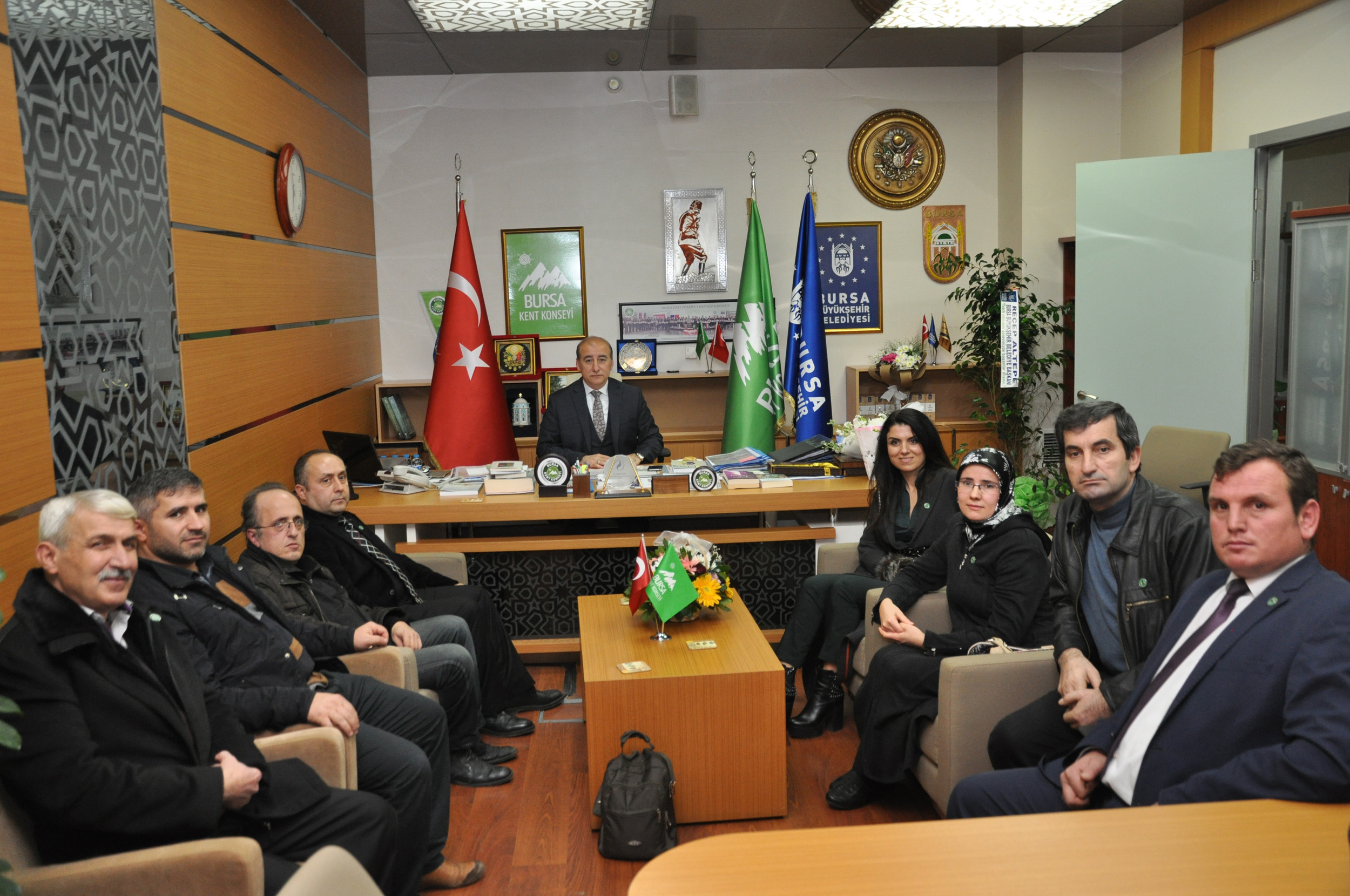 Bursa Kadın Kuruluşları Birliği Dönem Koordinatörü Avukat Sibel Özbudak ve birlik üyeleri, Sosyal Güvenlik Kurumu İl Müdürü Erhan Karaca, Bursa Kültür Sanat ve Yardım Derneği Başkanı Osman Uzun ve üyeler ile Güldeste Yardımlaşma ve Dayanışma Derneği üyeleri Bursa Kent Konseyi Başkanı Hasan Çepni’yi ziyaret ederek başarılar diledi.