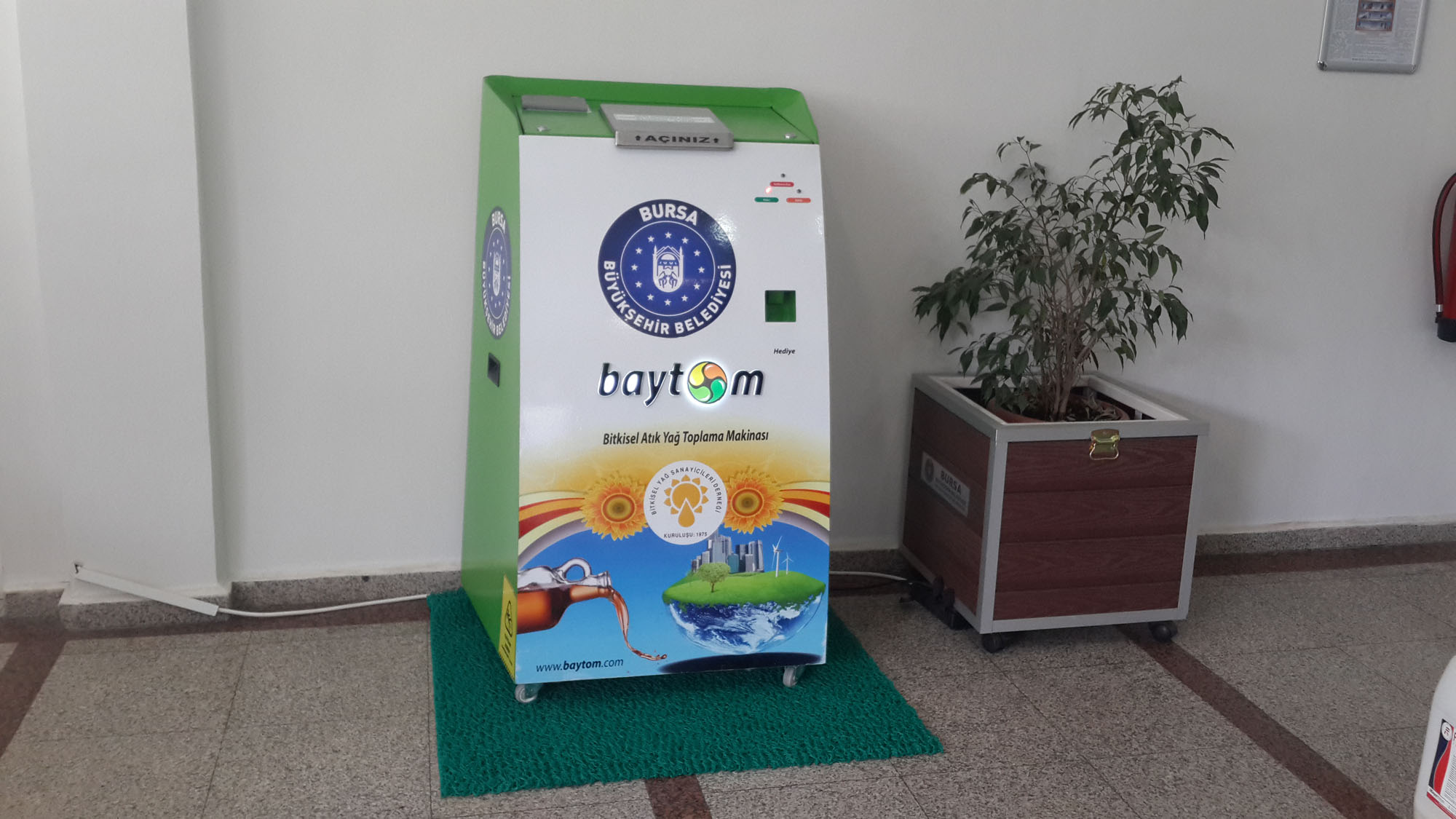 Bursa’yı daha sağlıklı ve yaşanabilir bir kent haline getirmek amacıyla kente yeni yeşil alanlar kazandıran Büyükşehir Belediyesi, diğer taraftan da hava, su ve toprağı kirlilikten arındırmak için hayata geçirdiği projelere bir yenisini daha ekledi. Bir litre bitkisel atık yağın 1 milyon litre içme suyunu kirlettiği gerçeğinden hareket eden Büyükşehir Belediyesi Çevre Koruma ve Kontrol Dairesi Başkanlığı, evlerde kullanıldıktan sonra lavabolara dökülerek, yer altı su kaynaklarında kirliliğe yol açan bitkisel atık yağları toplamak için harekete geçti. İlk etapta alınan 40 adet atık bitkisel yağ toplama makinesi BUSMEK Kurs Merkezleri, muhtarlıklar, kültür ve sanat merkezleri, ilçe belediye hizmet binaları gibi halkın kolay ulaşabileceği noktalara yerleştirildi.