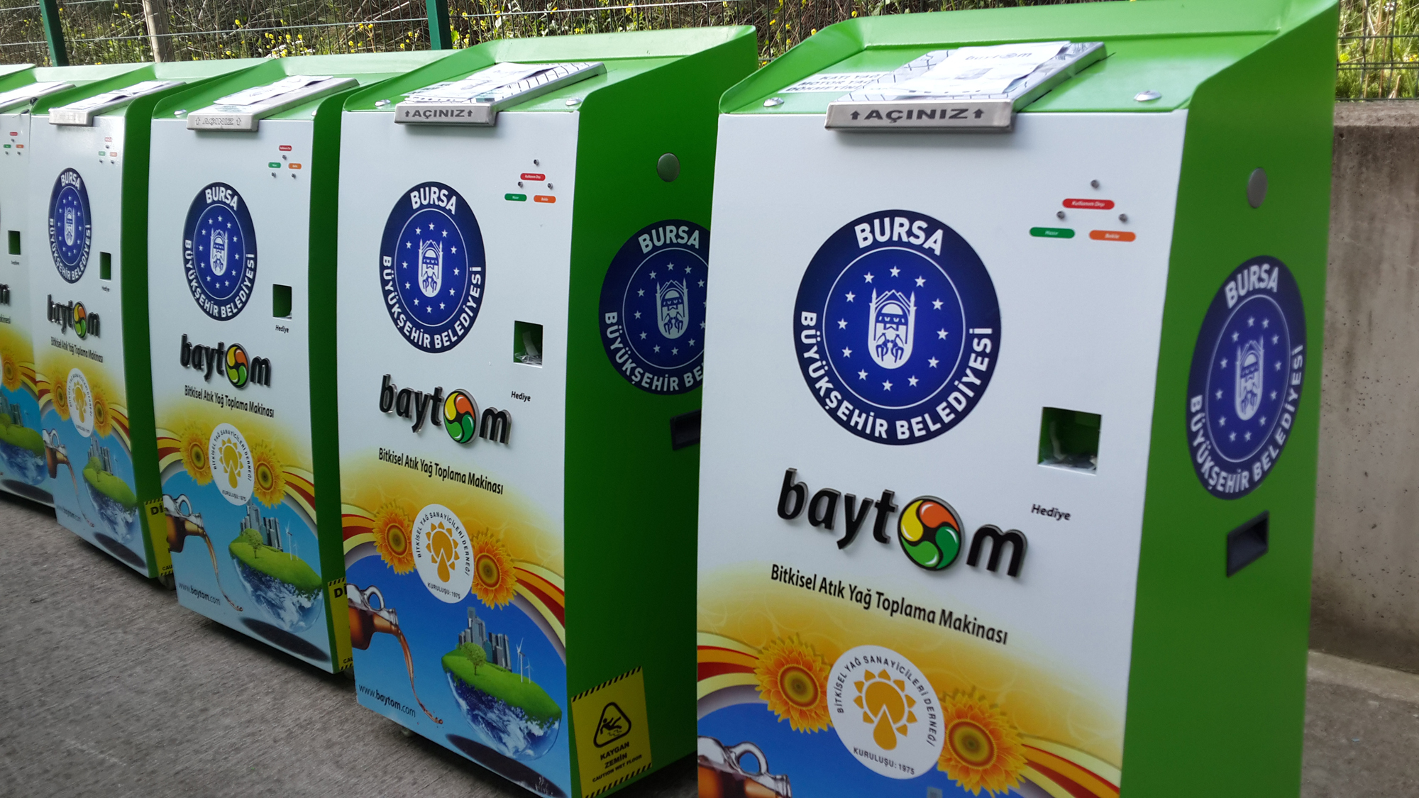 - İLK ETAPTA 40 FARKLI NOKTAYA KONULAN BİTKİSEL ATIK YAĞ TOPLAMA MAKİNELERİ İLE ATIK YAĞLARIN ÇEVREYE VERDİĞİ ZARARIN ÖNÜNE GEÇİLİRKEN, AYNI ZAMANDA YAĞLARIN BİYODİZELE DÖNÜŞÜMÜNE EKONOMİYE KATKI SAĞLANACAK.