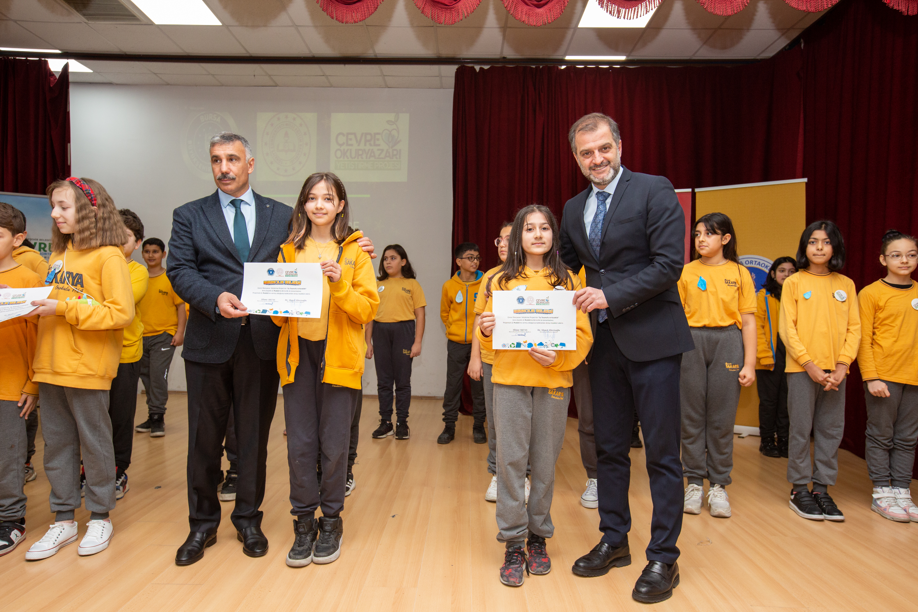 Sakarya Ortaokulu’nda düzenlenen programa, Bursa Büyükşehir Belediyesi Başkanvekili Arif Bayrak, İl Milli Eğitim Müdür Yardımcısı Yunus Bulut, İlçe Milli Eğitim Müdürü Metin Sezer, Büyükşehir Belediyesi Çevre Koruma ve Kontrol Dairesi Başkanı Yıldız Odaman Cindoruk, Sakarya Ortaokulu Müdürü Erhan Şimşek, okul öğrencileri, öğretmenler ve veliler katıldı. Bursa Büyükşehir Belediyesi ve İl Milli Eğitim Müdürlüğü ortaklığıyla yürütülen Çevre Okuryazarı Yetiştirme Projesi kapsamında “Su Tasarrufu ve Kuraklık” modülünde birinci olan Sakarya Ortaokulu’nda eğitim gören öğrenciler başarı belgeleri ve hediyelerine kavuştu.