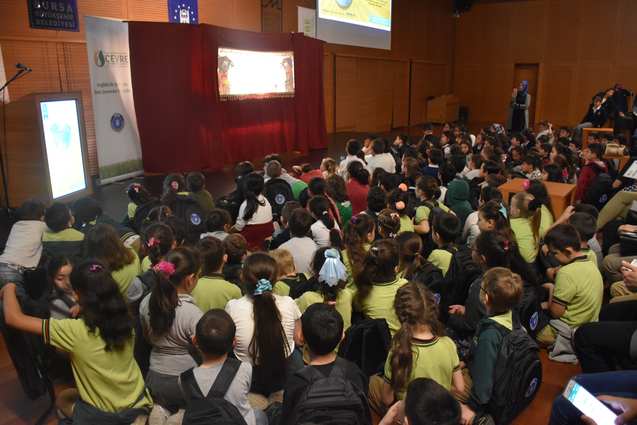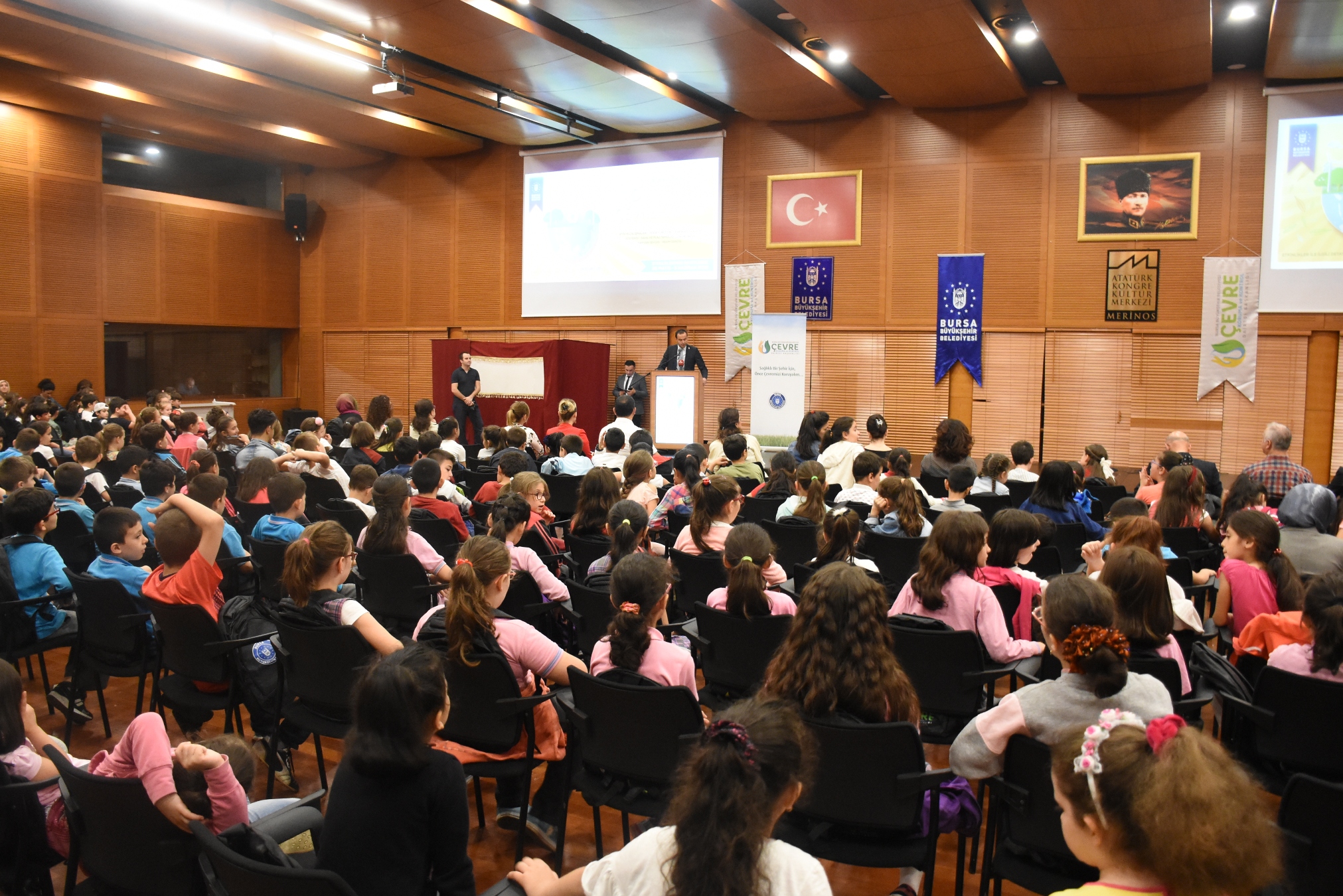 Dünya Çevre Günü ve Haftası nedeniyle Büyükşehir Belediyesi Çevre Koruma ve Kontrol Dairesi Başkanlığı ve ilgili daire başkanlıkları, belediye iştirakleri tarafından hazırlanan bir dizi program, Merinos Atatürk Kongre Kültür Merkezi'ndeki (Merinos AKKM) çevre temalı 'Hacivat ve Karagöz' gösterisiyle başladı. Temiz çevre bilincinin ve doğanın öneminin anlatıldığı oyunda çocuklar, hem eğlenceli dakikalar geçirdi hem de bilinçlendirildi.