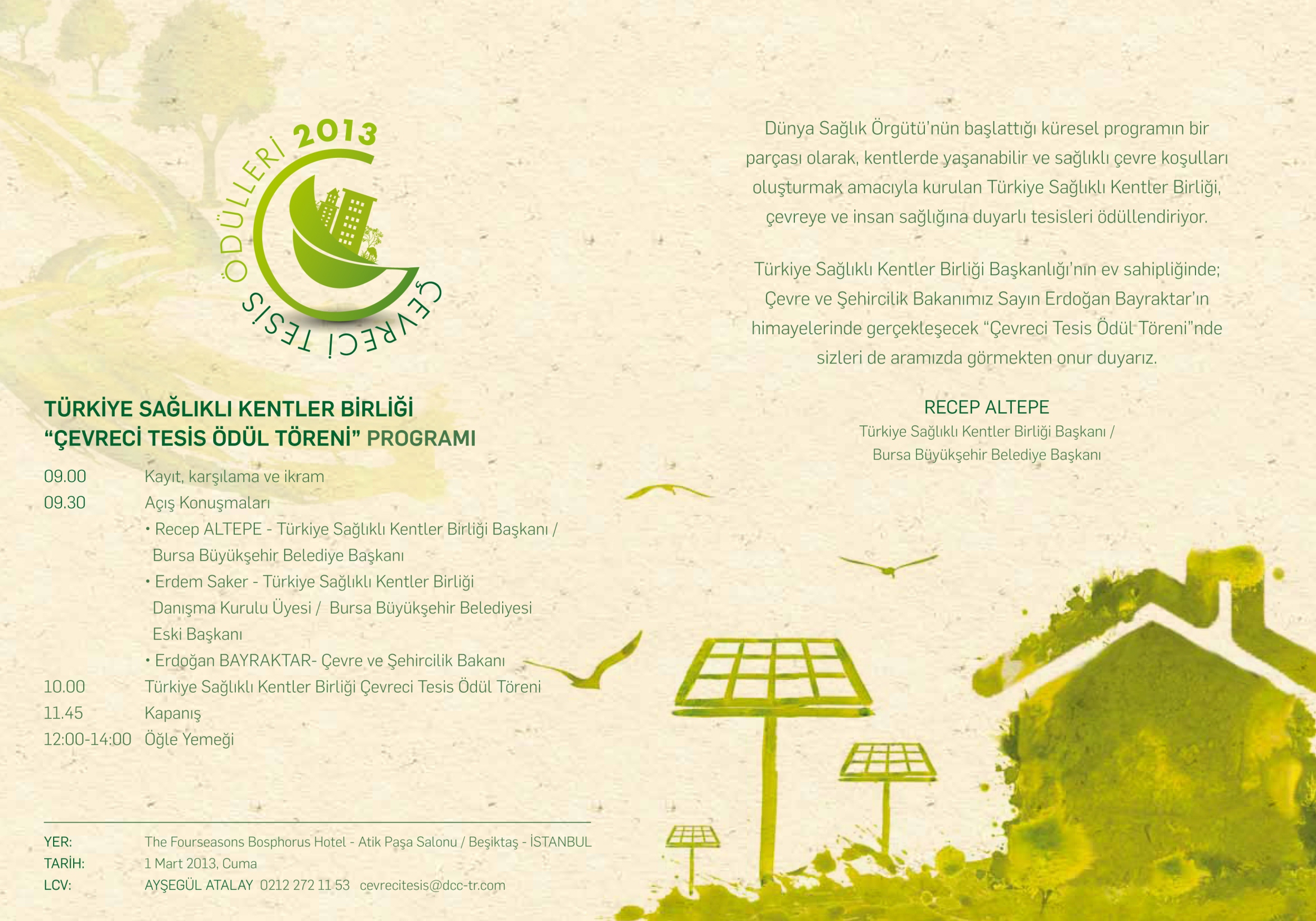 - SAĞLIKLI KENTLER BİRLİĞİ TARAFINDAN DÜZENLENEN ‘ÇEVRECİ TESİS ÖDÜLLERİ’, 1 MART CUMA GÜNÜ İSTANBUL’DA YAPILACAK TÖRENLE SAHİPLERİNİ BULACAK.